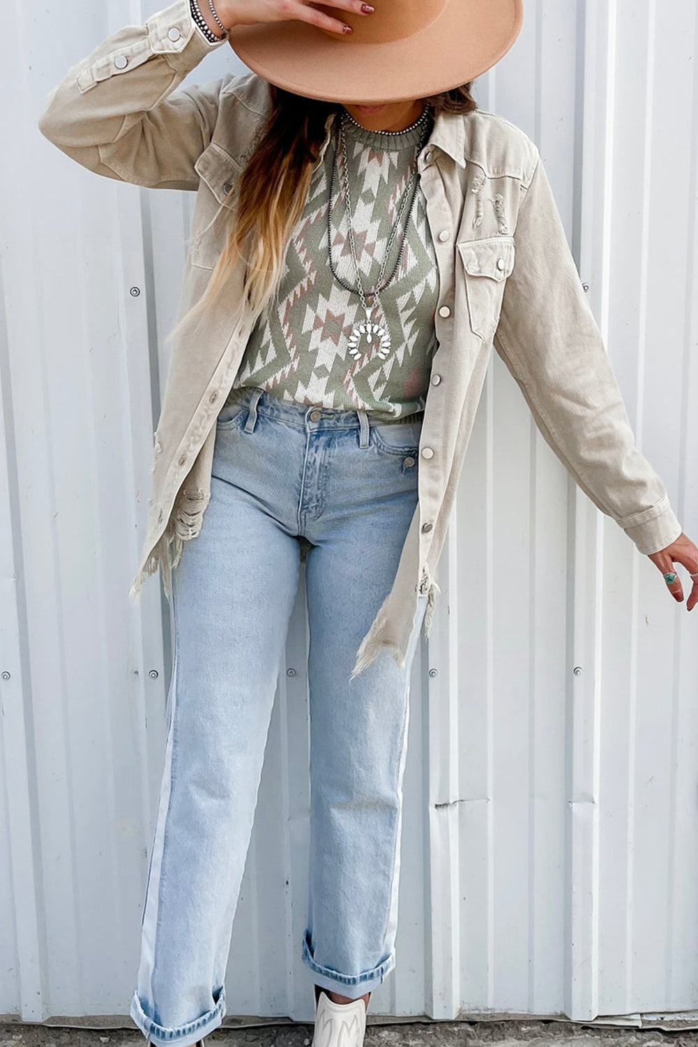 Laurel Green Western Tribal Aztec Pattern Knit Sweater Tank