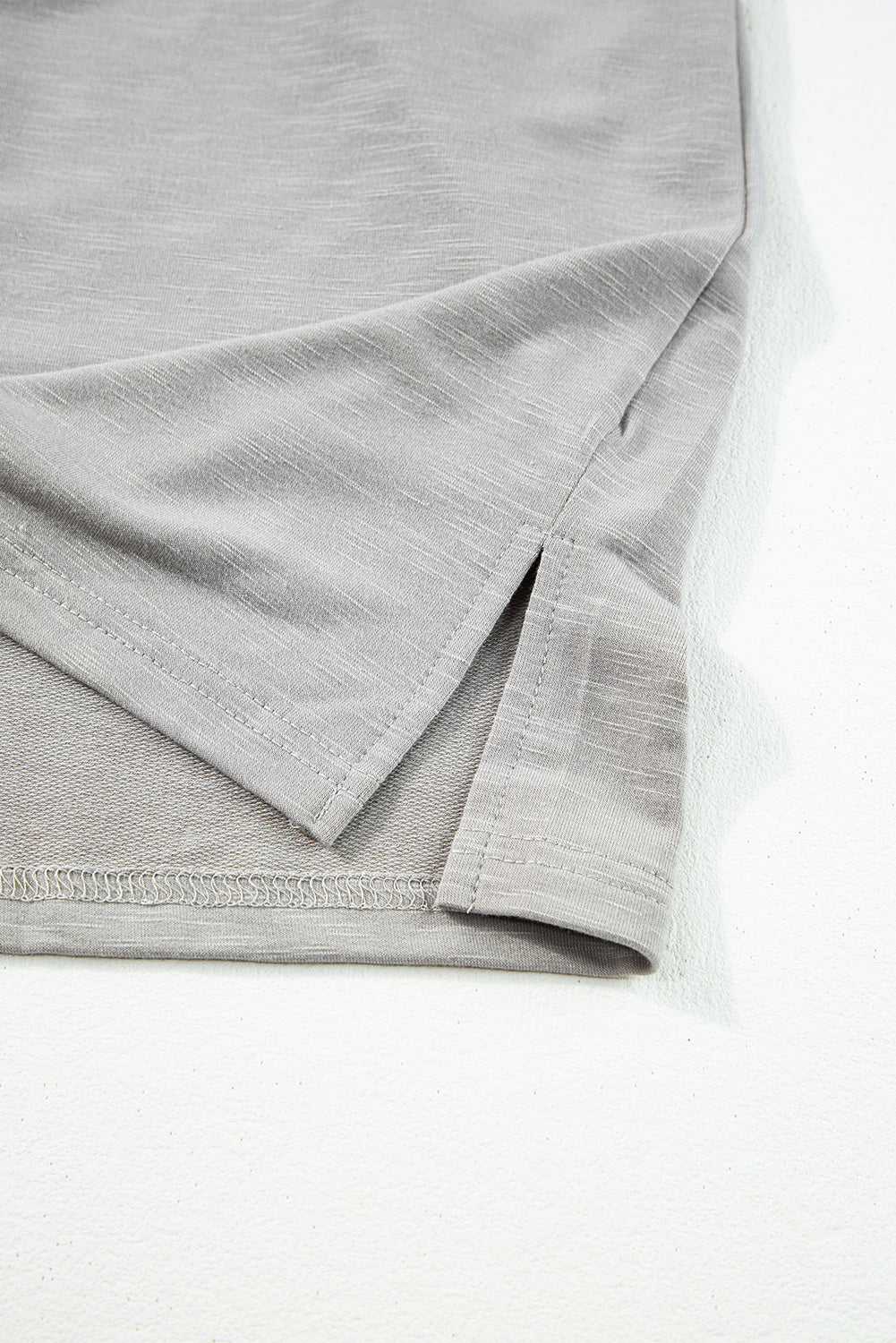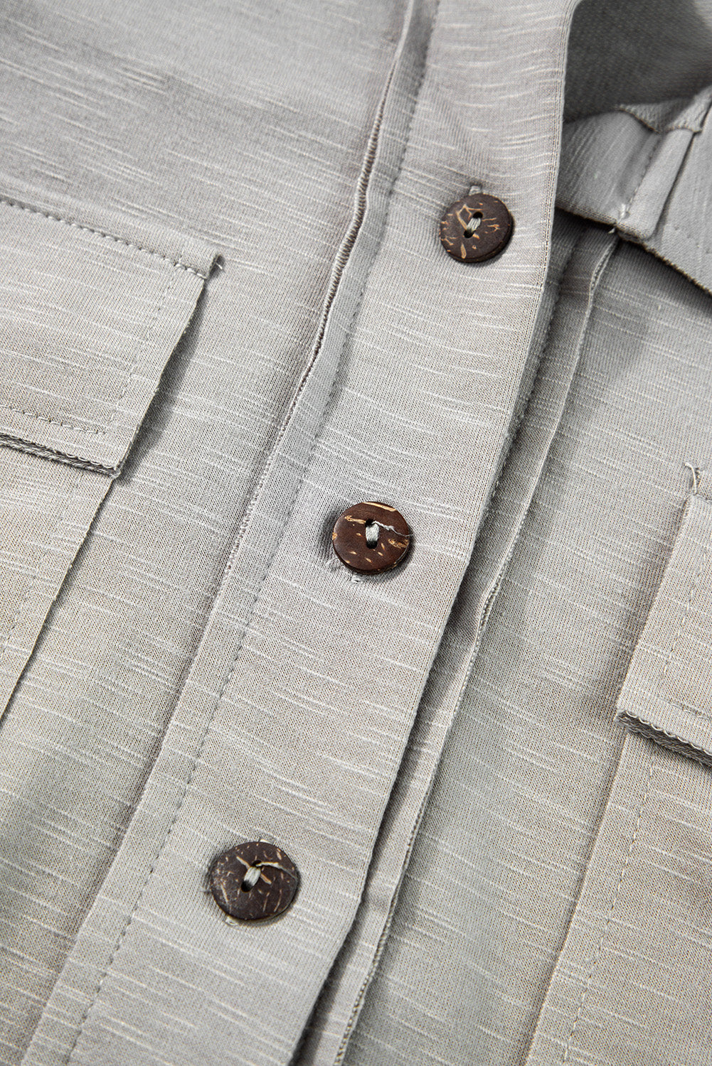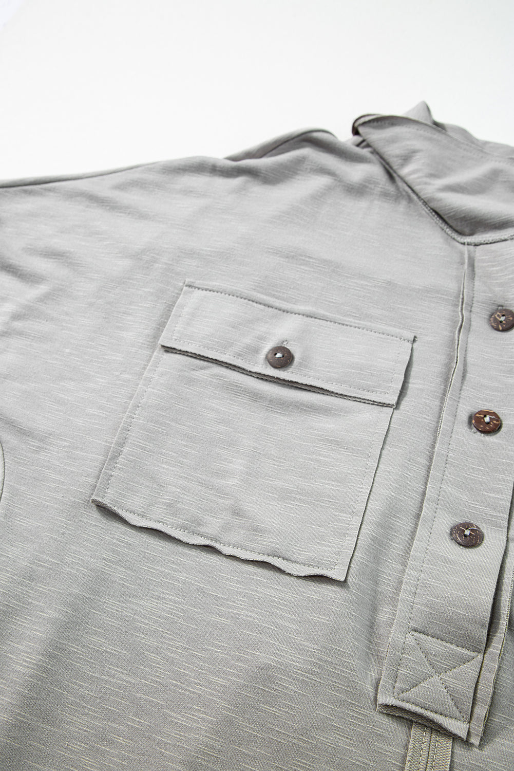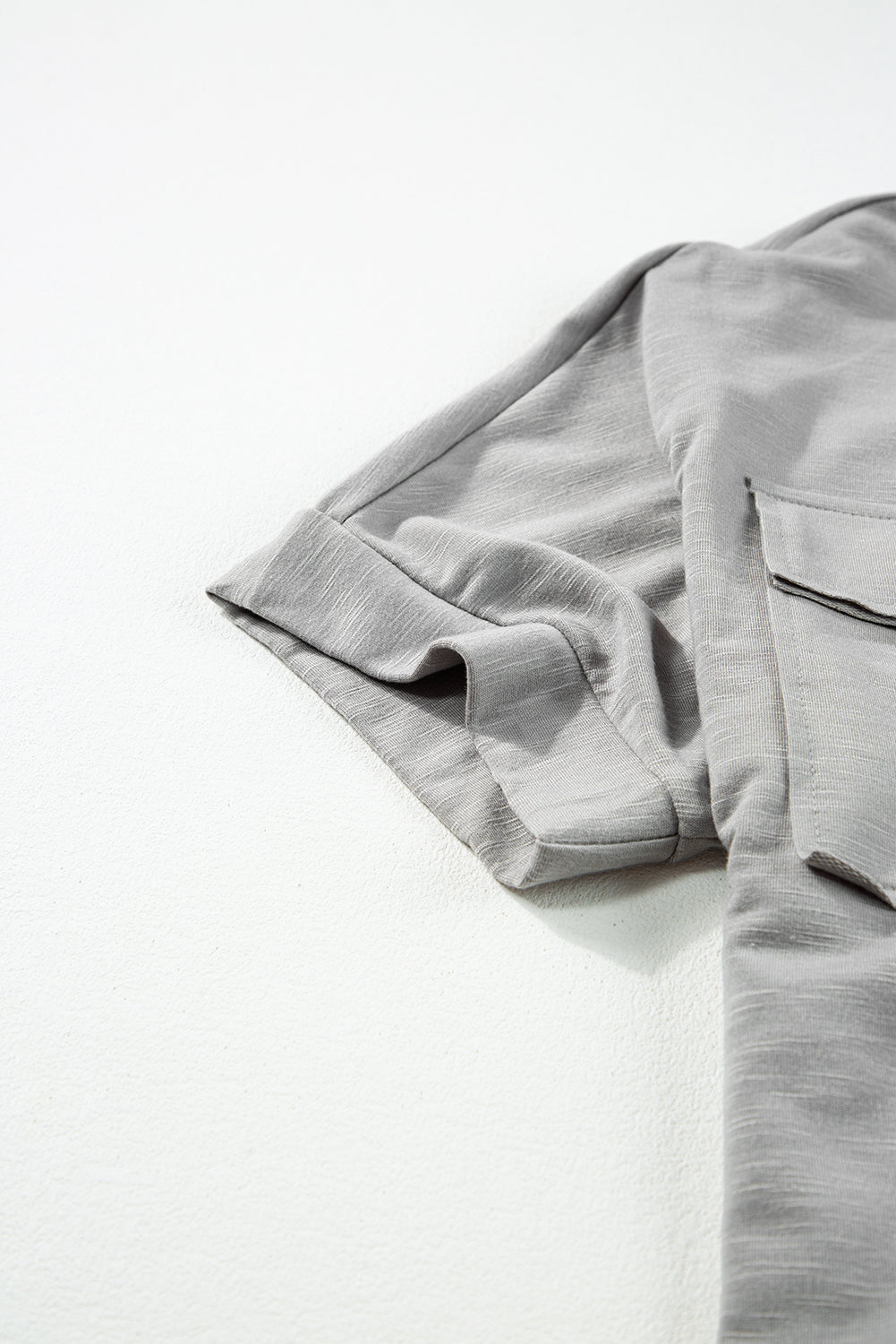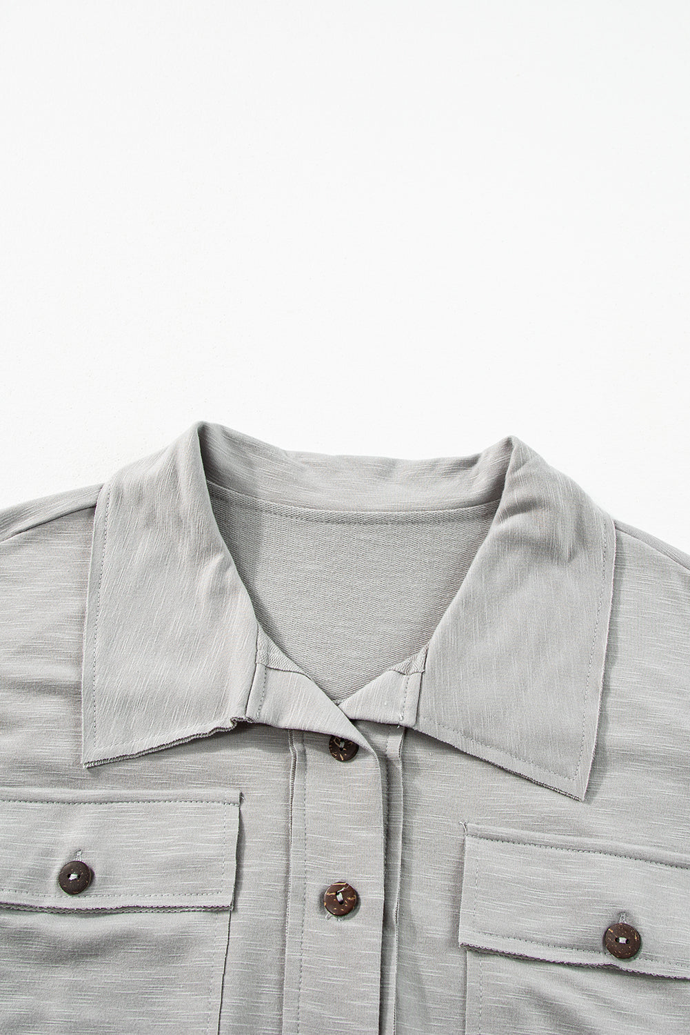 Light Grey Chest Pockets Half Buttoned Collared Blouse