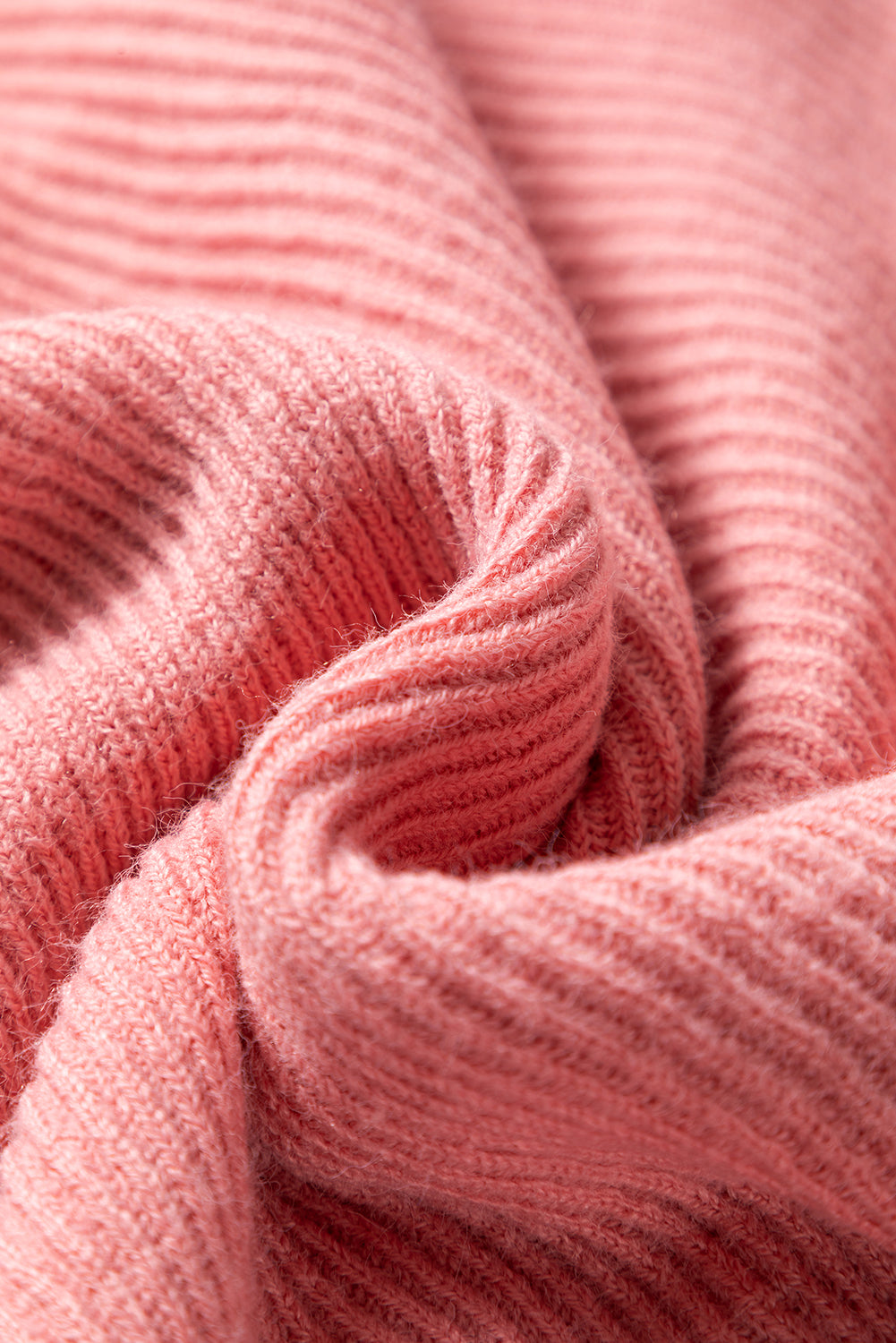 Light Pink Ribbed Knit Half Sleeve Plus Size Poncho Style Sweater