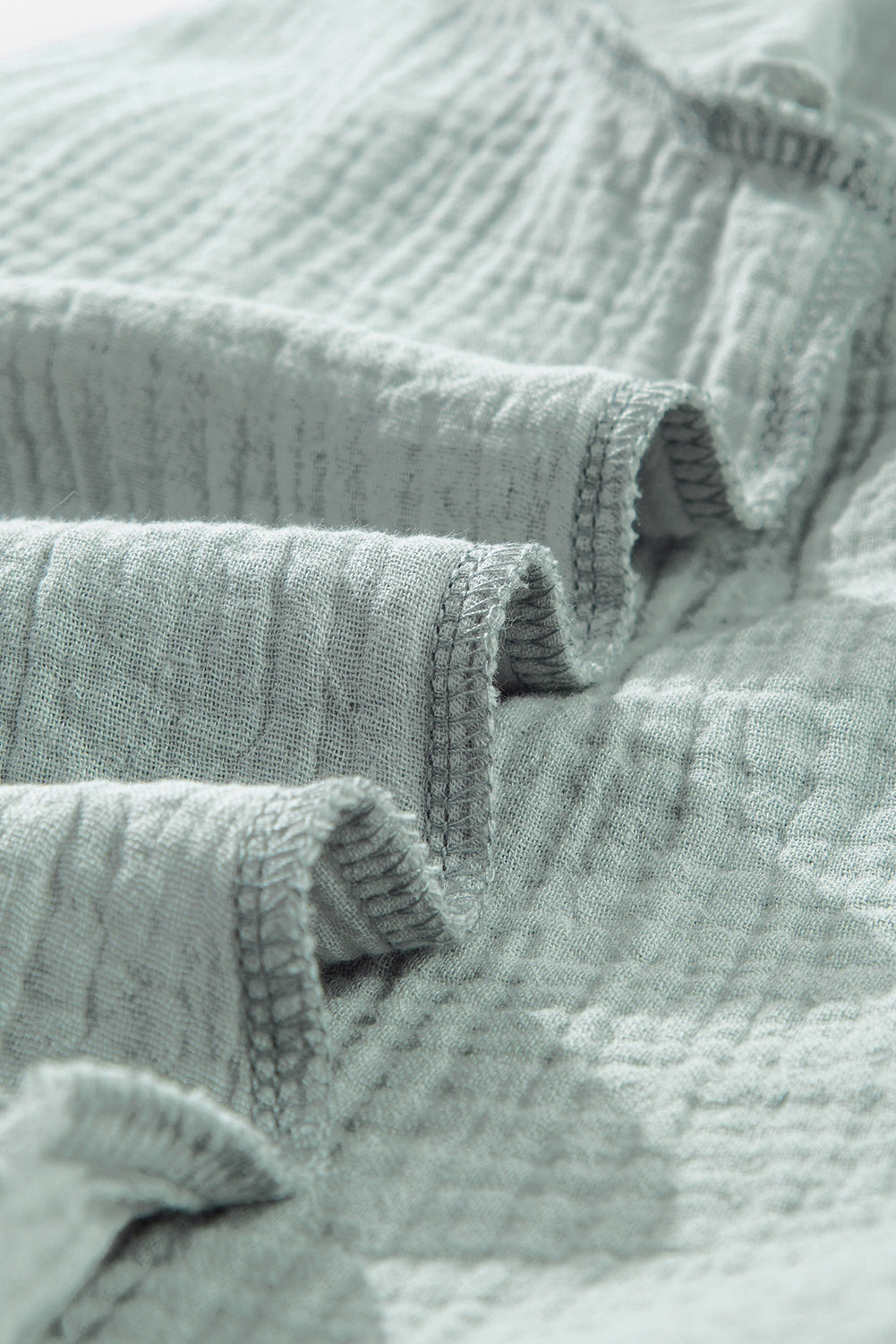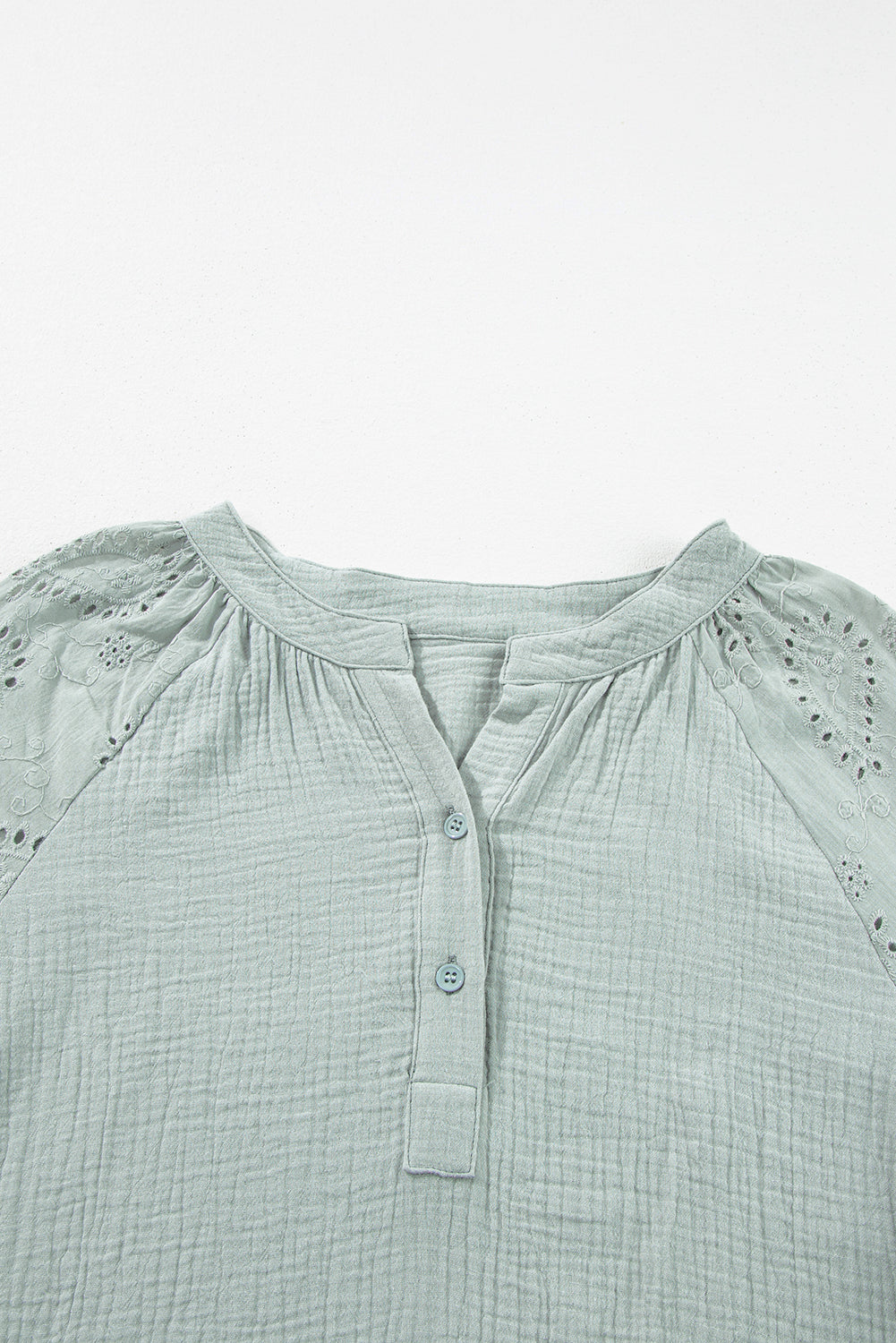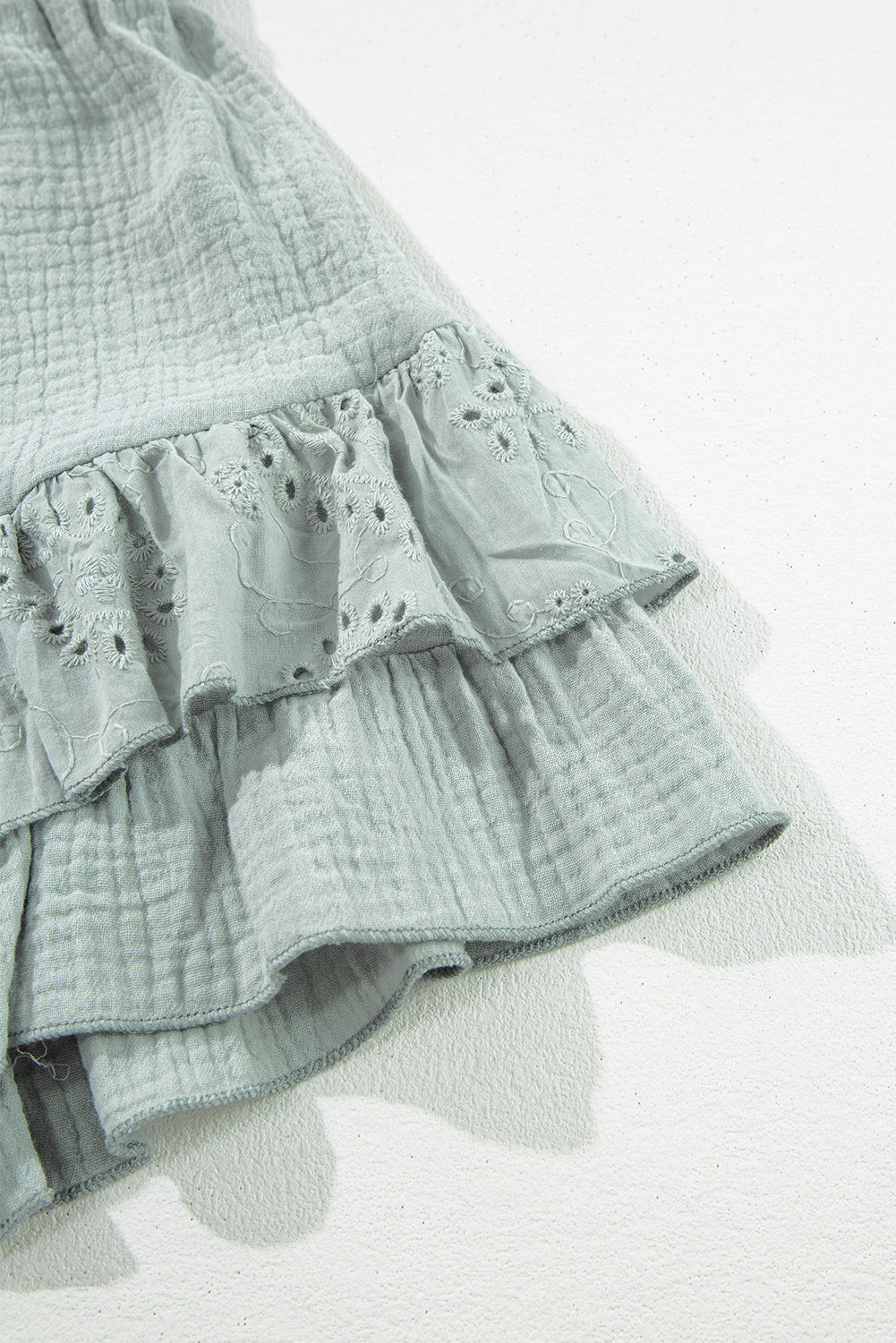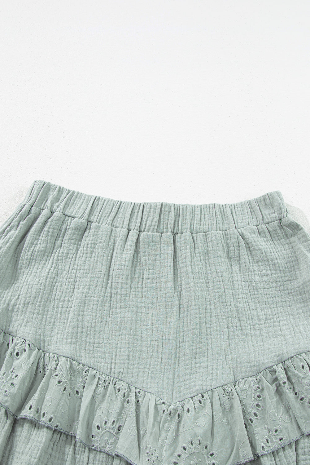 Mist Green Crinkled Eyelet Raglan Sleeve Top Ruffled Shorts Set