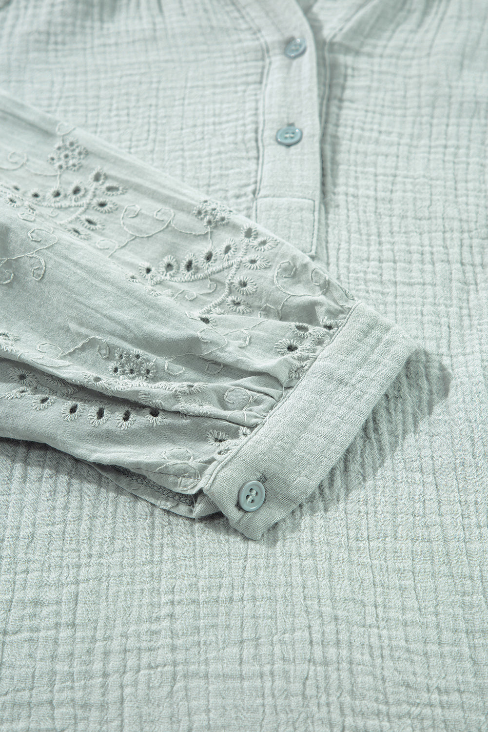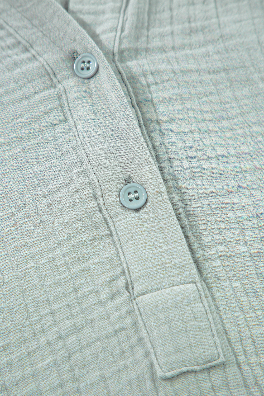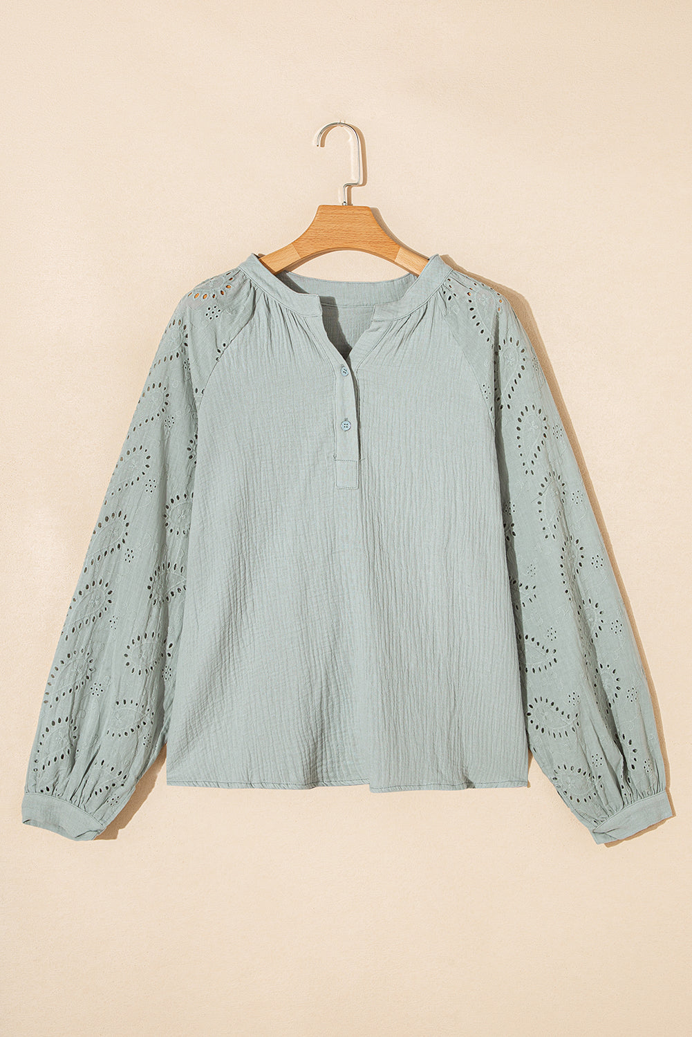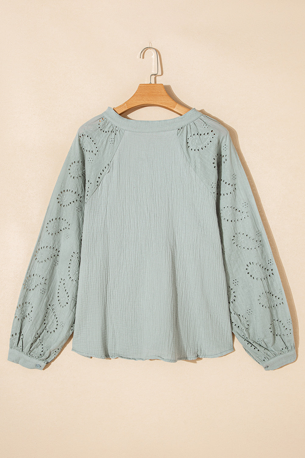 Mist Green Crinkled Eyelet Raglan Sleeve Top Ruffled Shorts Set