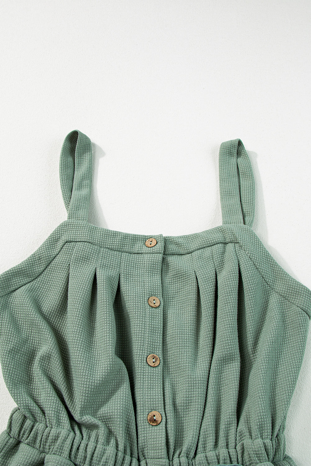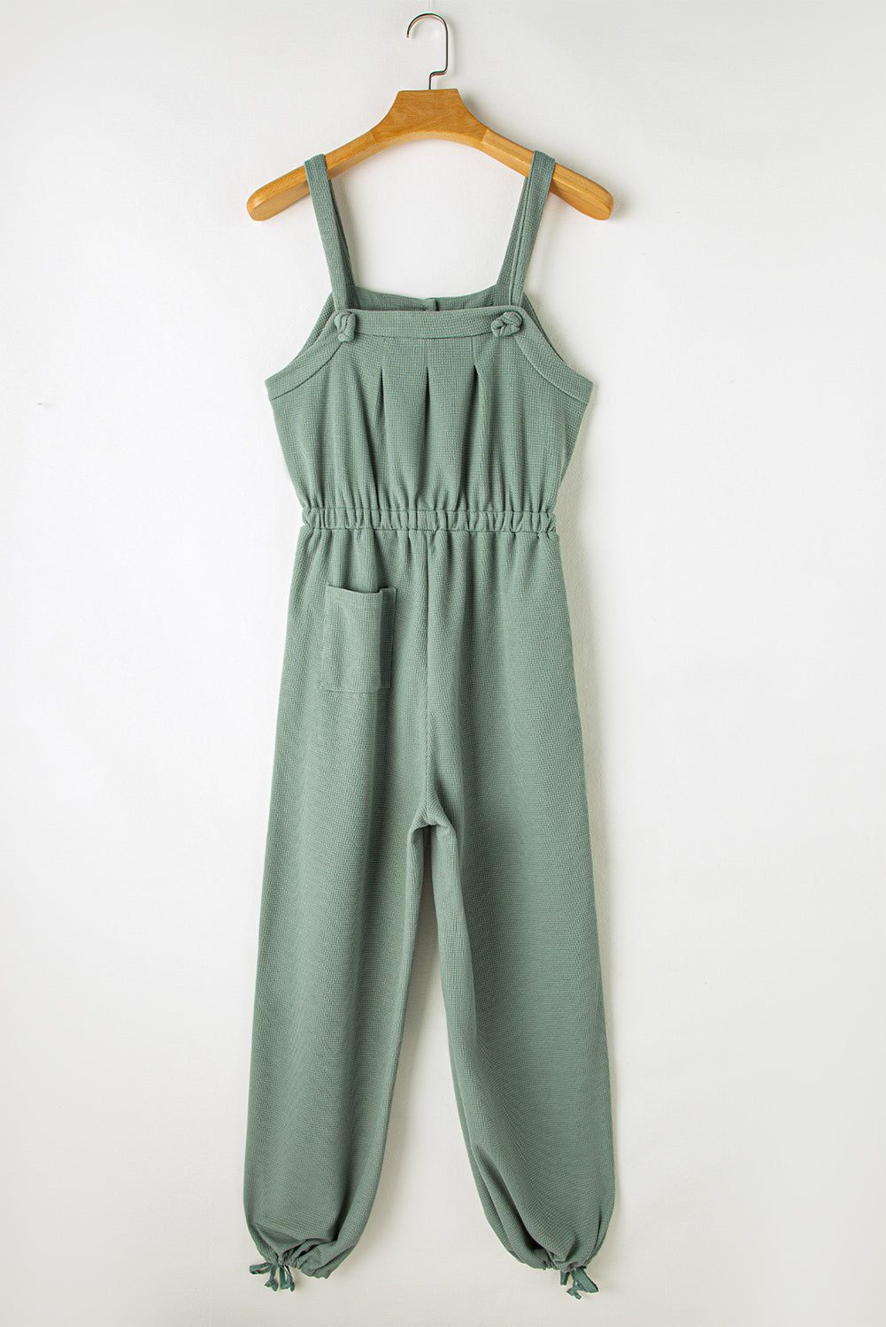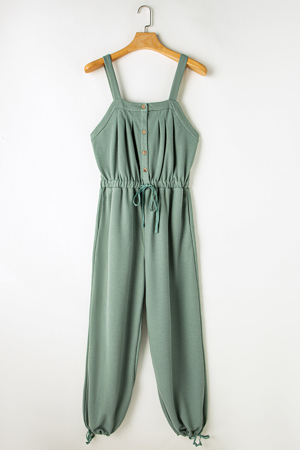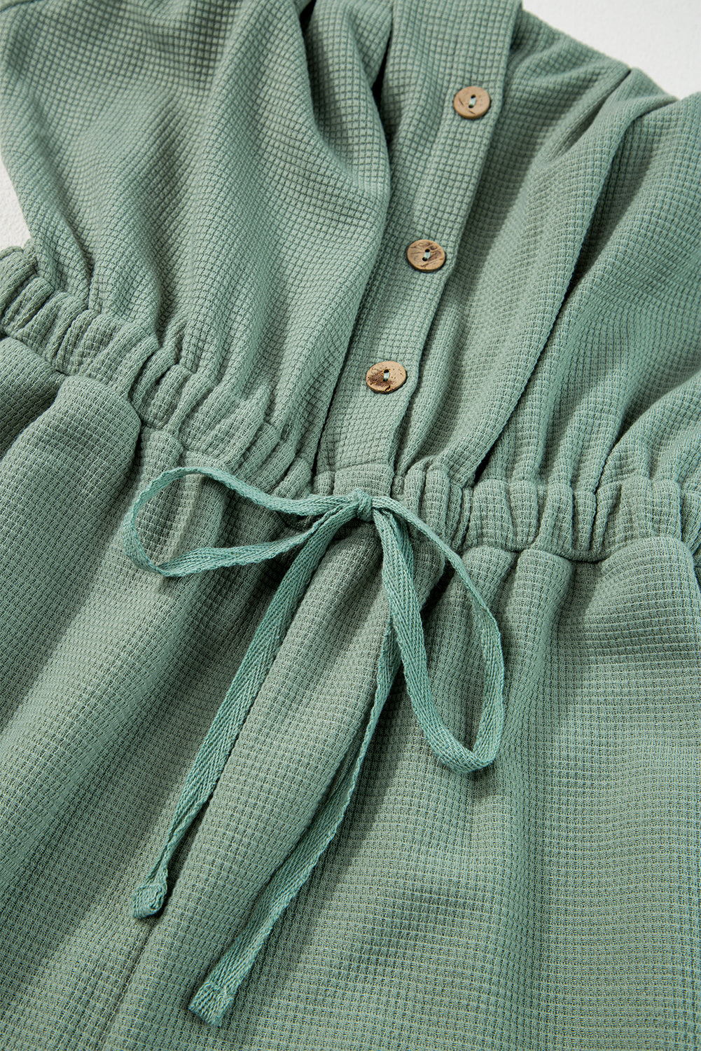 Moss Green Knotted Straps Button Textured Drawstring Jumpsuit