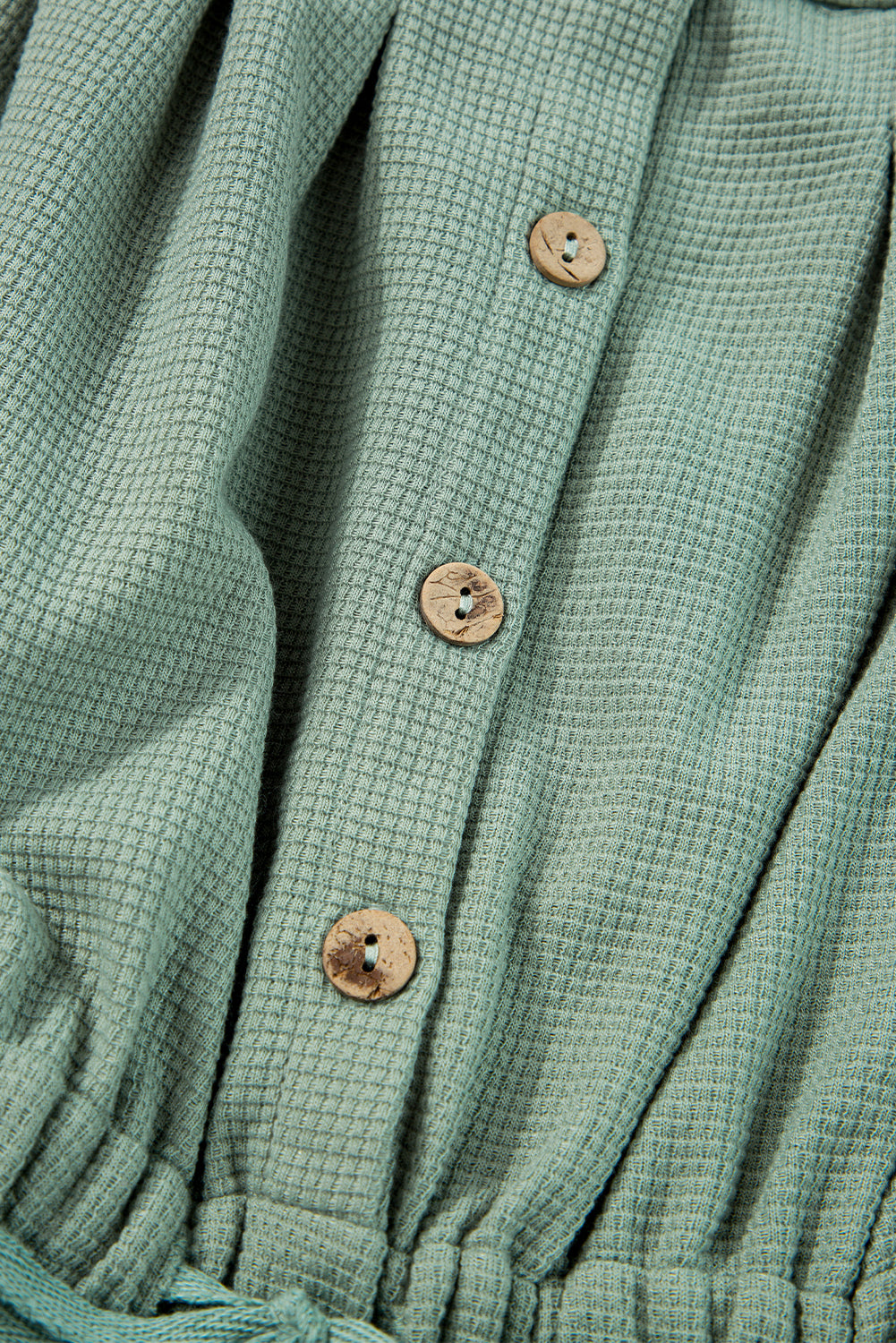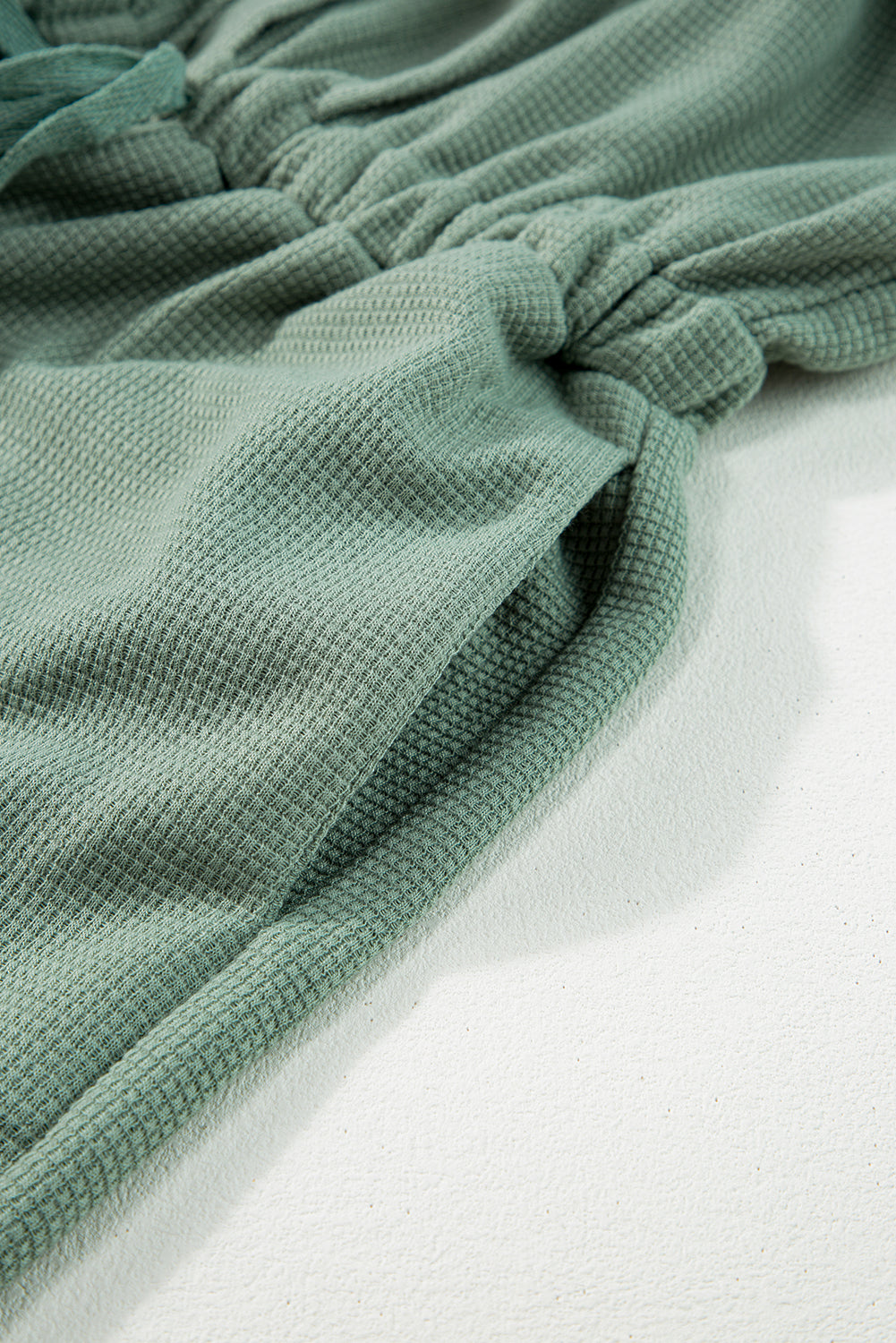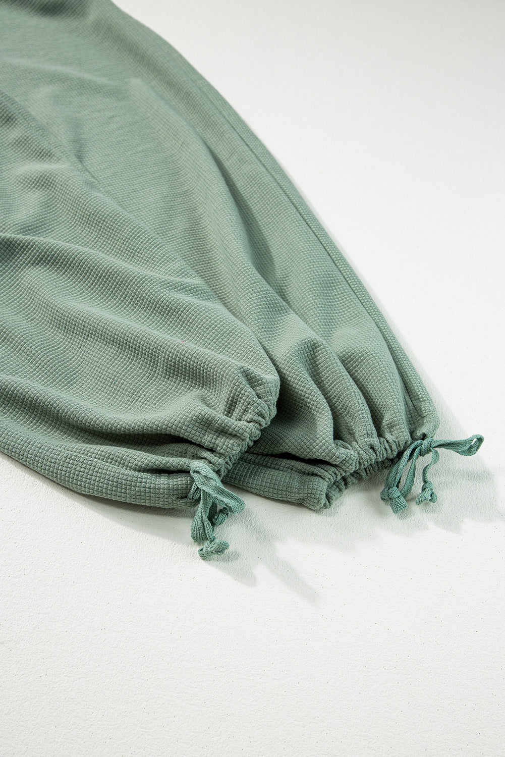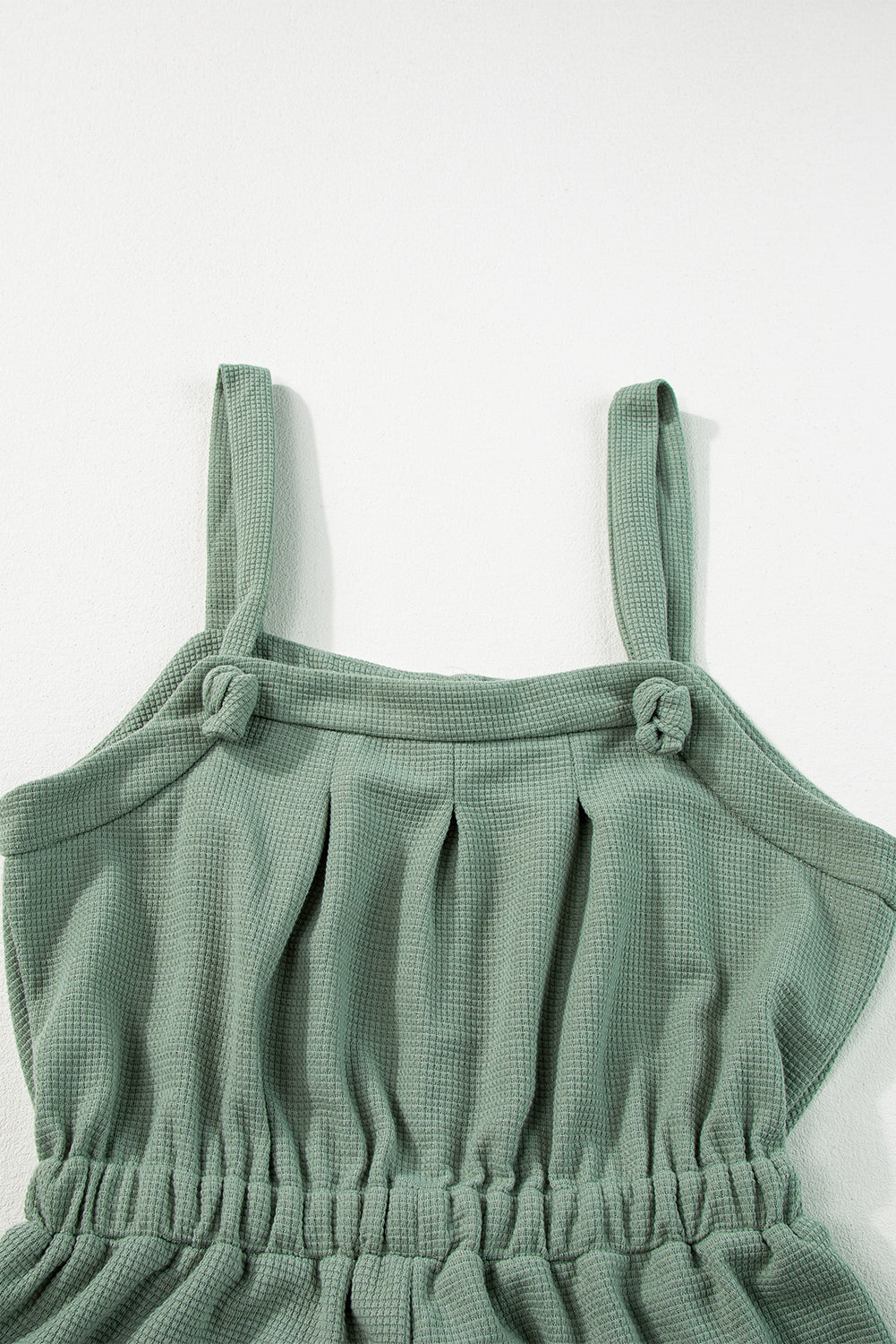 Moss Green Knotted Straps Button Textured Drawstring Jumpsuit