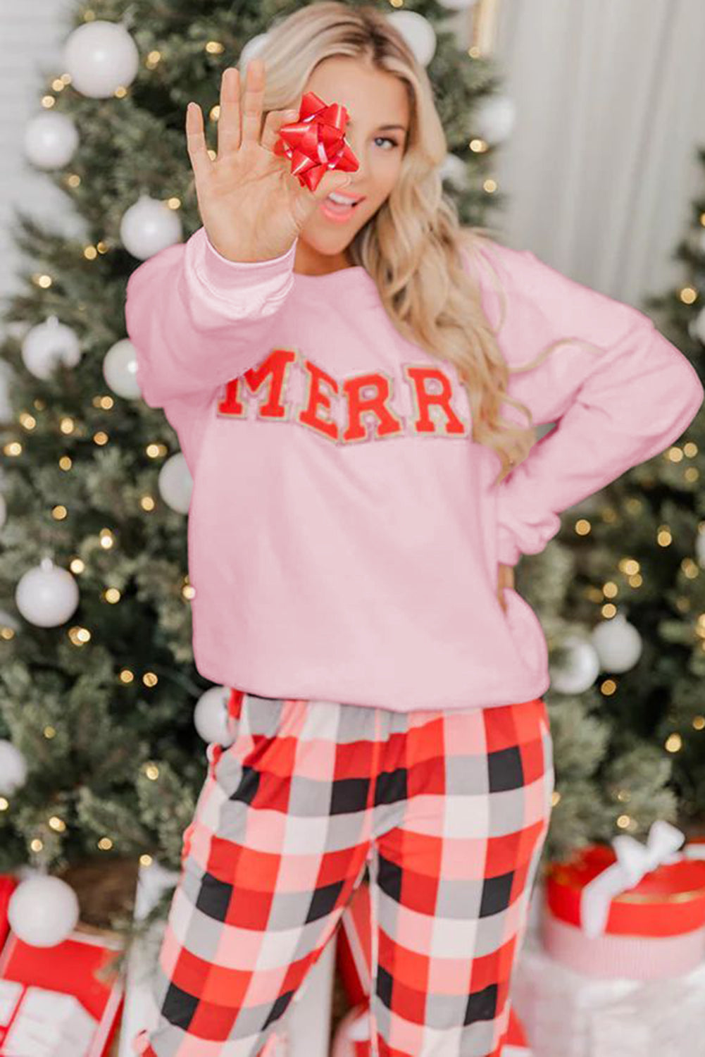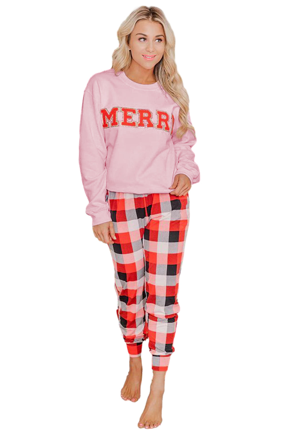 Multicolor MERRY Graphic Pullover and Plaid Pants Lounge Set