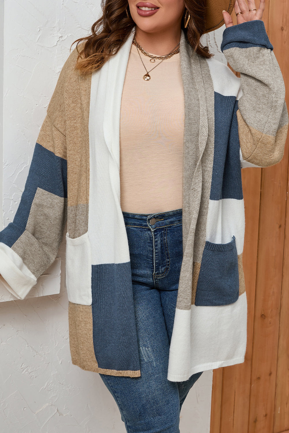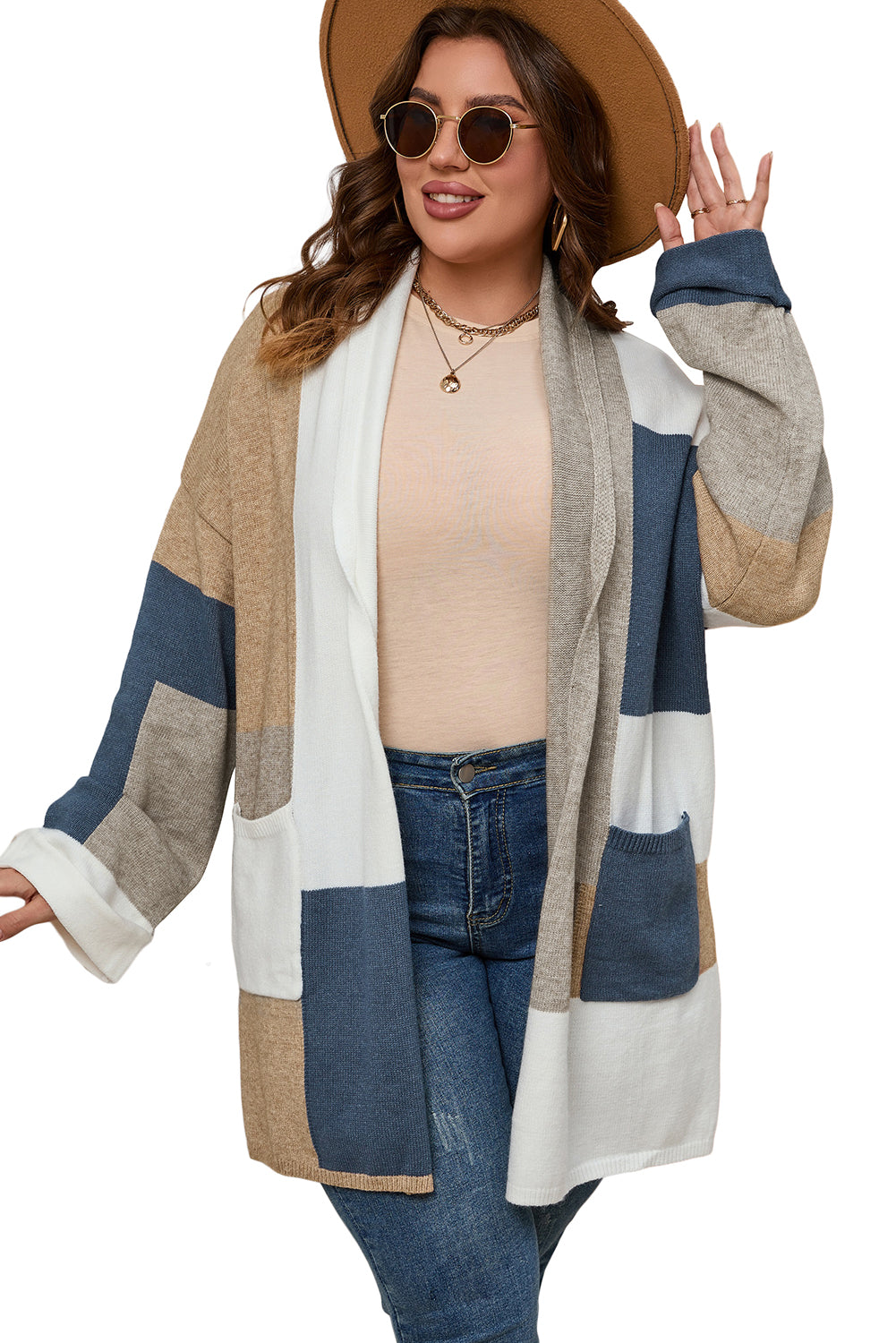 Multicolor Plus Size Colorblock Knit Cardigan