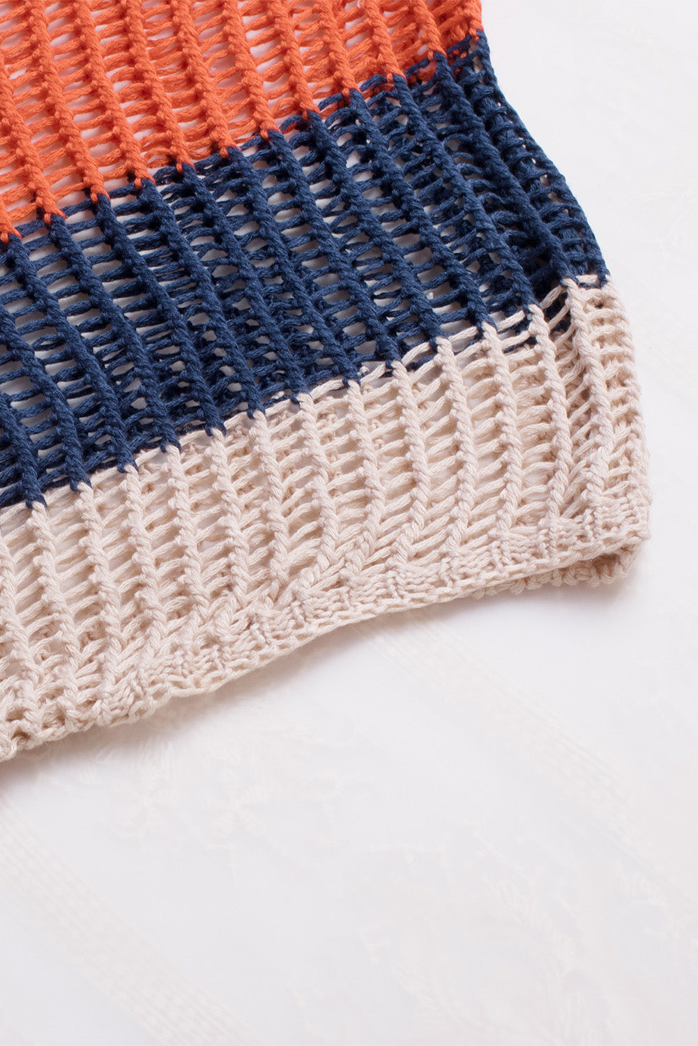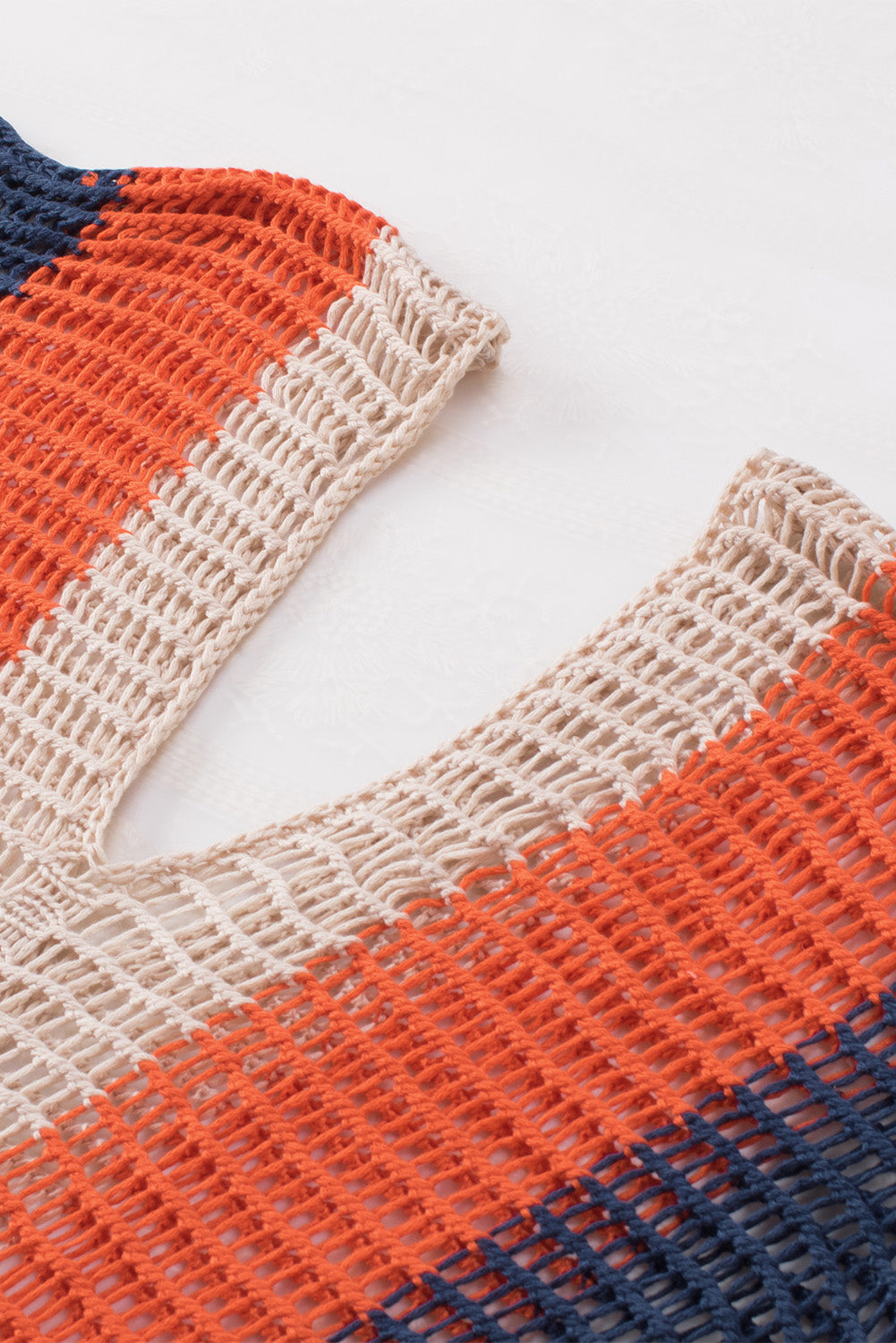 Multicolor Striped Tassel Crochet V Neck Beach Cover Up