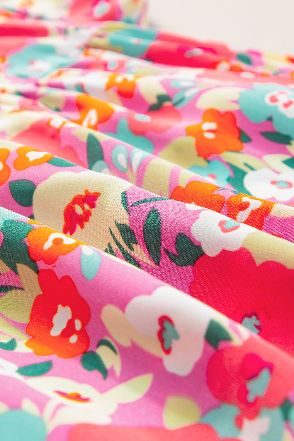 Multicolour Boho Floral Short Puff Sleeve Babydoll Blouse