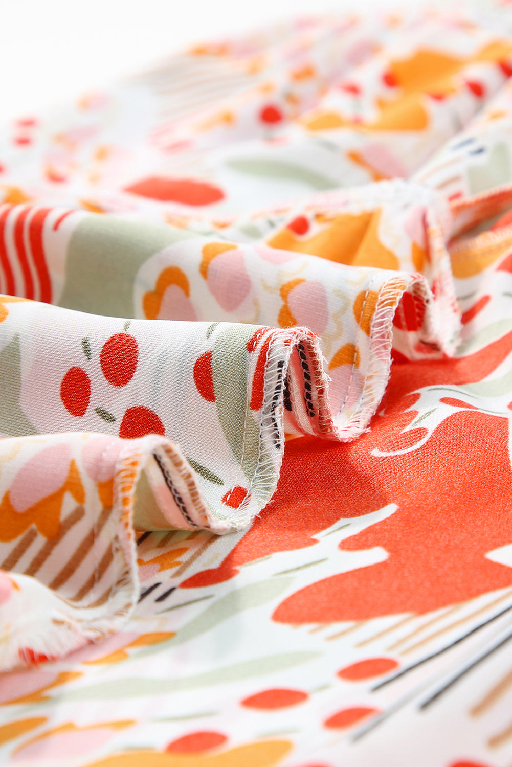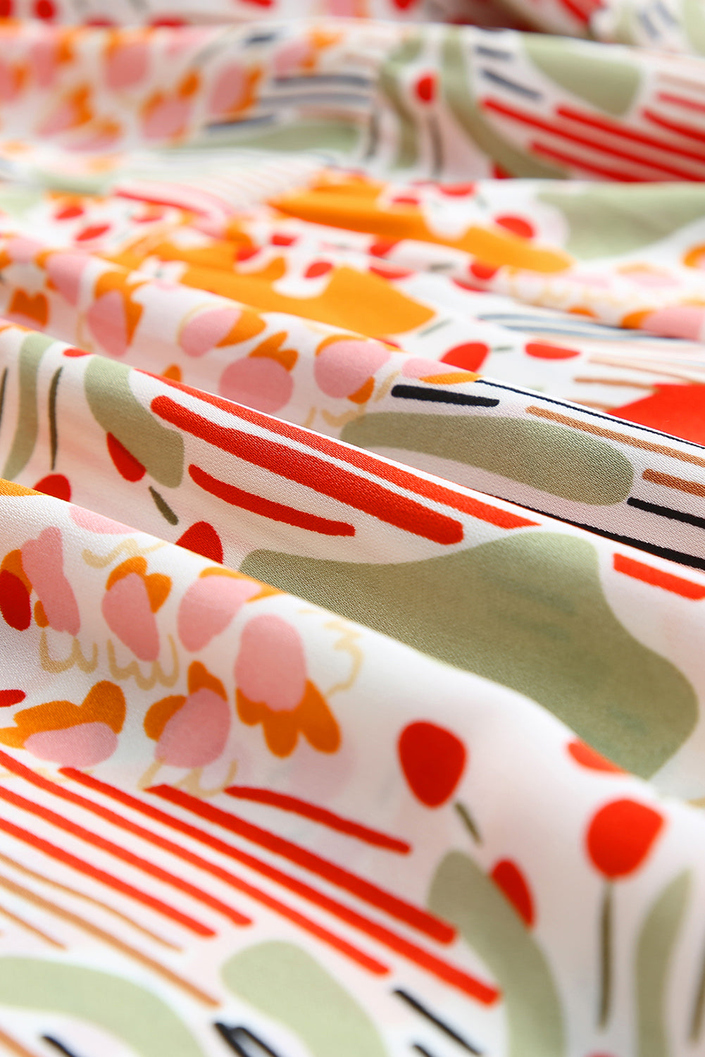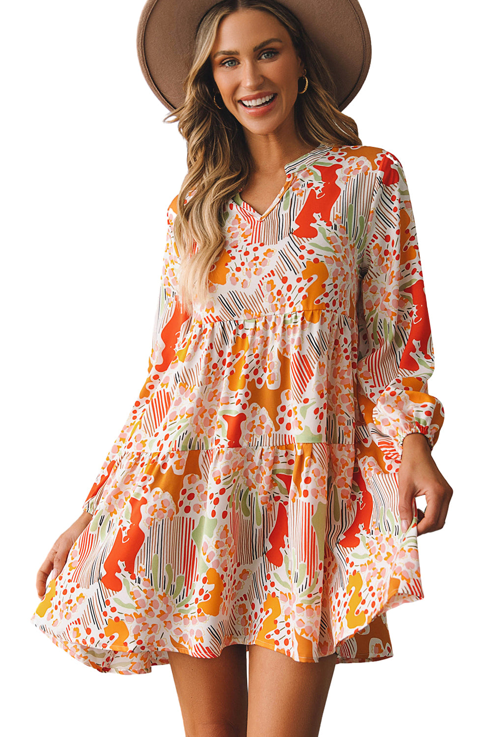 Multicolour Split Neck Puff Sleeve Flowy Printed Dress