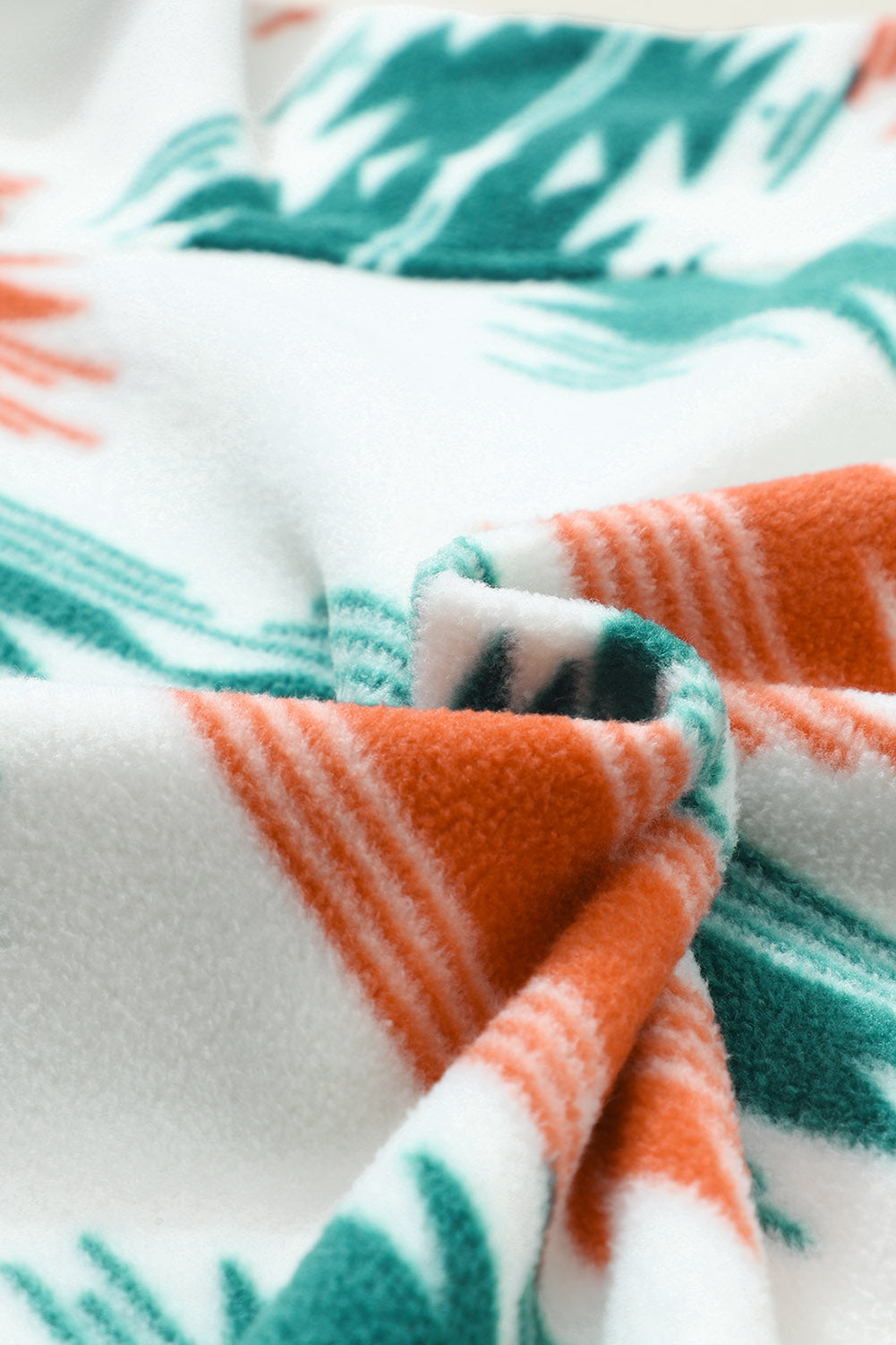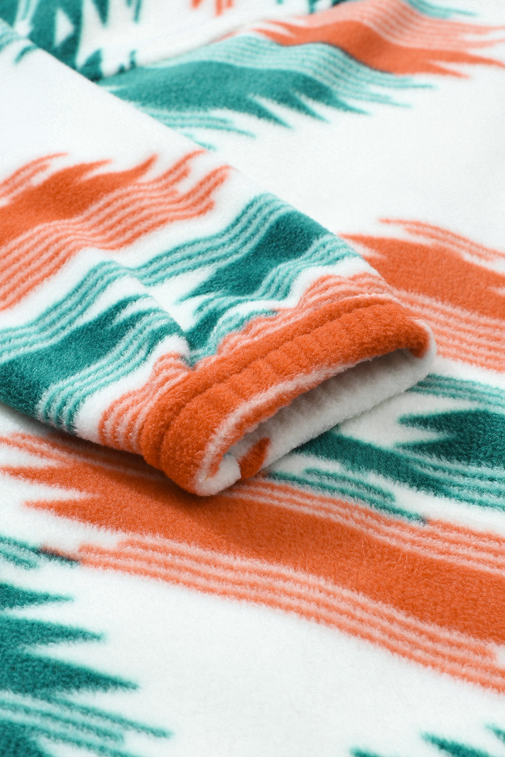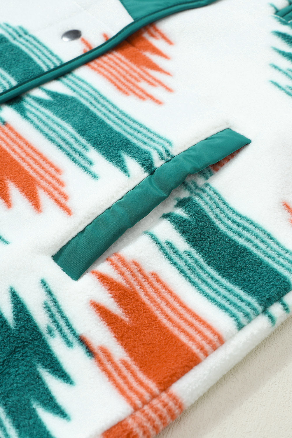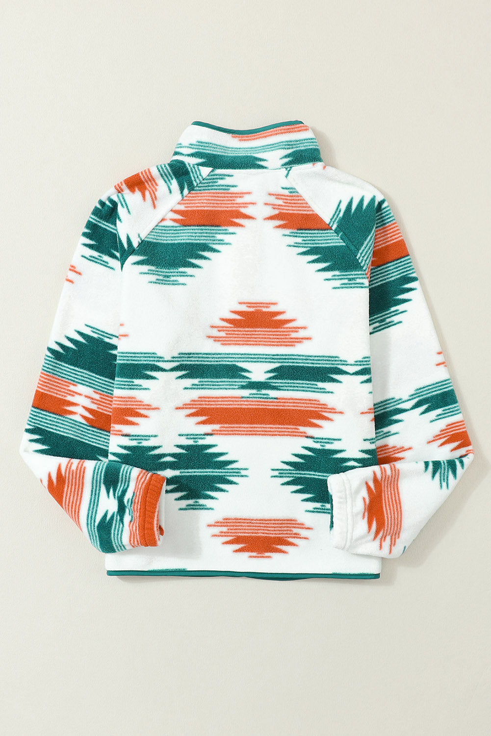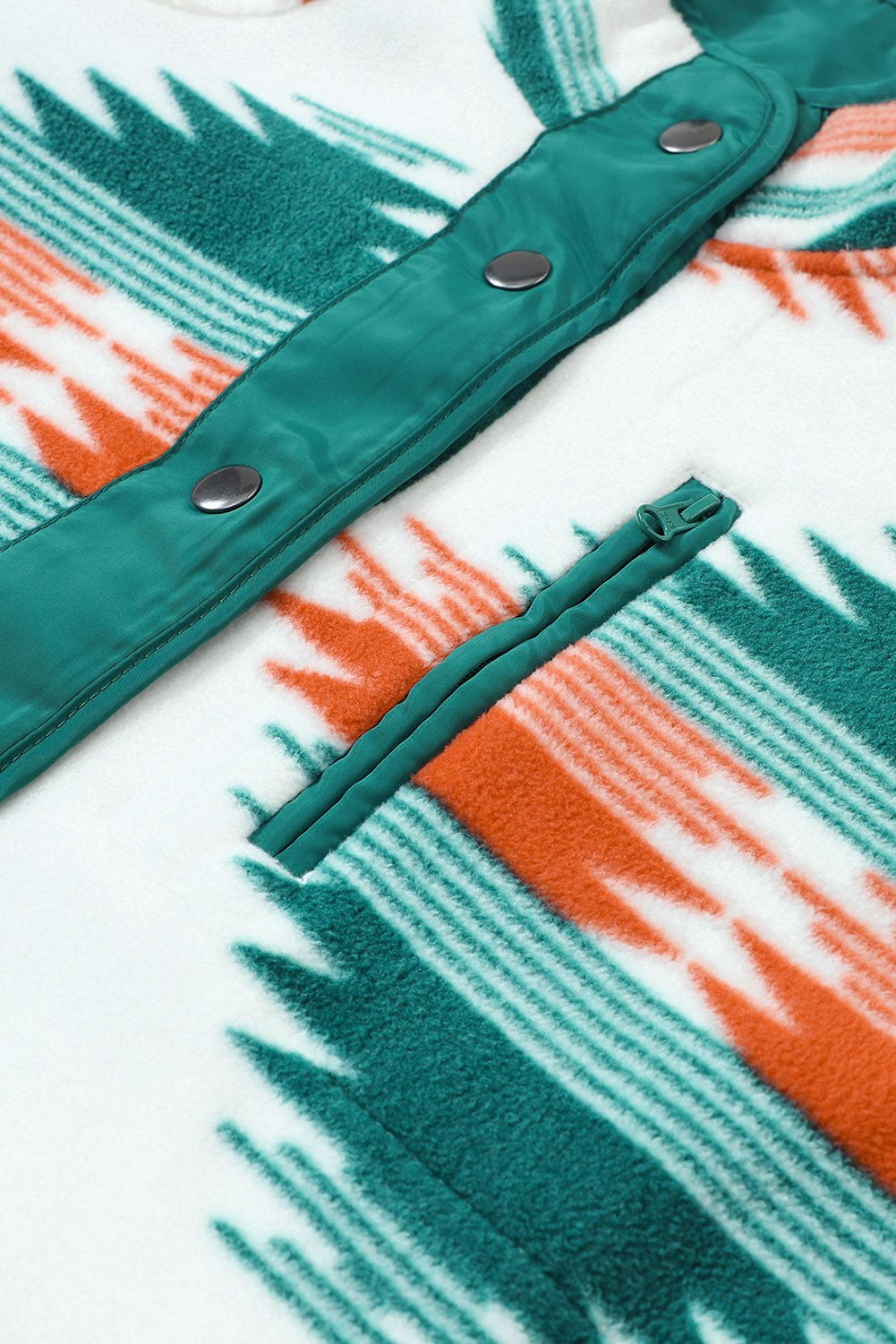 Multicolour Western Aztec Snap Buttoned Fleece Jacket