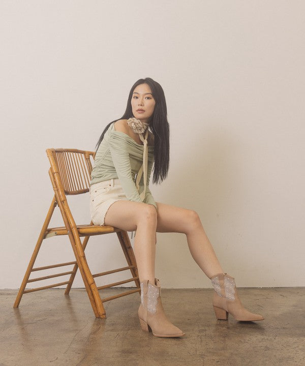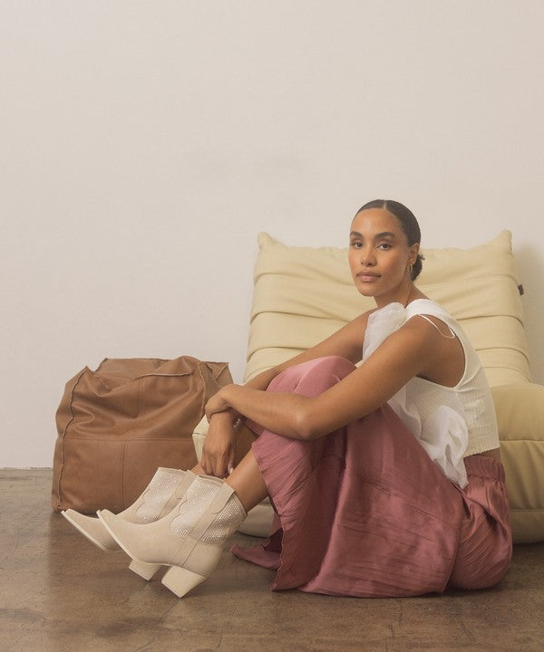 Introducing the Oasis Society Cannes - Pearl Studded Western Boots, a luxurious twist on classic western style. These boots are adorned with exquisite pearls, elevating them to a level of sophistication that sets them apart from the ordinary rhinestone cowboy look. The pearl-studded panels and clean stitching create a refined and eye-catching design that blends elegance with Western charm.