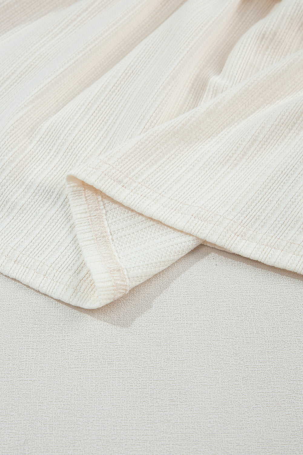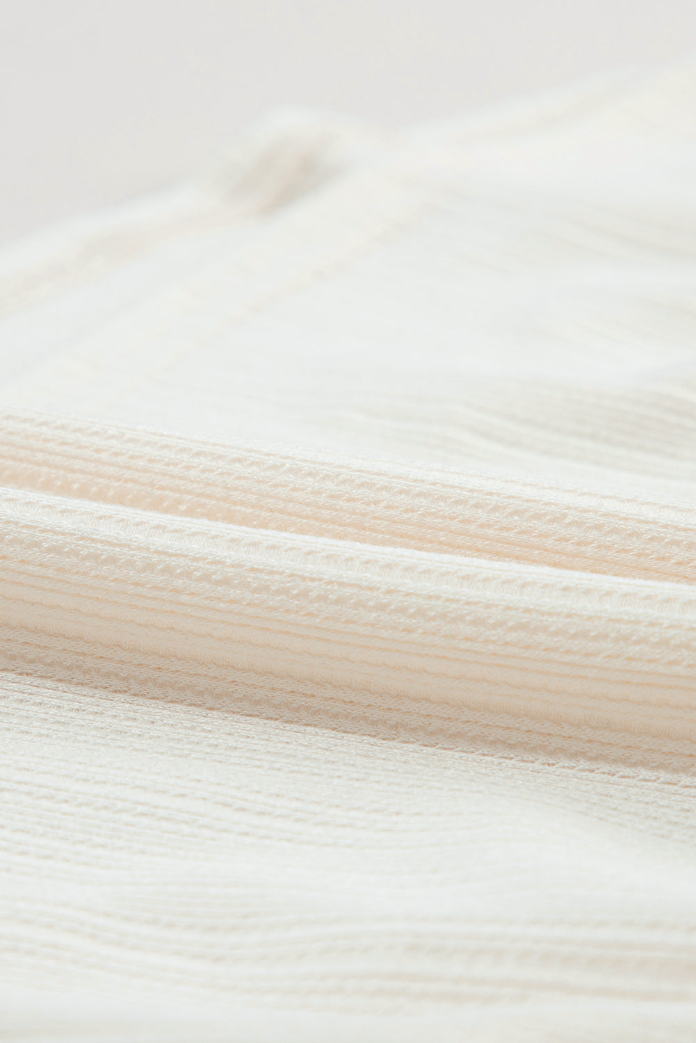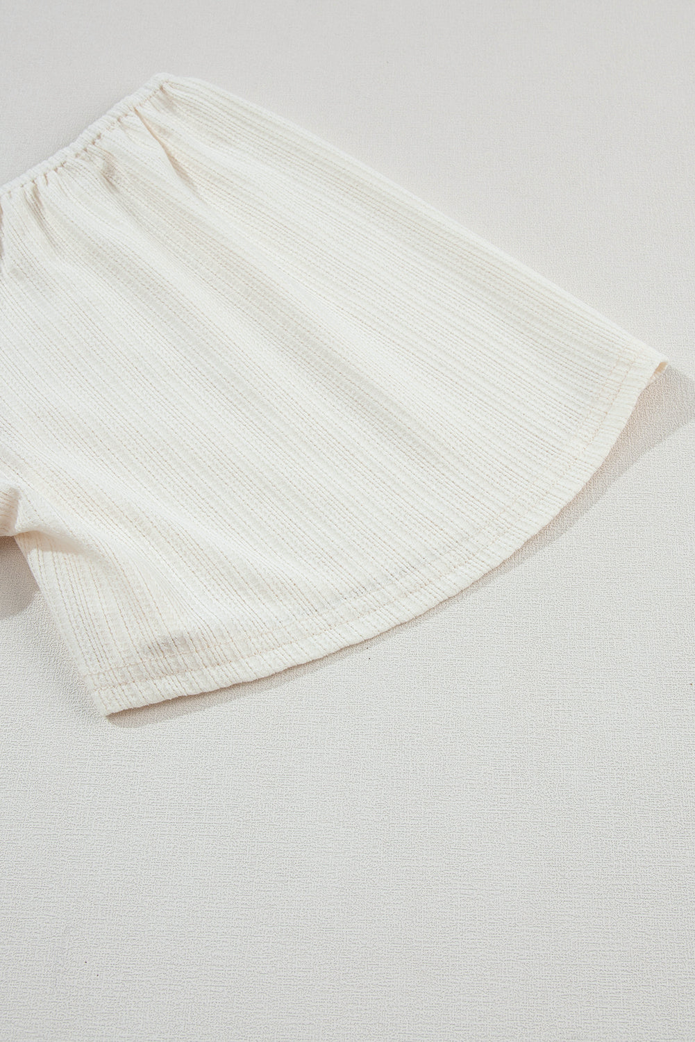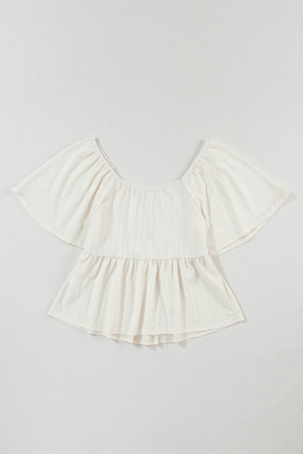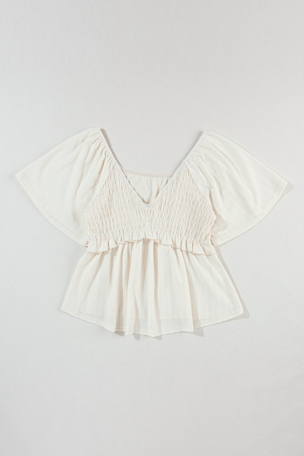 Oatmeal Shirred V Neck Short Flutter Sleeve Textured Blouse