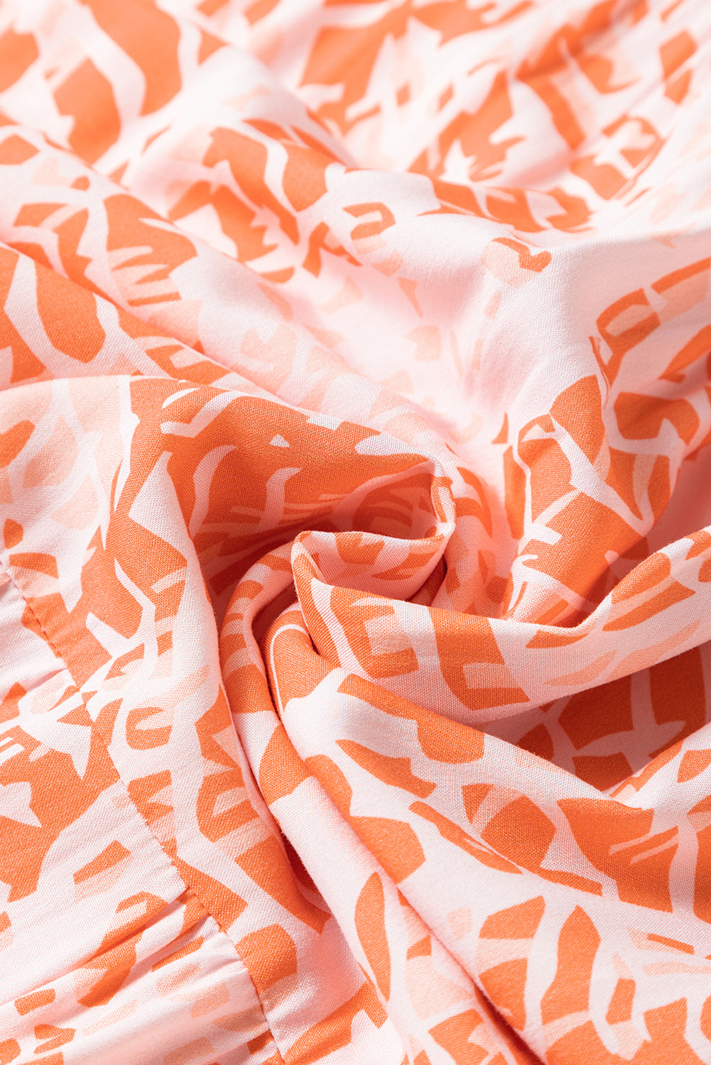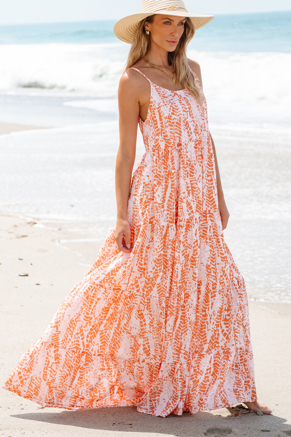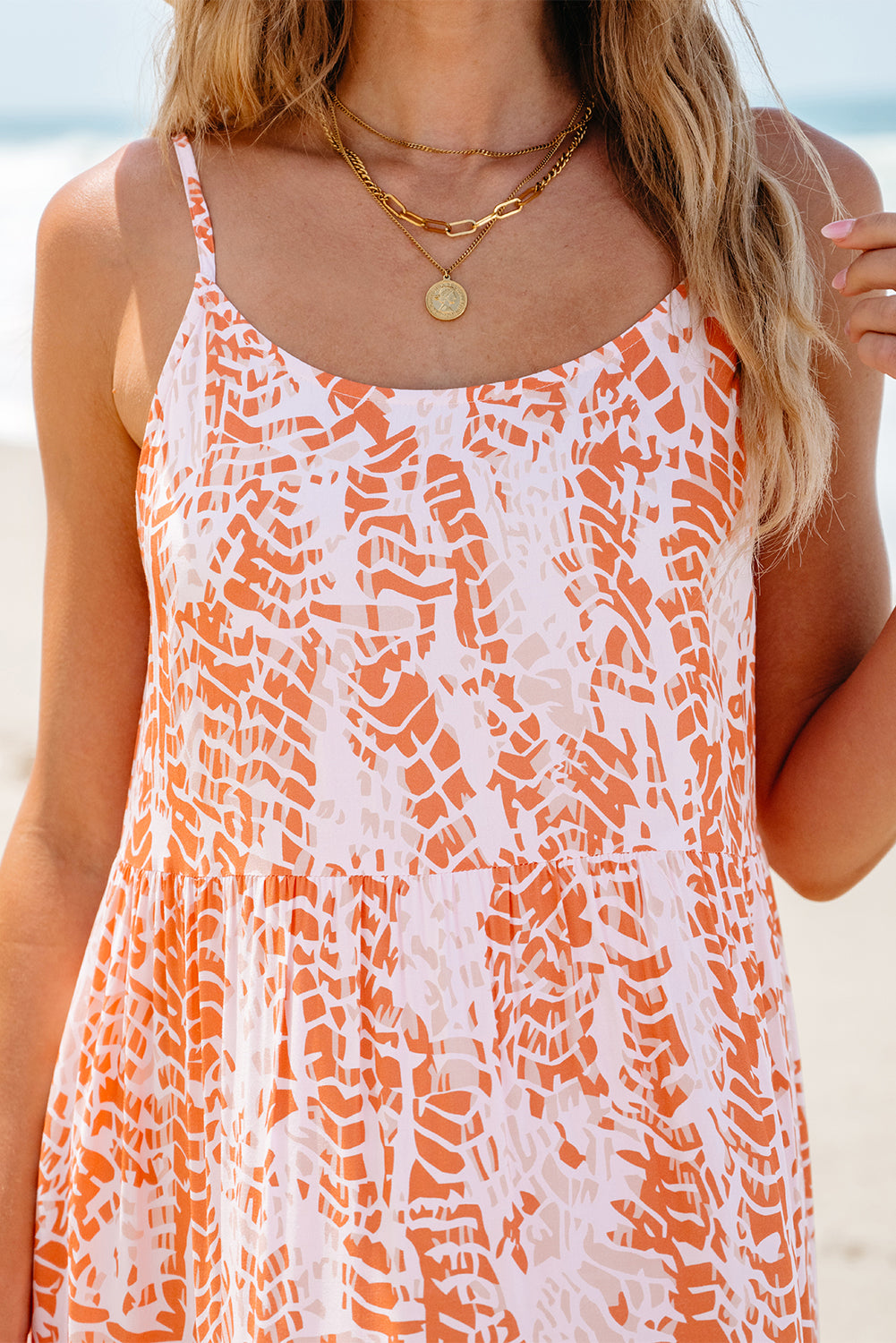 Orange Abstract Print Spaghetti Straps Backless Tiered Maxi Dress