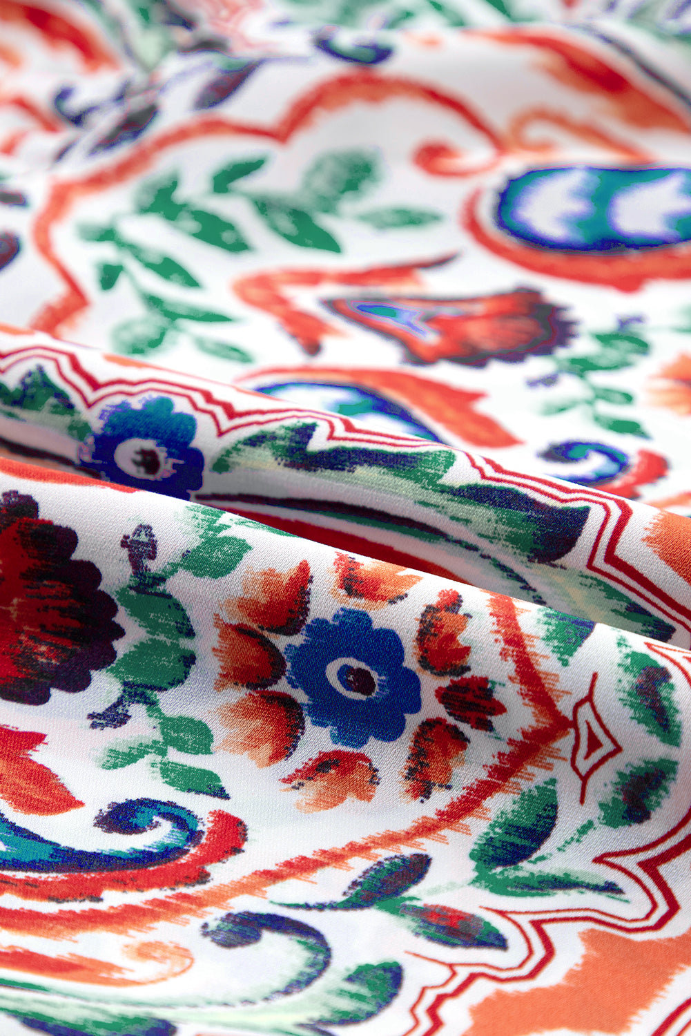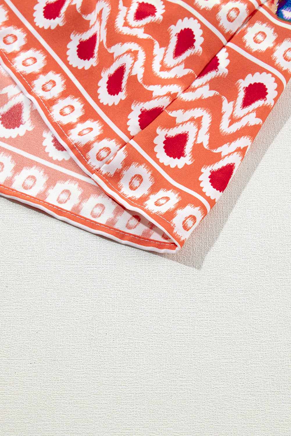 Orange Bohemian Print Tie Neck Ruffle Hem Short Dress
