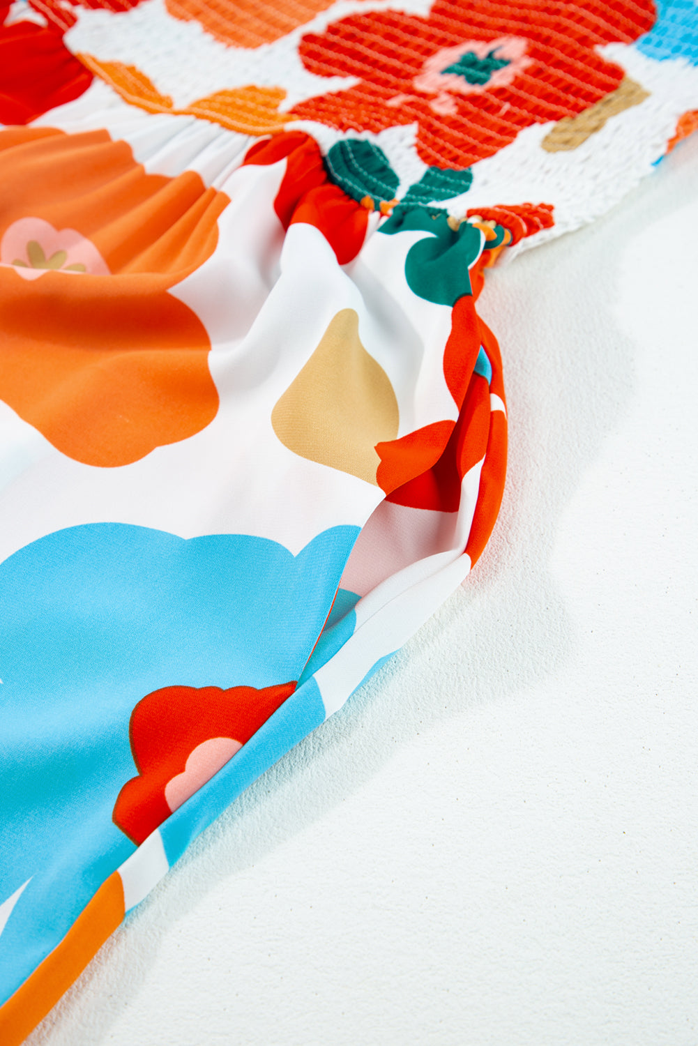 Orange Floral Spaghetti Straps Smocked Wide Leg Jumpsuit