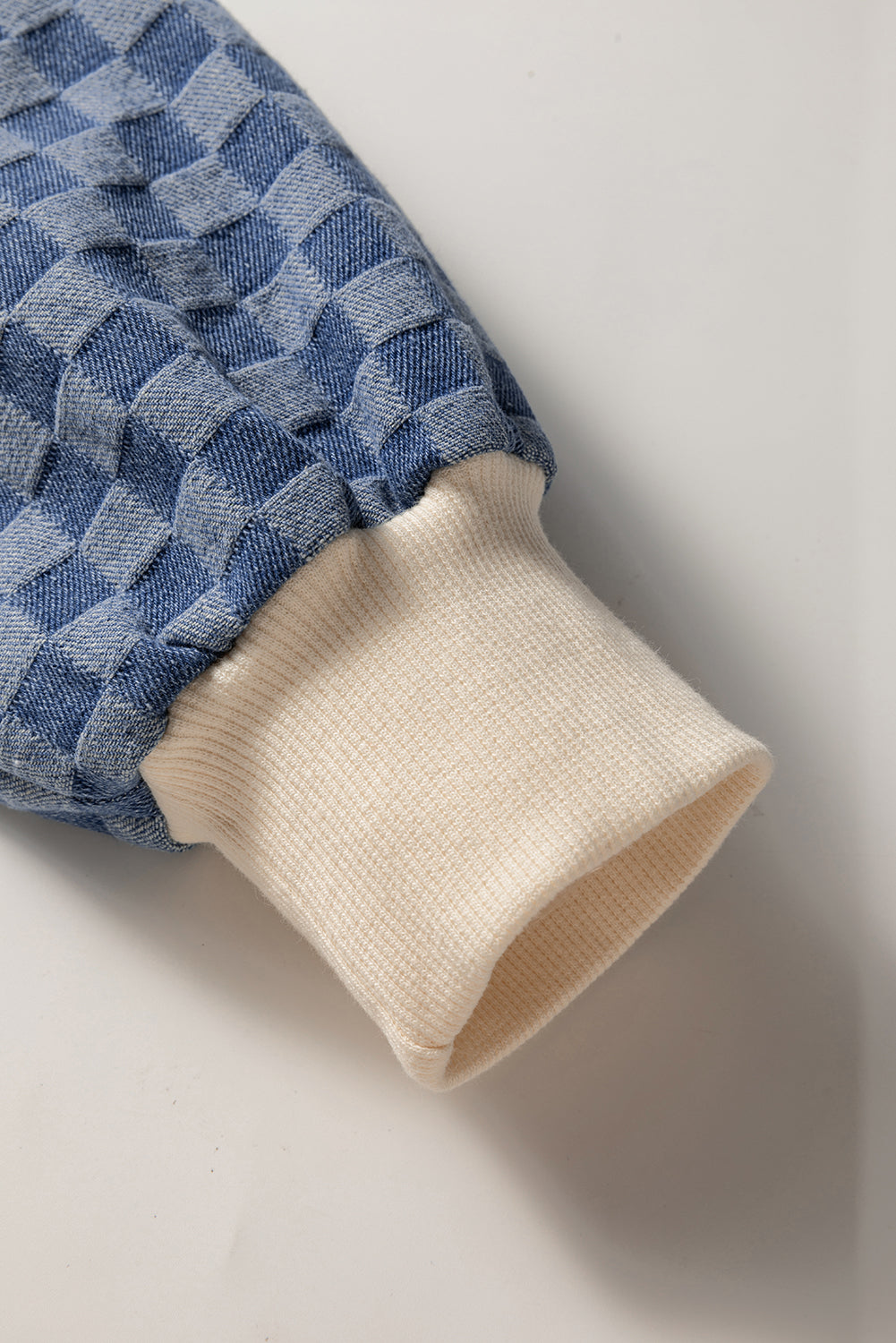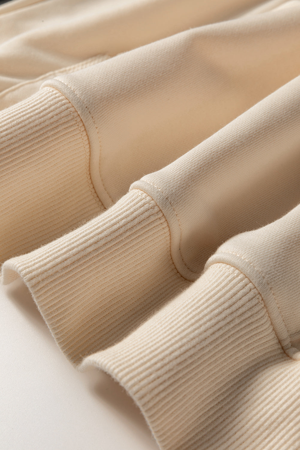 Parchment Checkered Patchwork Kangaroo Pocket Half Zipper Hoodie