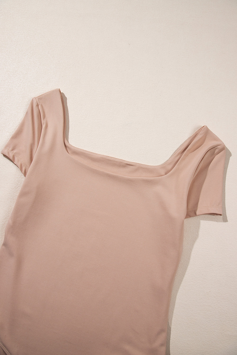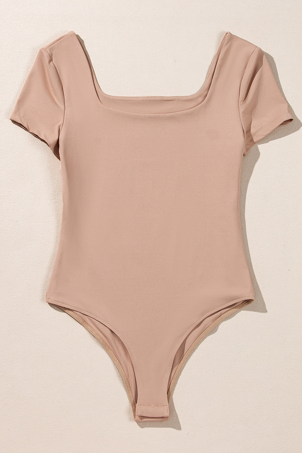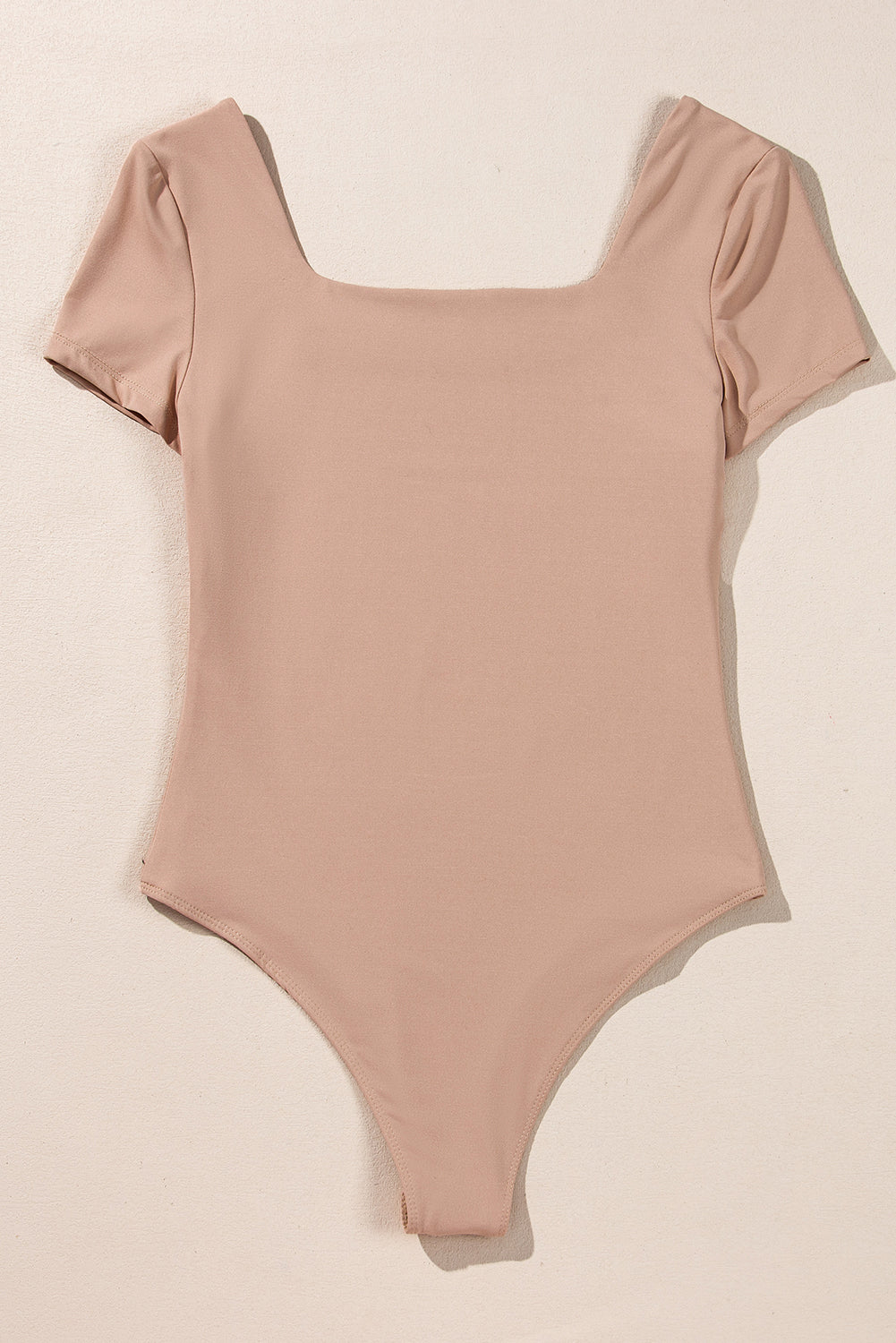 Parchment Solid Color Short Sleeve Square Neck Sheath Bodysuit