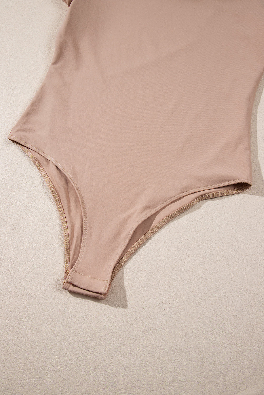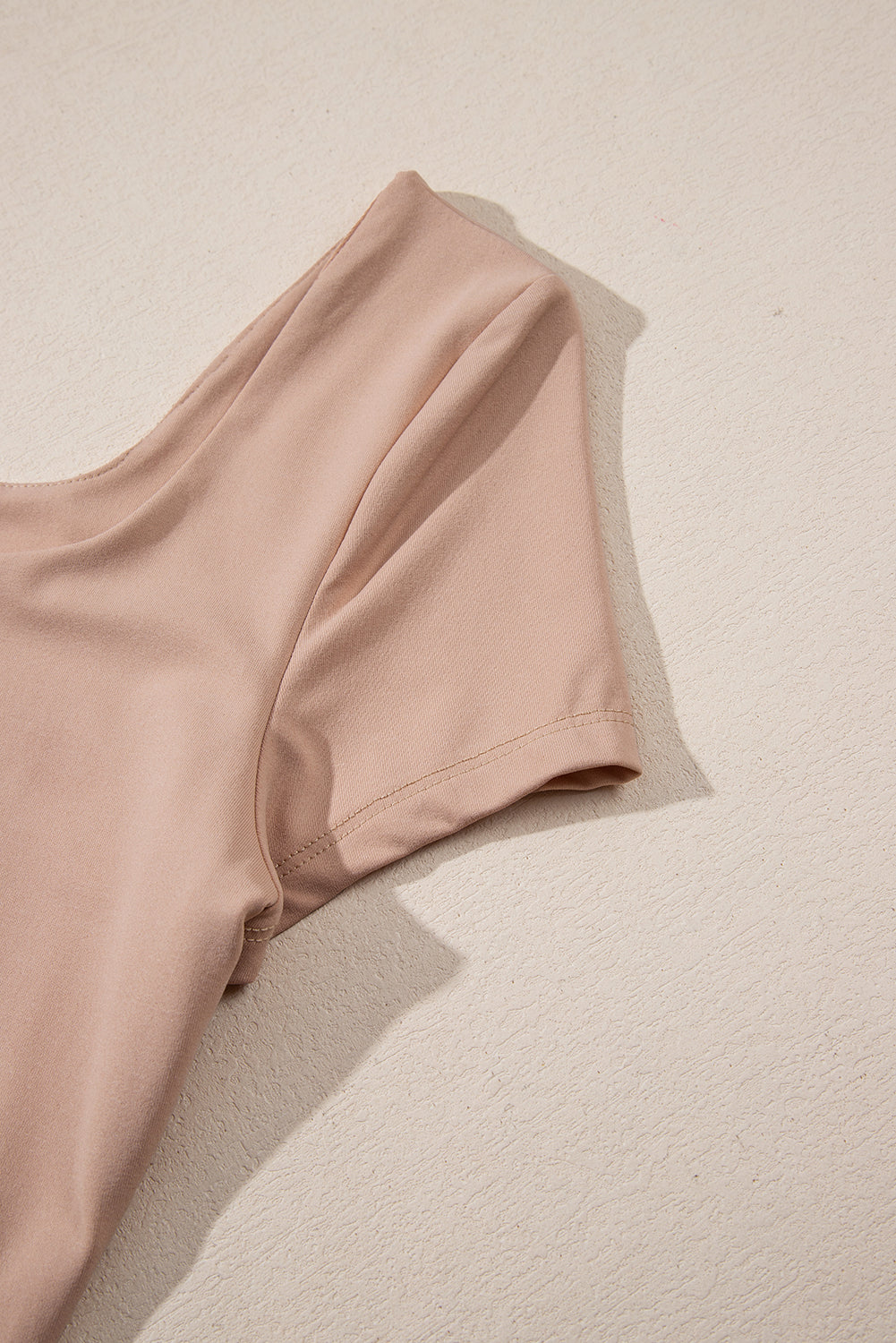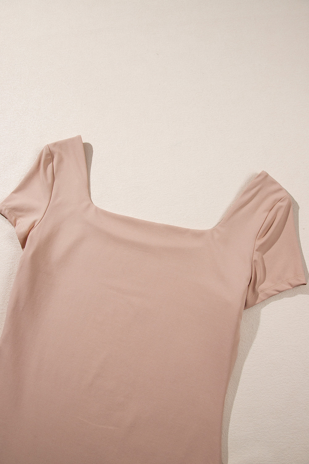 Parchment Solid Color Short Sleeve Square Neck Sheath Bodysuit