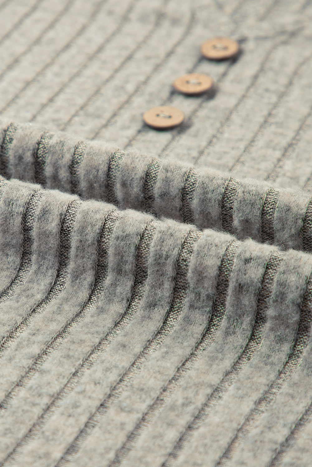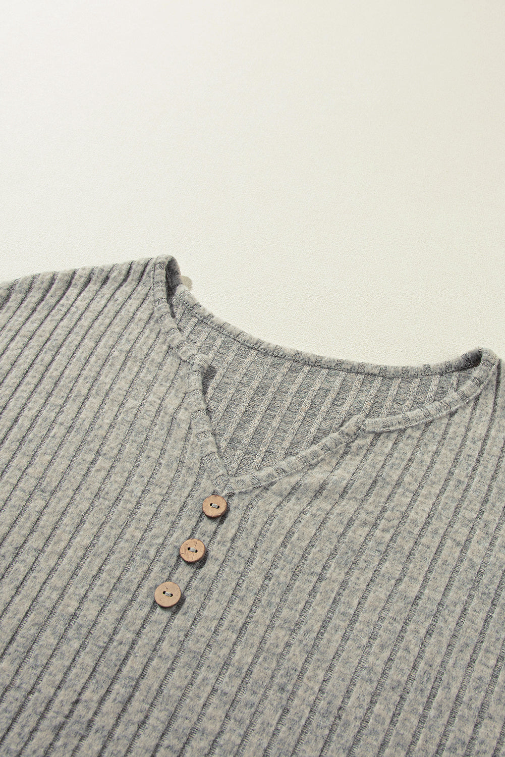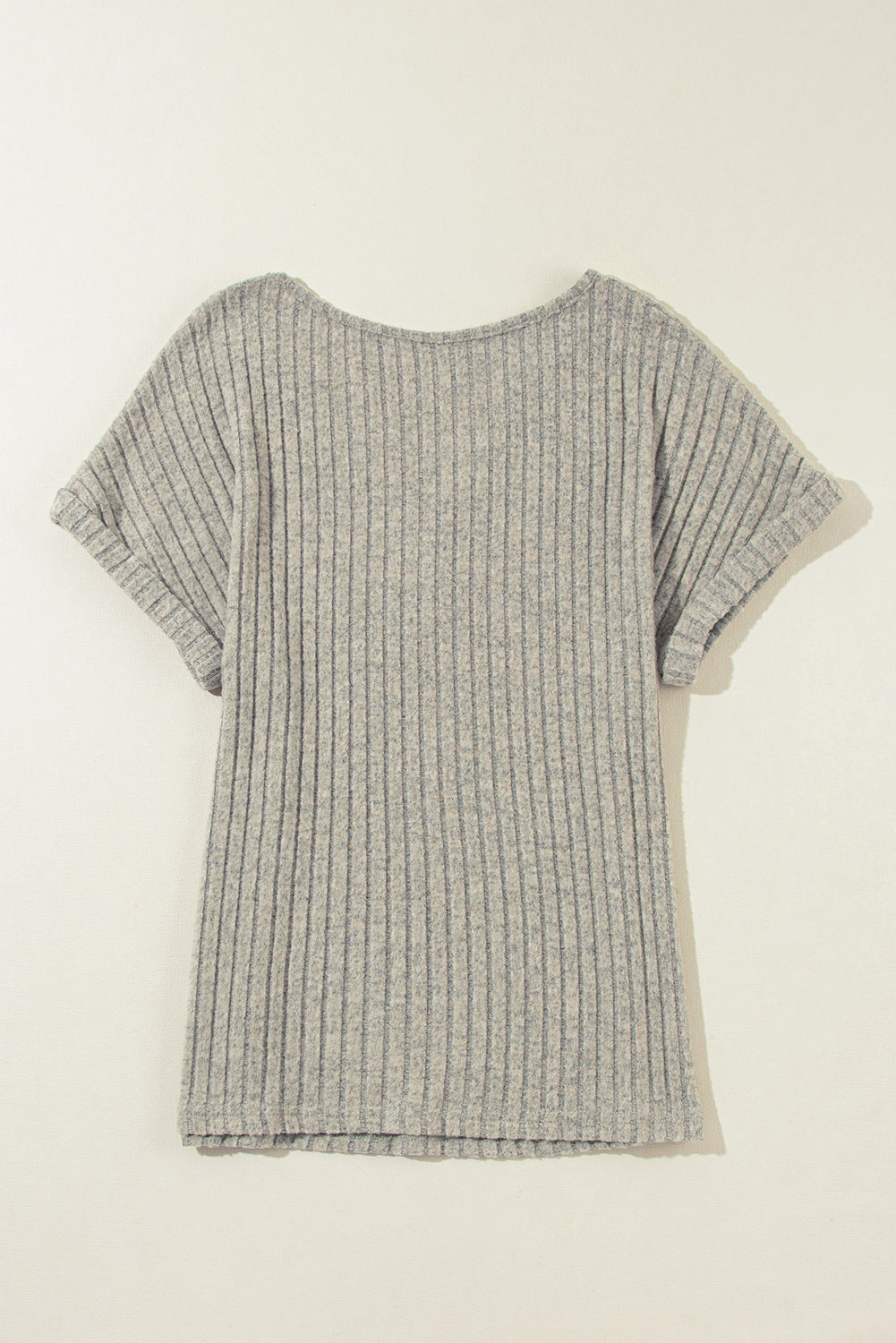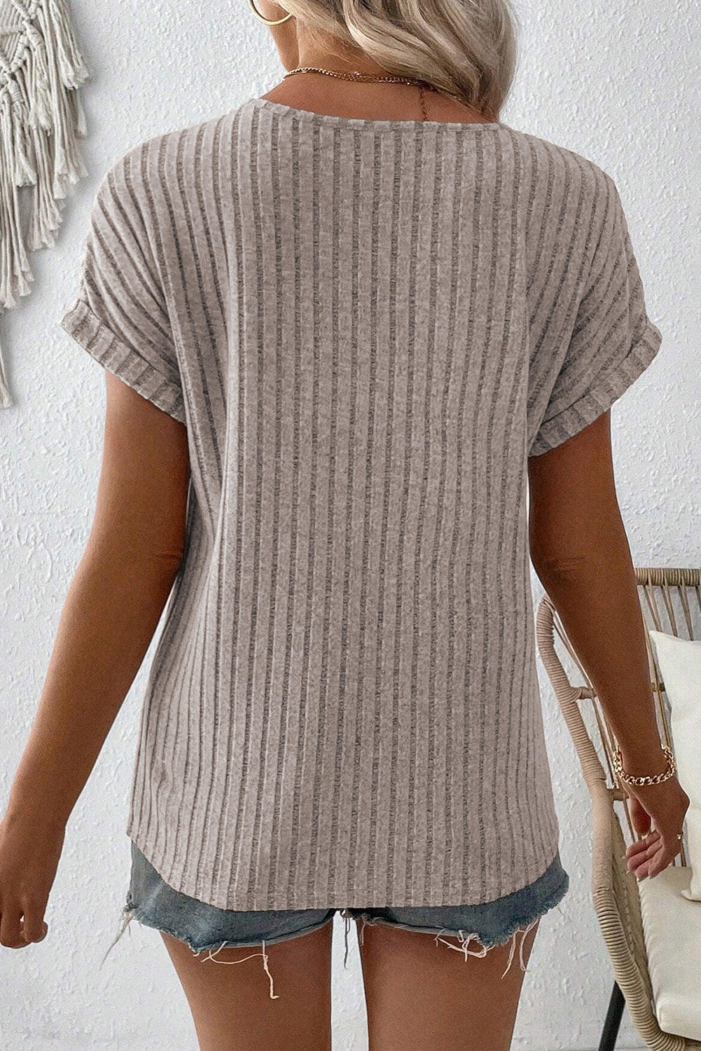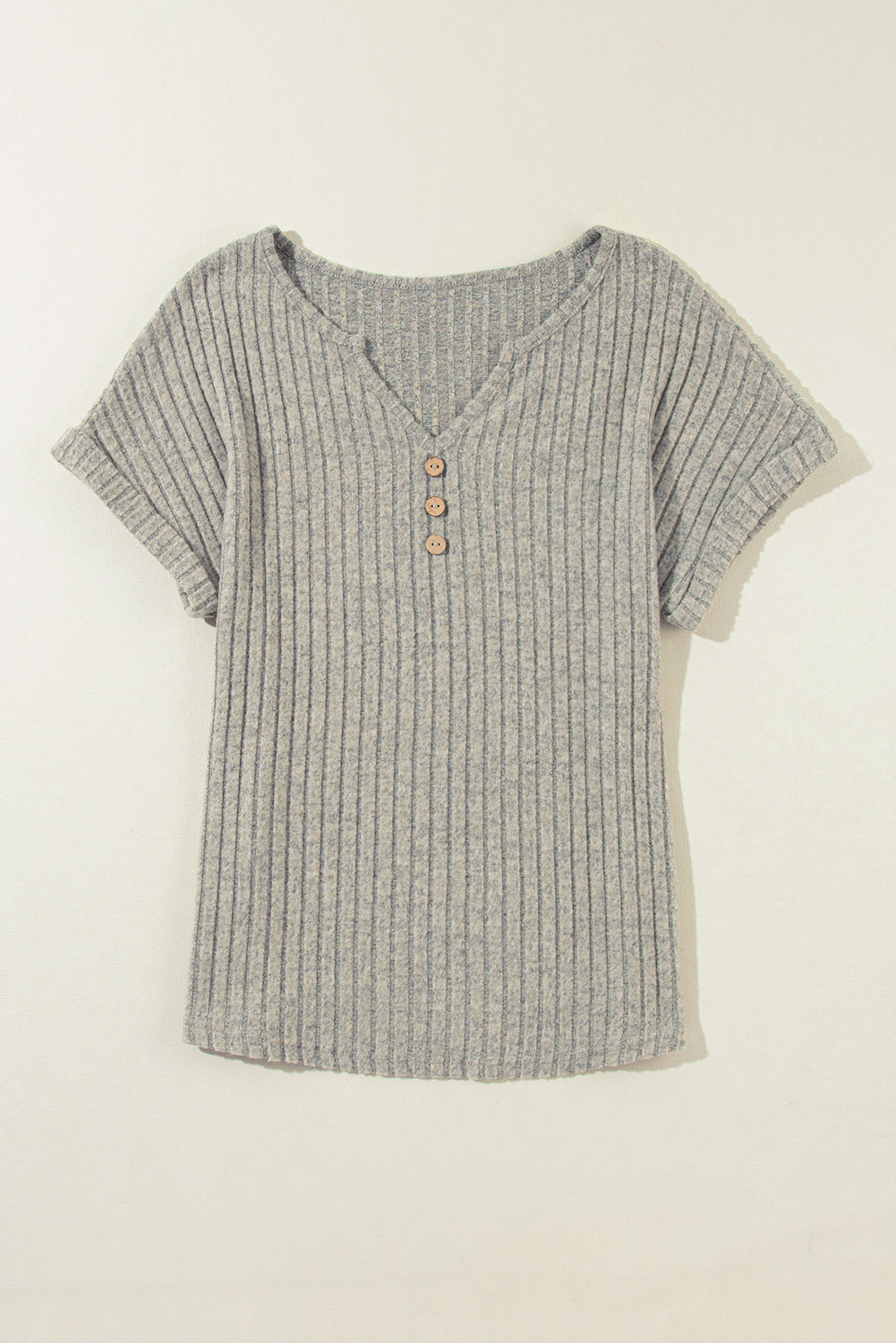 Parchment Wide Ribbed Notched V Neck Button Decor T shirt