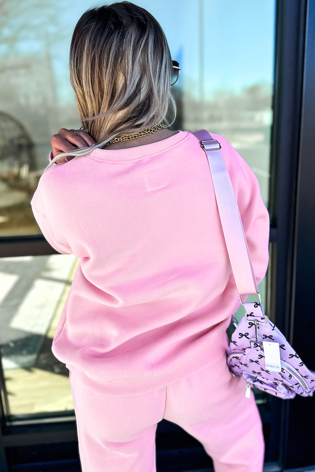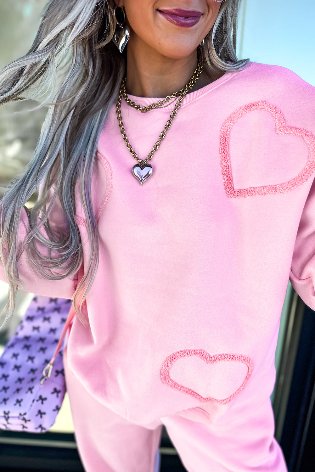 Phalaenopsis Chenille Heart Pattern Casual 2pcs Pants Set
