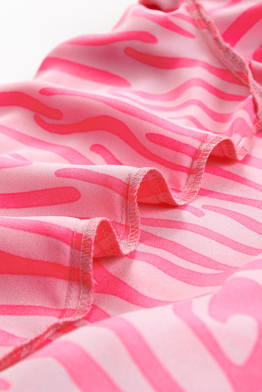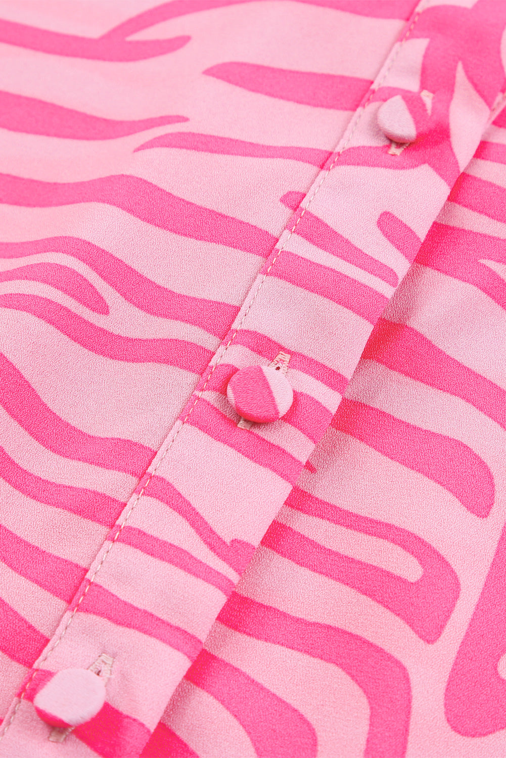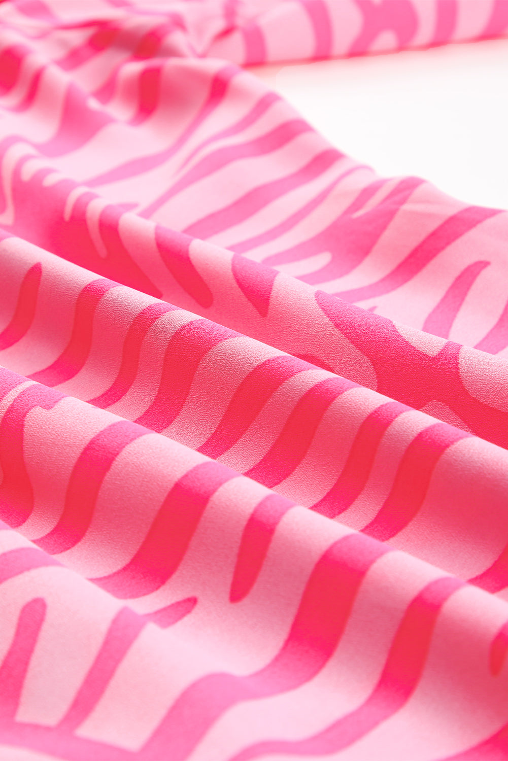 Pink Zebra Stripes Print Lantern Sleeve Shirt