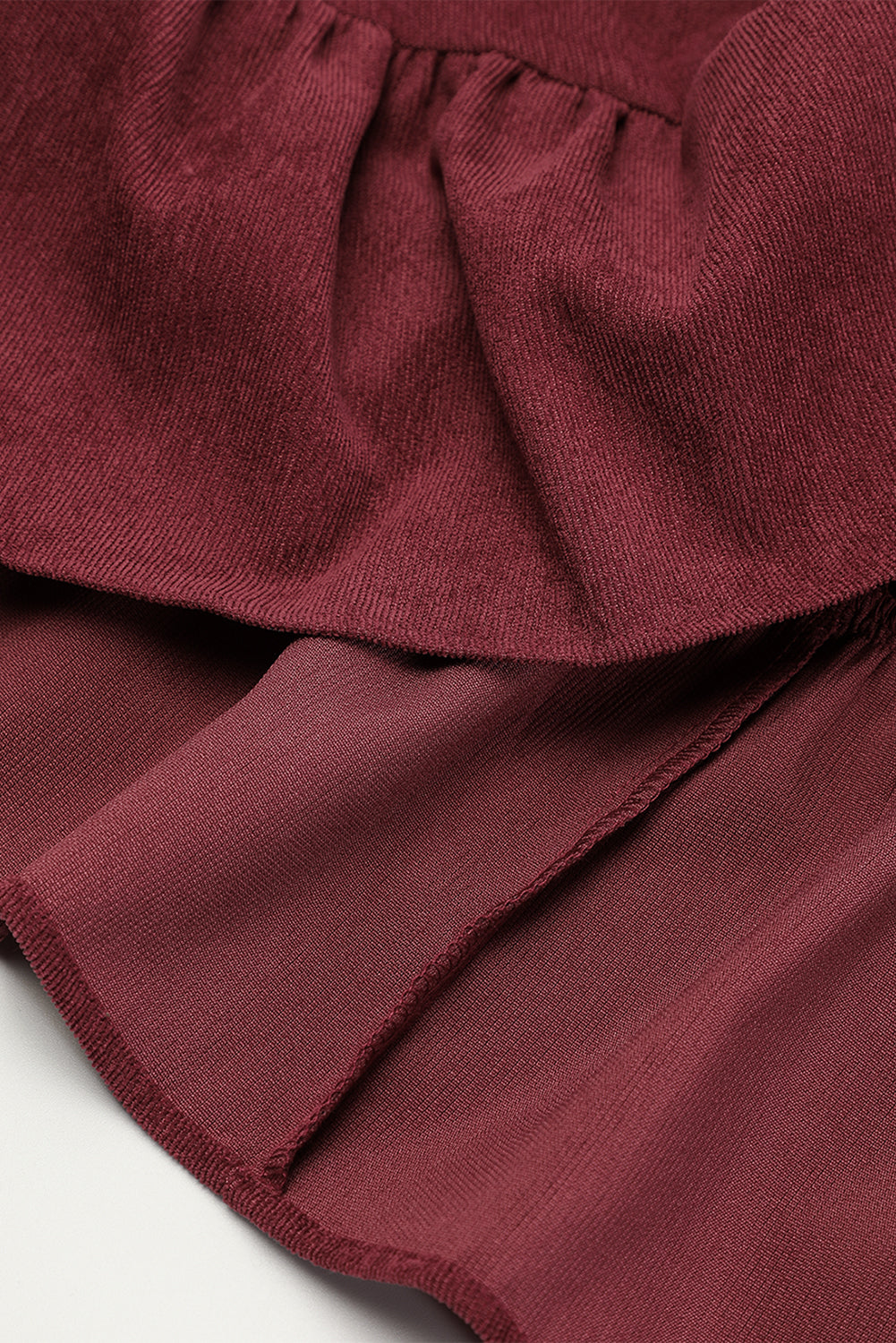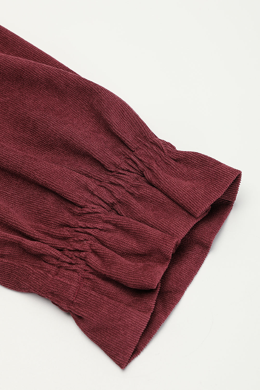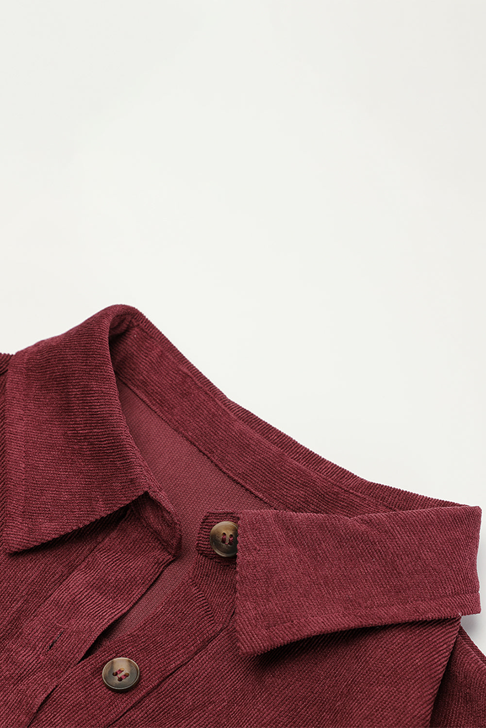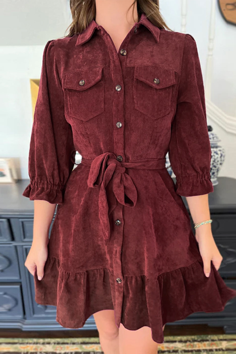 Red Dahlia Collared Buttons Front Ruffled Hem Shirt Corduroy Dress