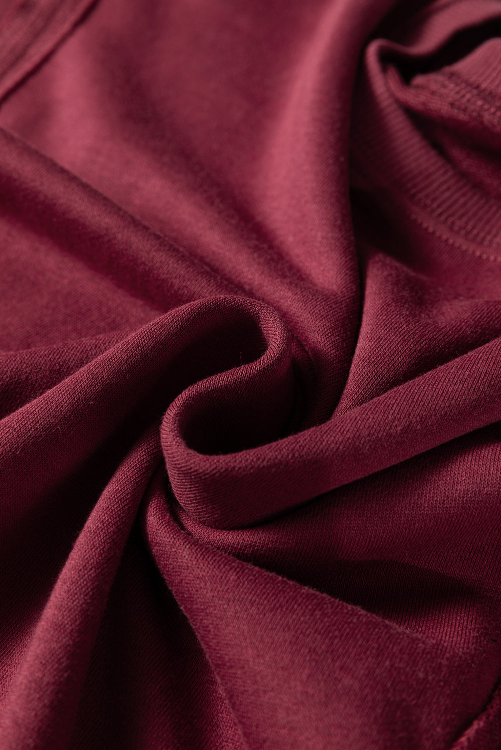 Red Sandalwood Plaid Colorblock Patchwork Sleeve Raw Seam Sweatshirt