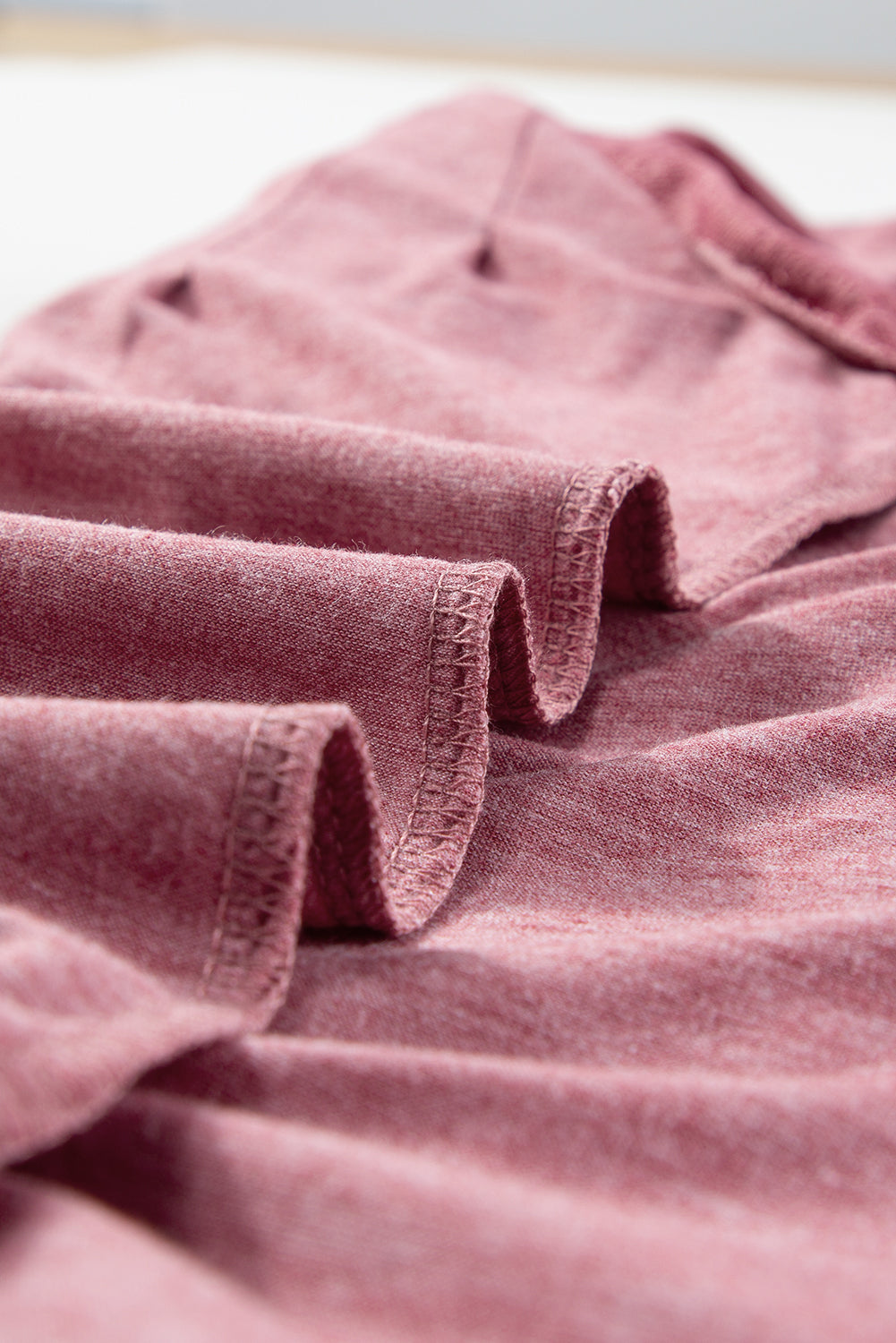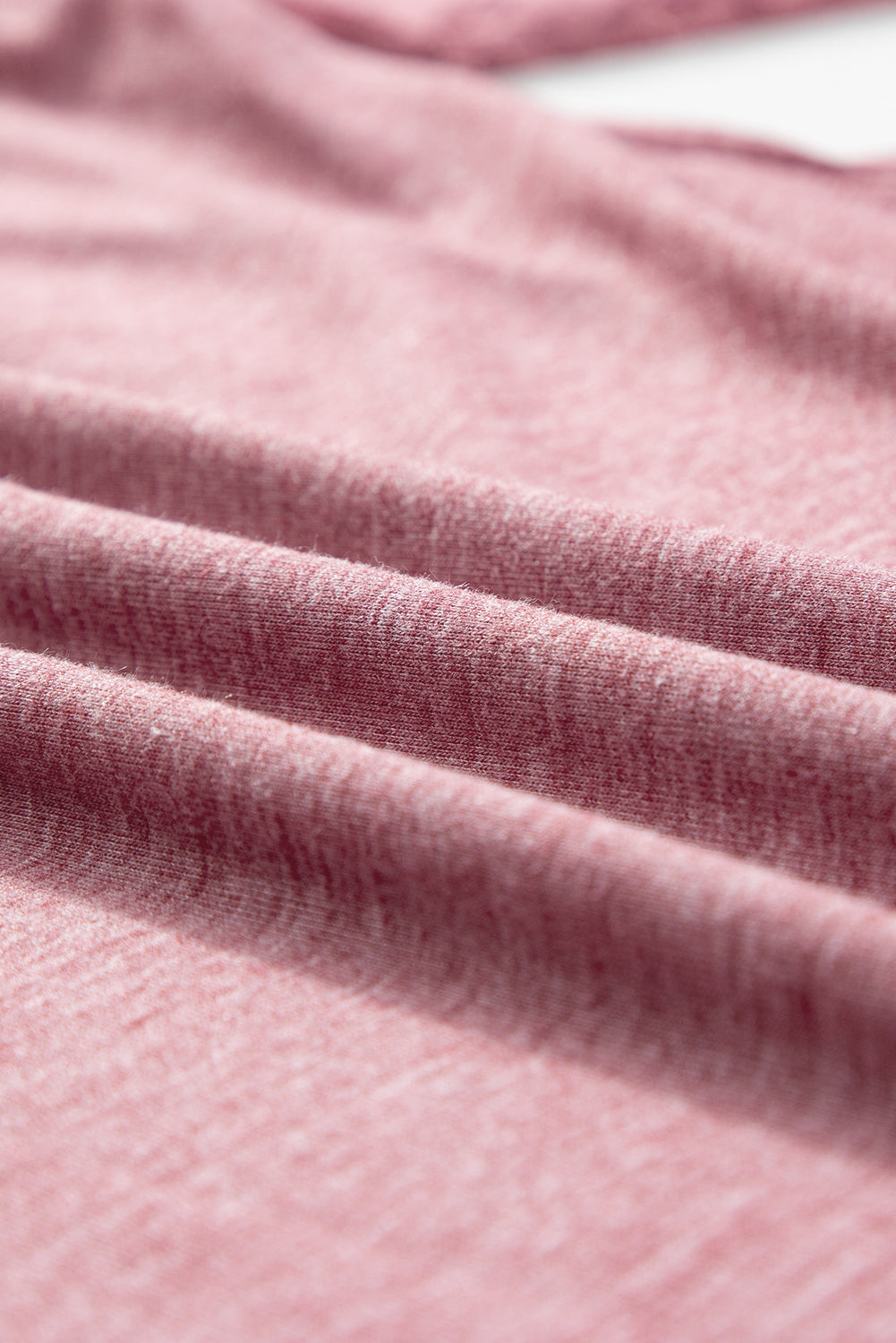 Rose Pink Contrast Lace Raglan Sleeve Plicate Round Neck Top