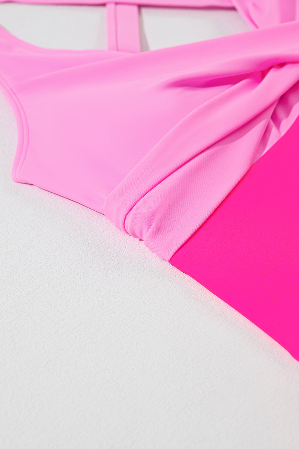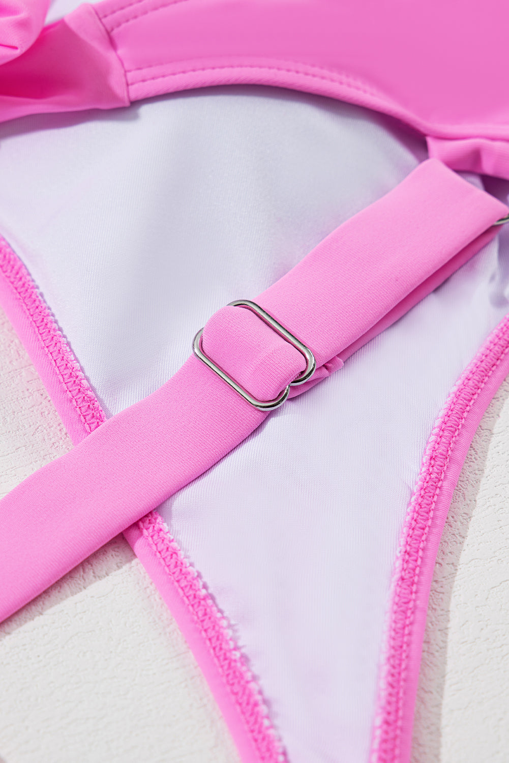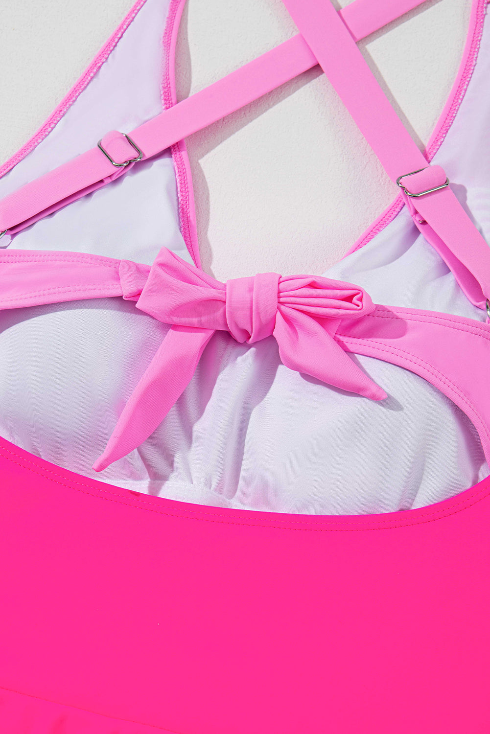 Rose Red Crisscross Straps Tie Back Flared One Piece Swimsuit