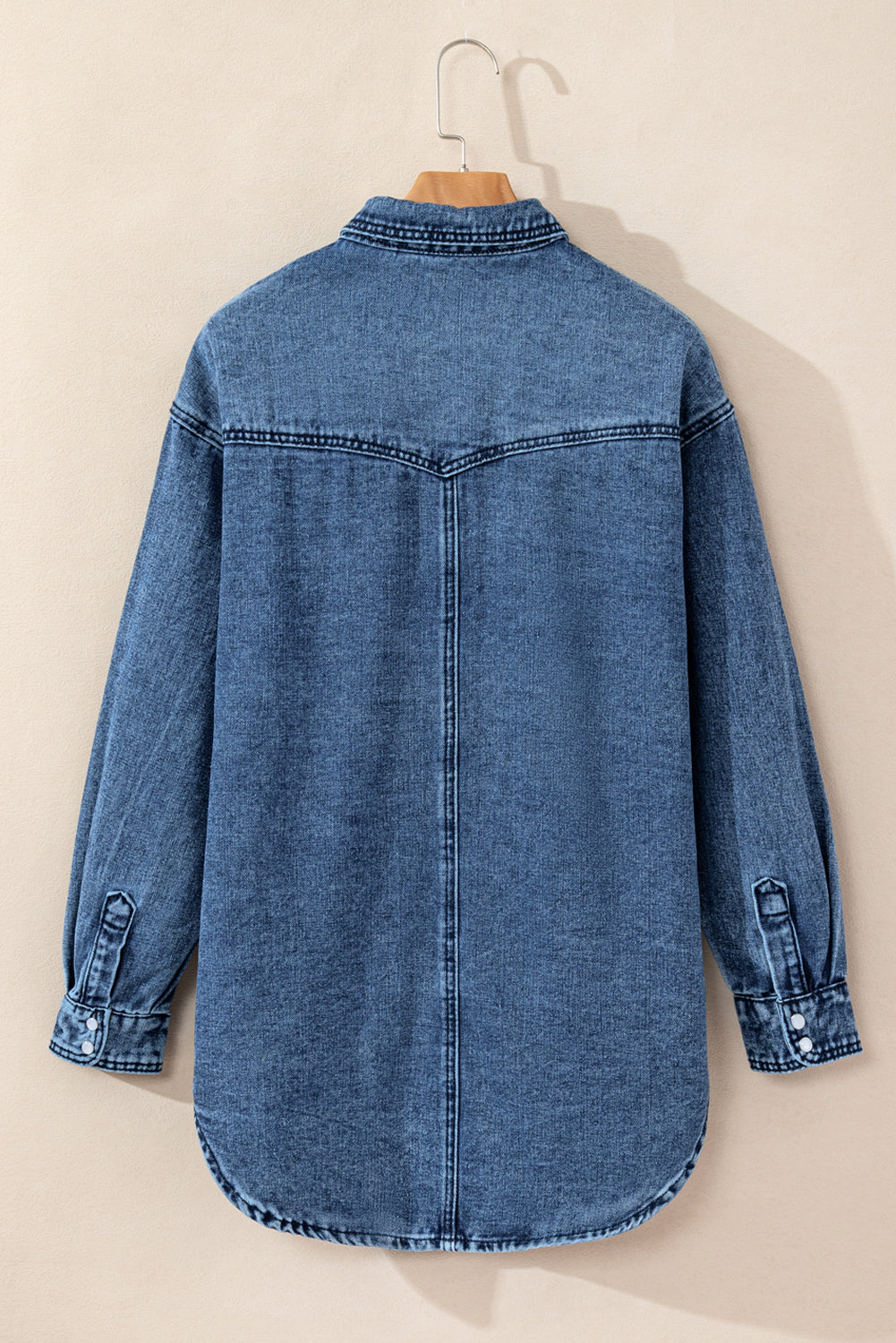 Sail Blue Flap Pocket Snap Button Wash Denim Shacket
