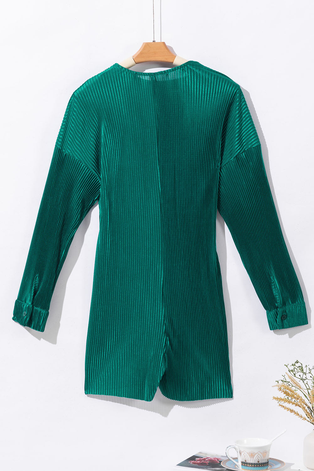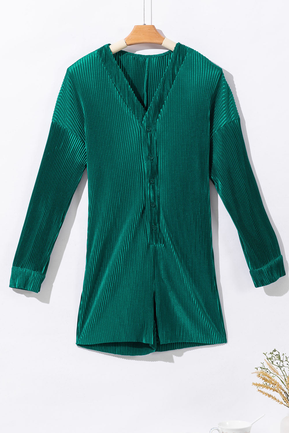 Sea Green Ribbed Long Sleeve Button Front Romper