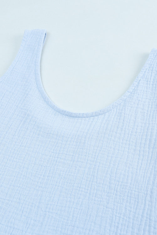 Sky Blue Textured U Neck Tank Top and High Waist Shorts Set