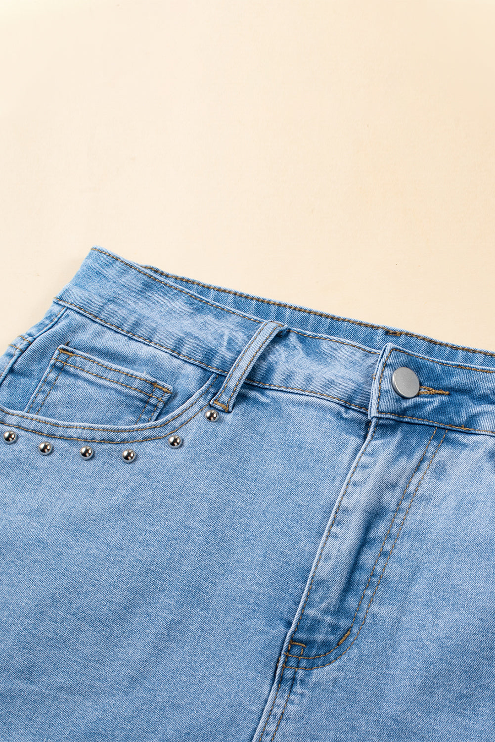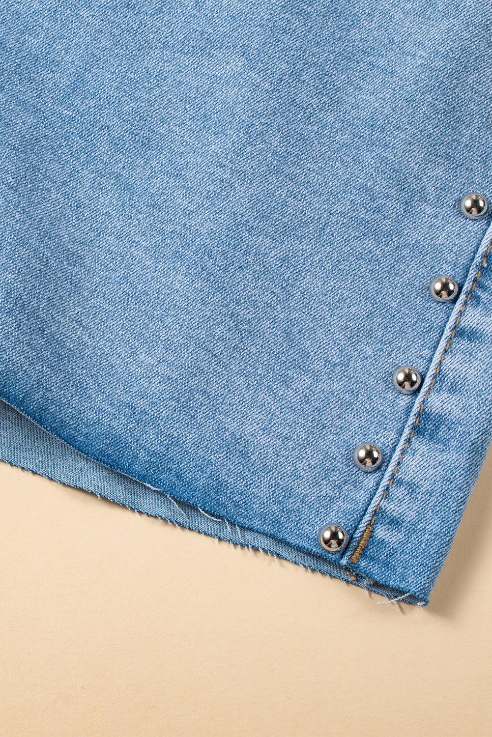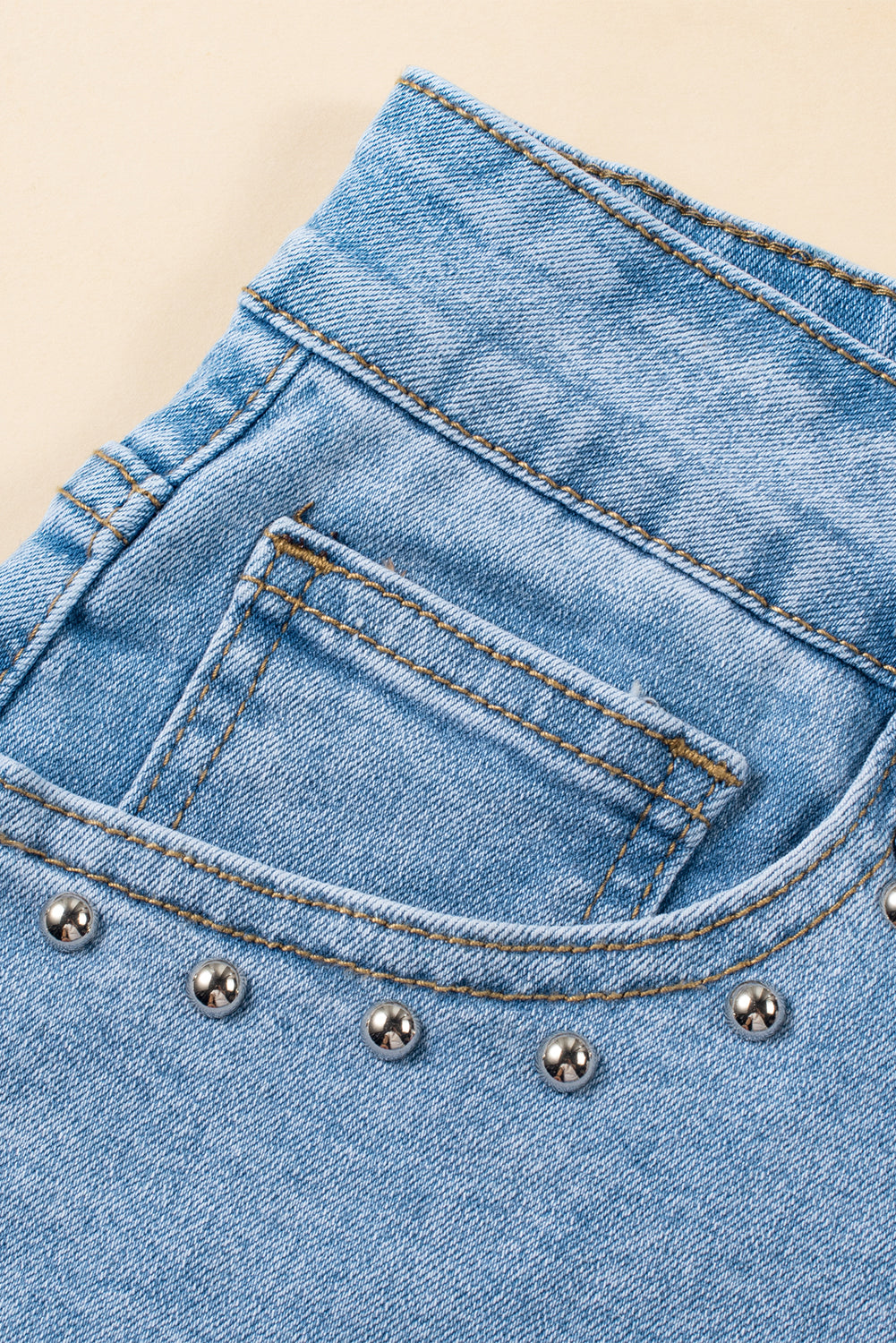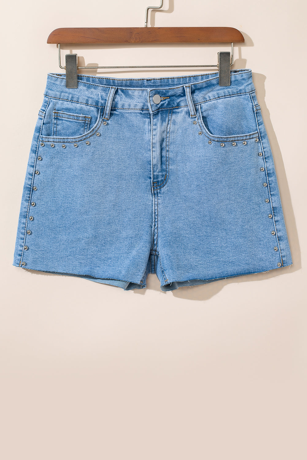 Sky Blue Stud Embellished High Waist Denim Shorts