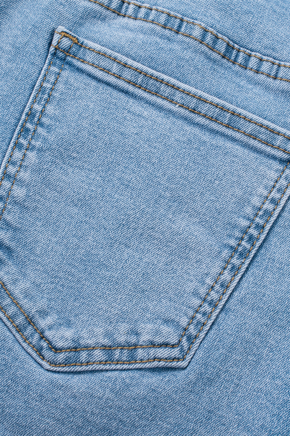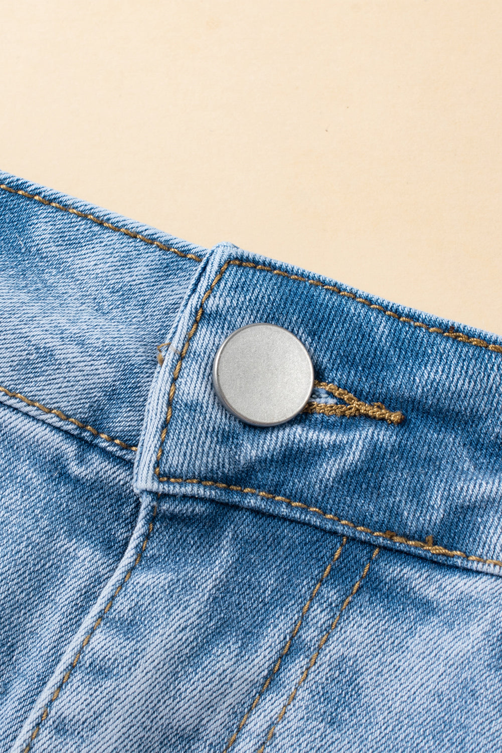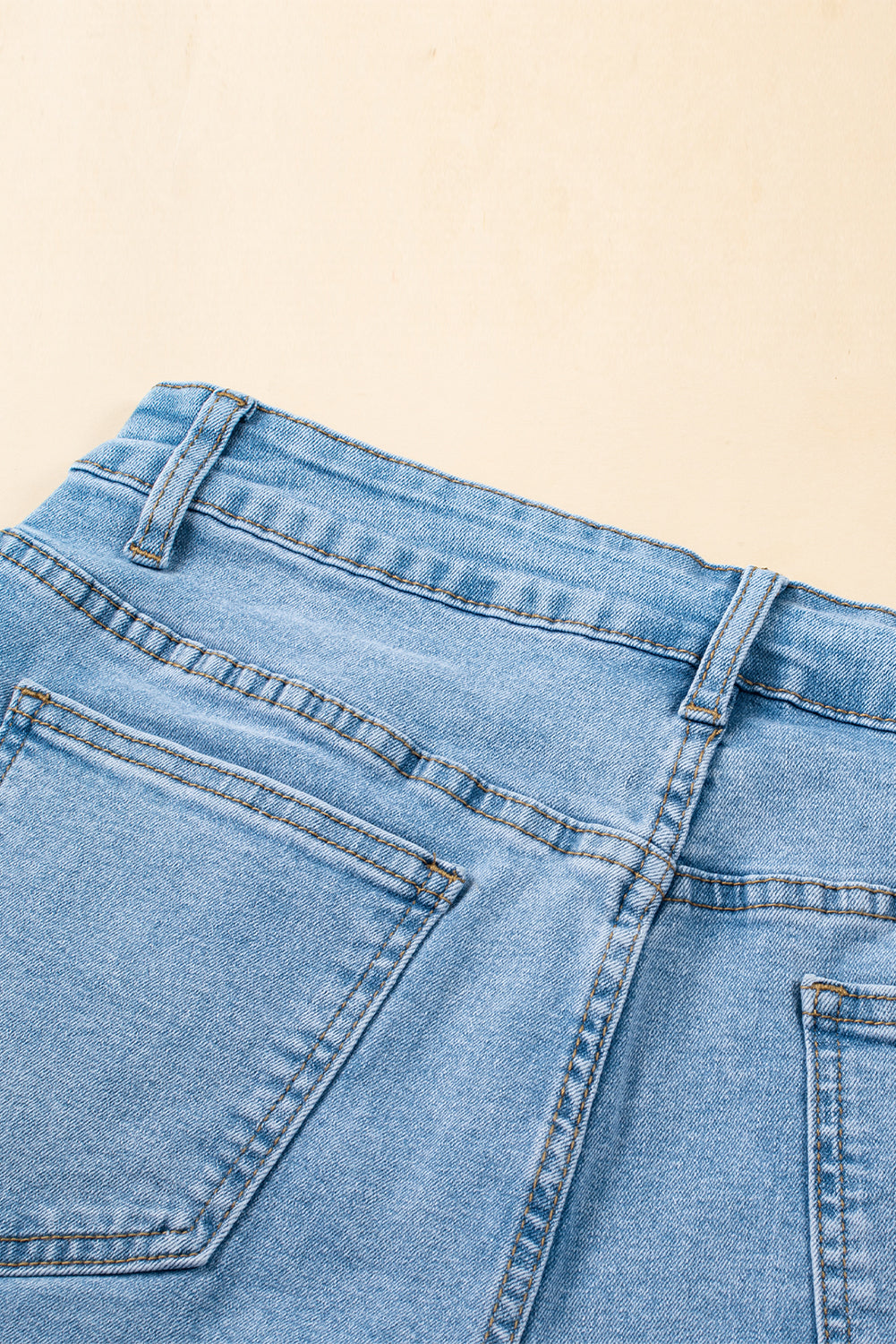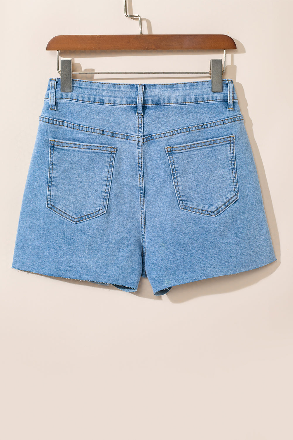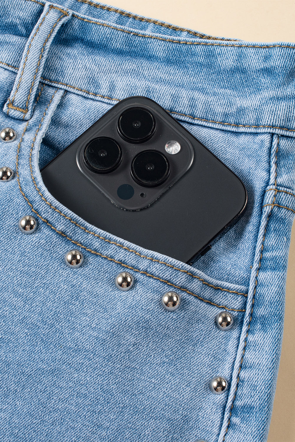 Sky Blue Stud Embellished High Waist Denim Shorts