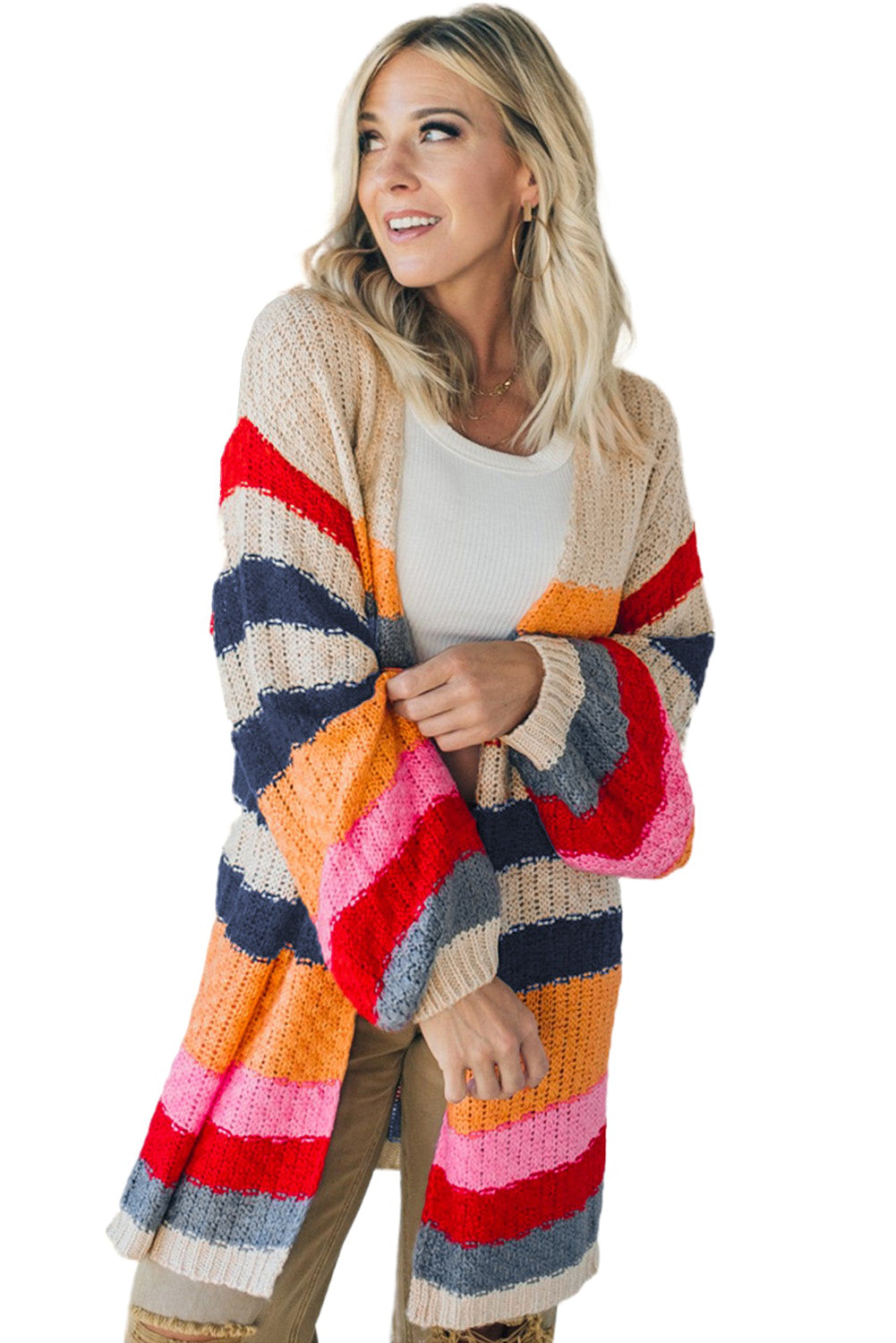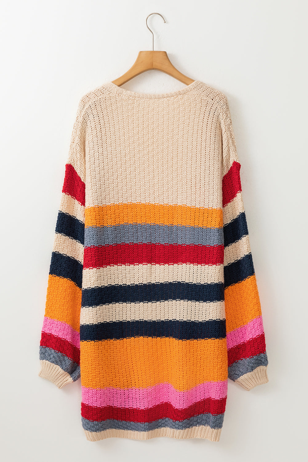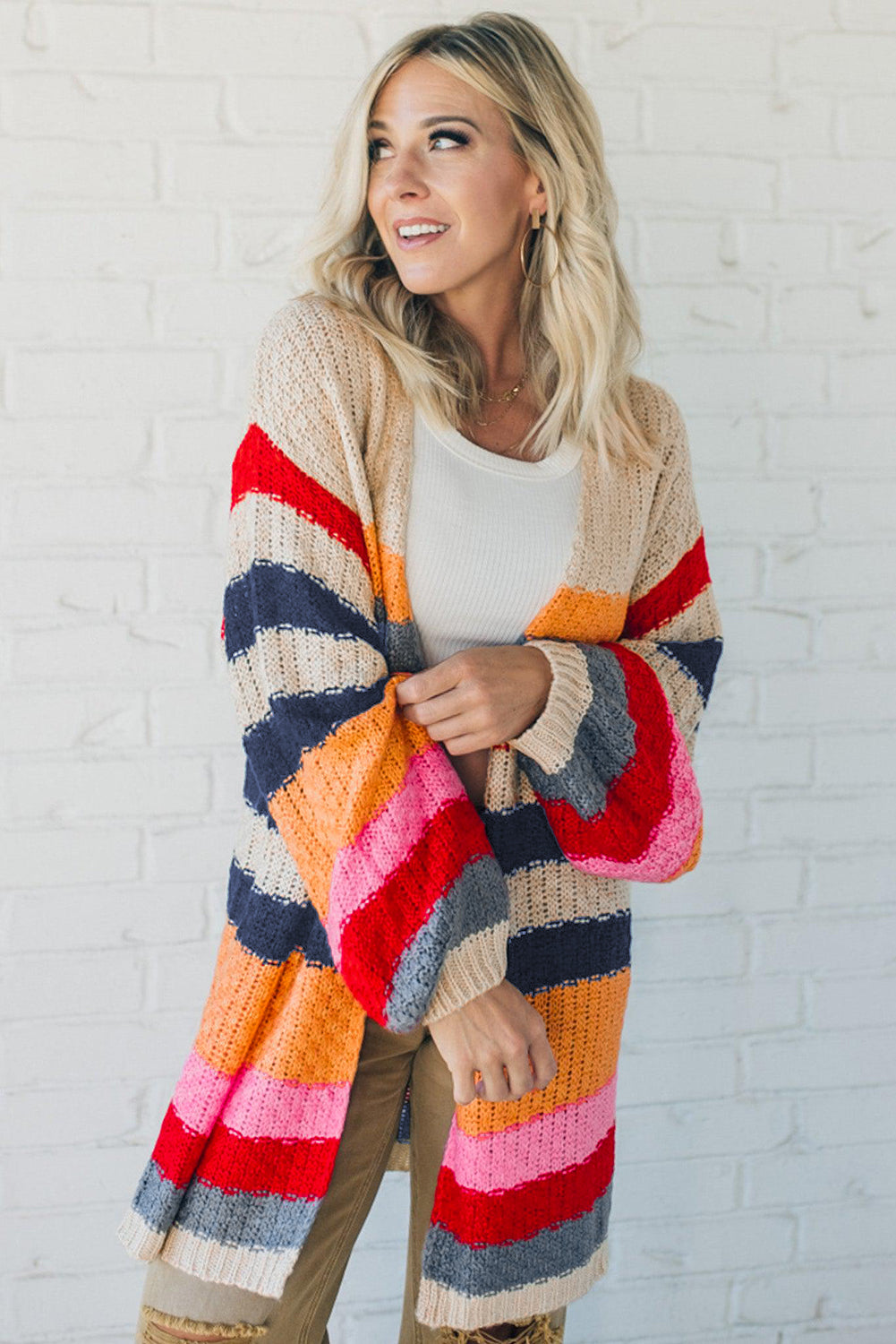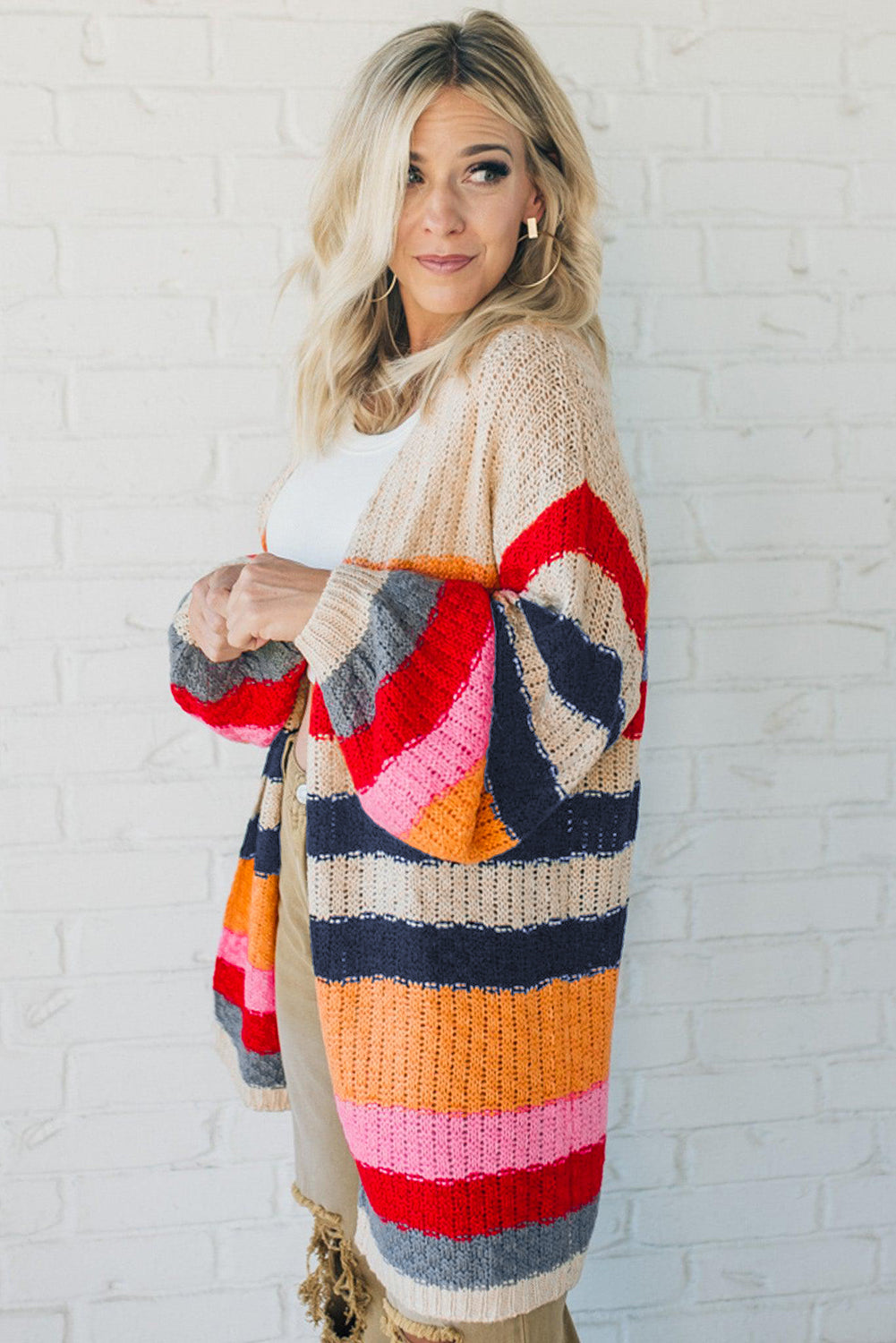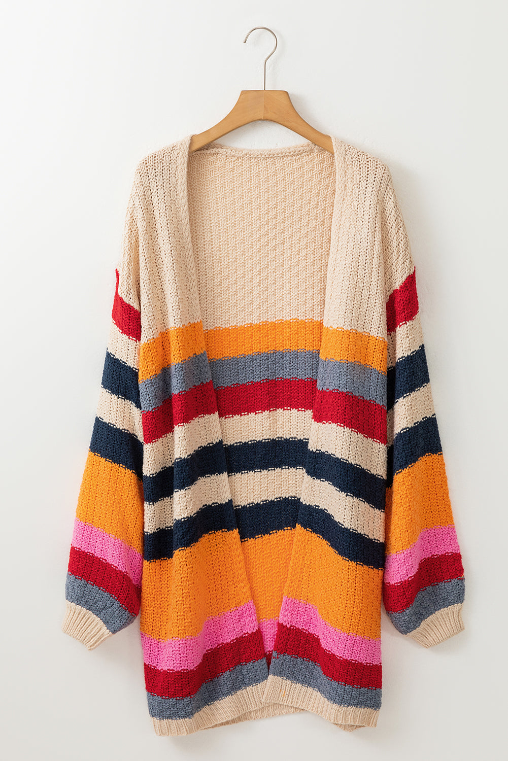 Stripes Knitted Balloon Sleeve Open Cardigan