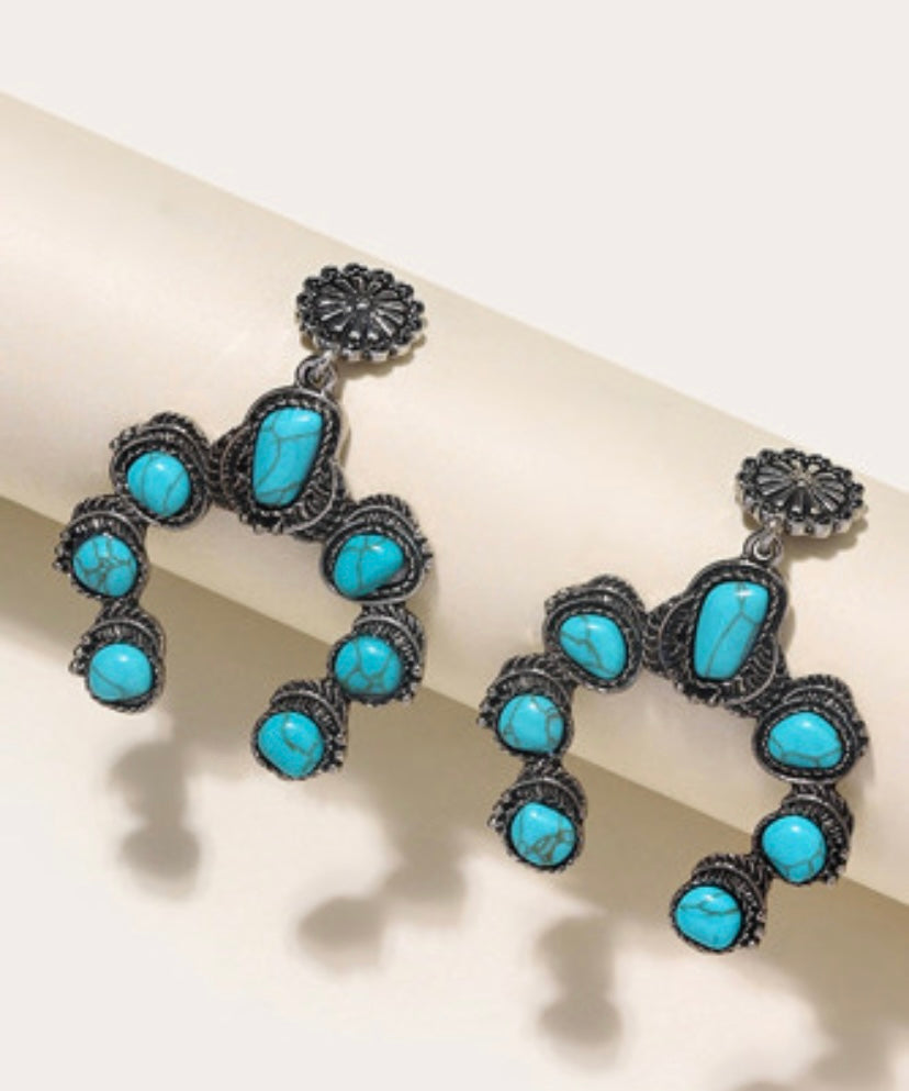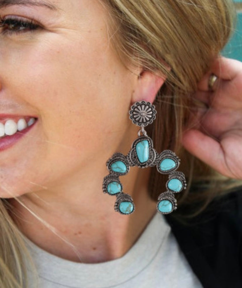 The perfect Texas style green turquoise luck pumpkin blossoms stud earrings. Perfectly paired with our lucky sequent bellbottoms!