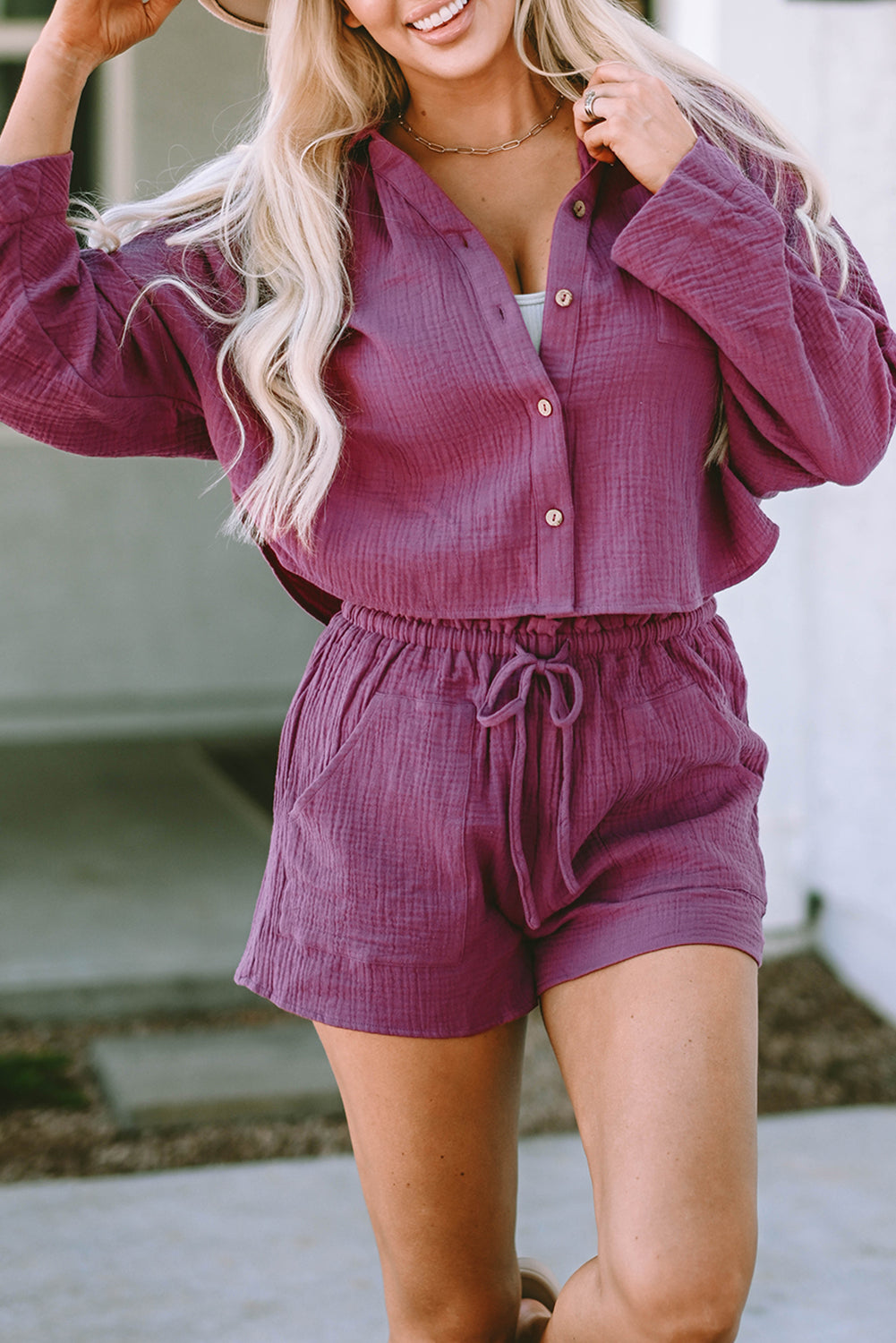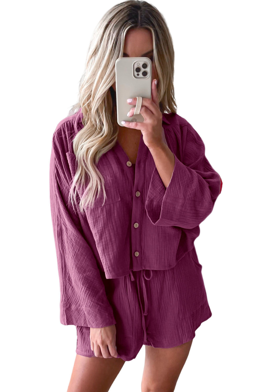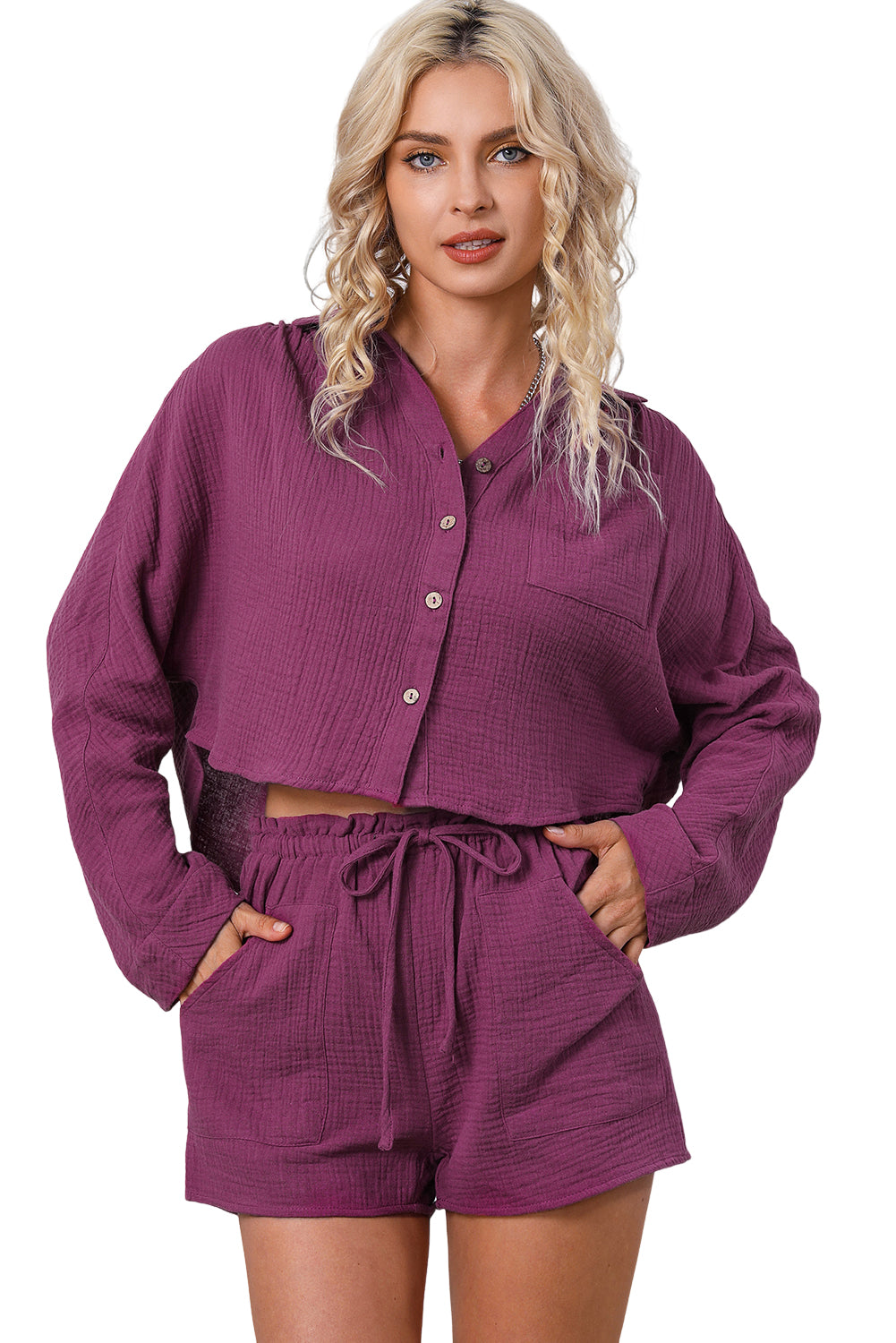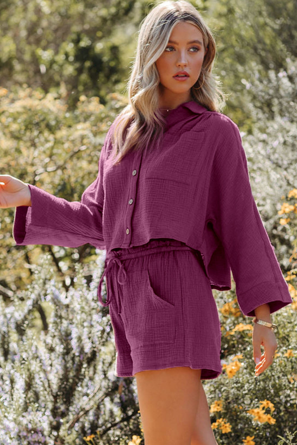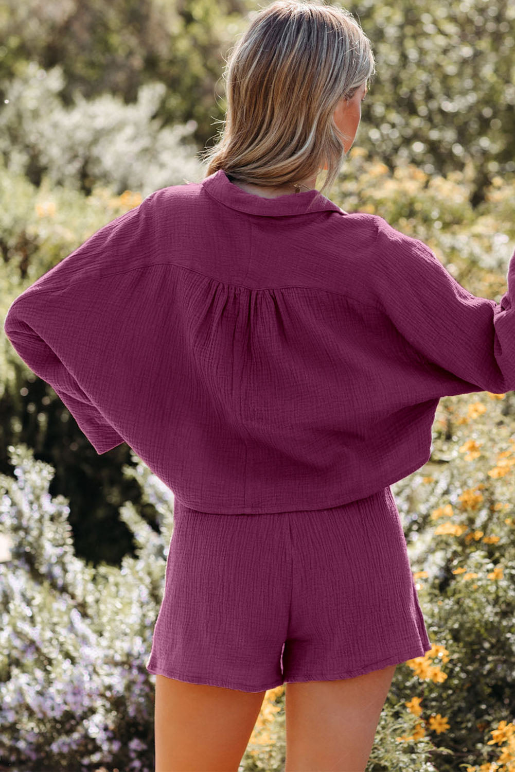 Textured Dolman Sleeve Cropped Shirt and Shorts Set