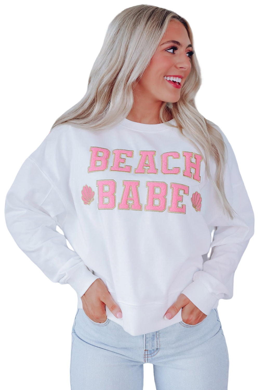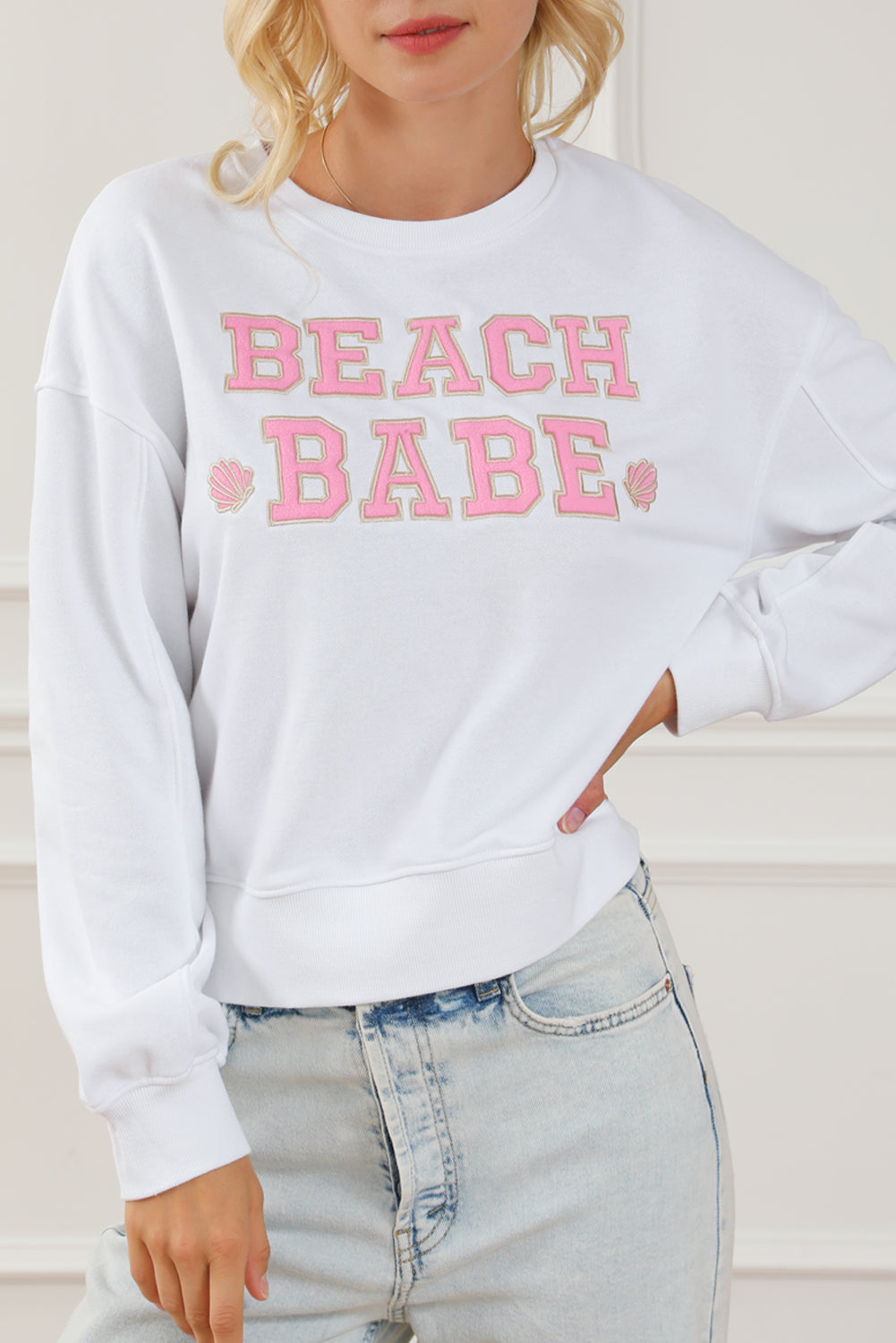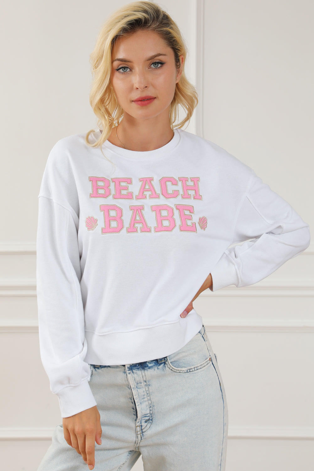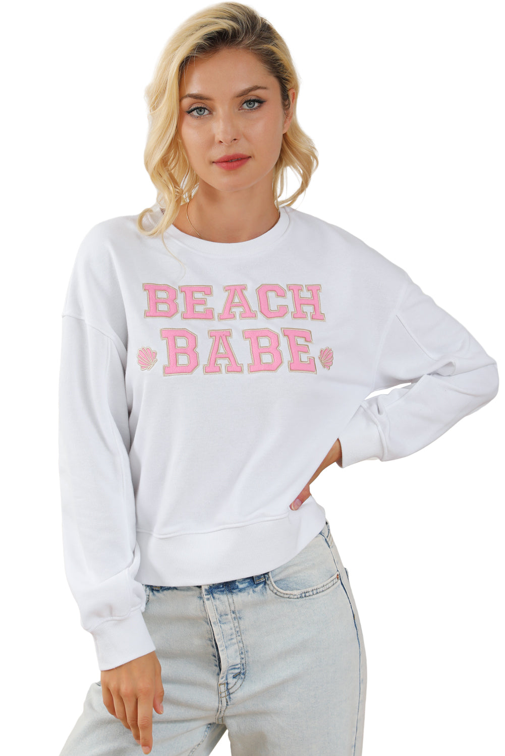 White BEACH BABE Slogan Graphic Casual Sweatshirt