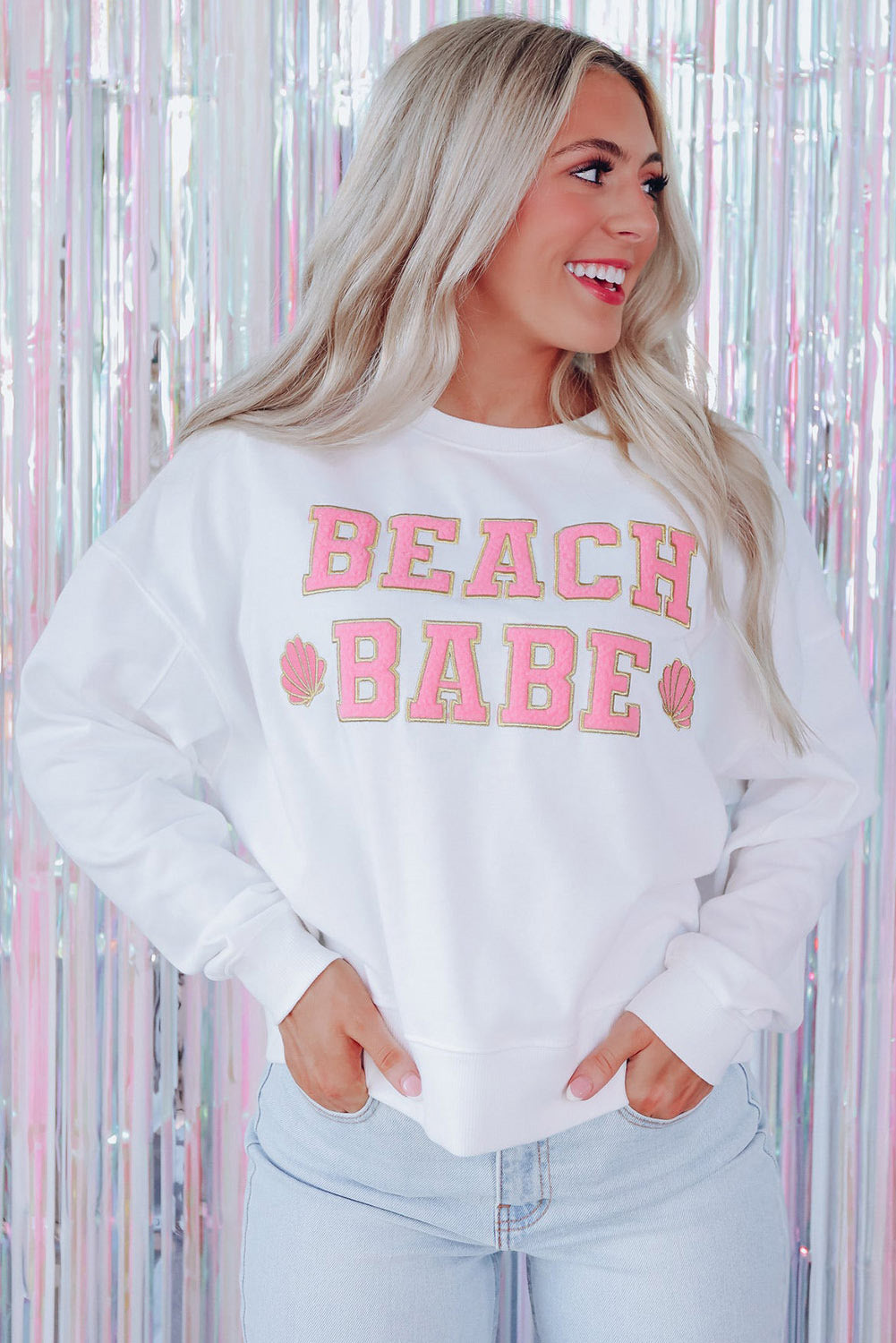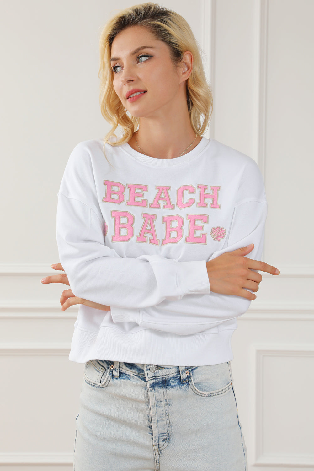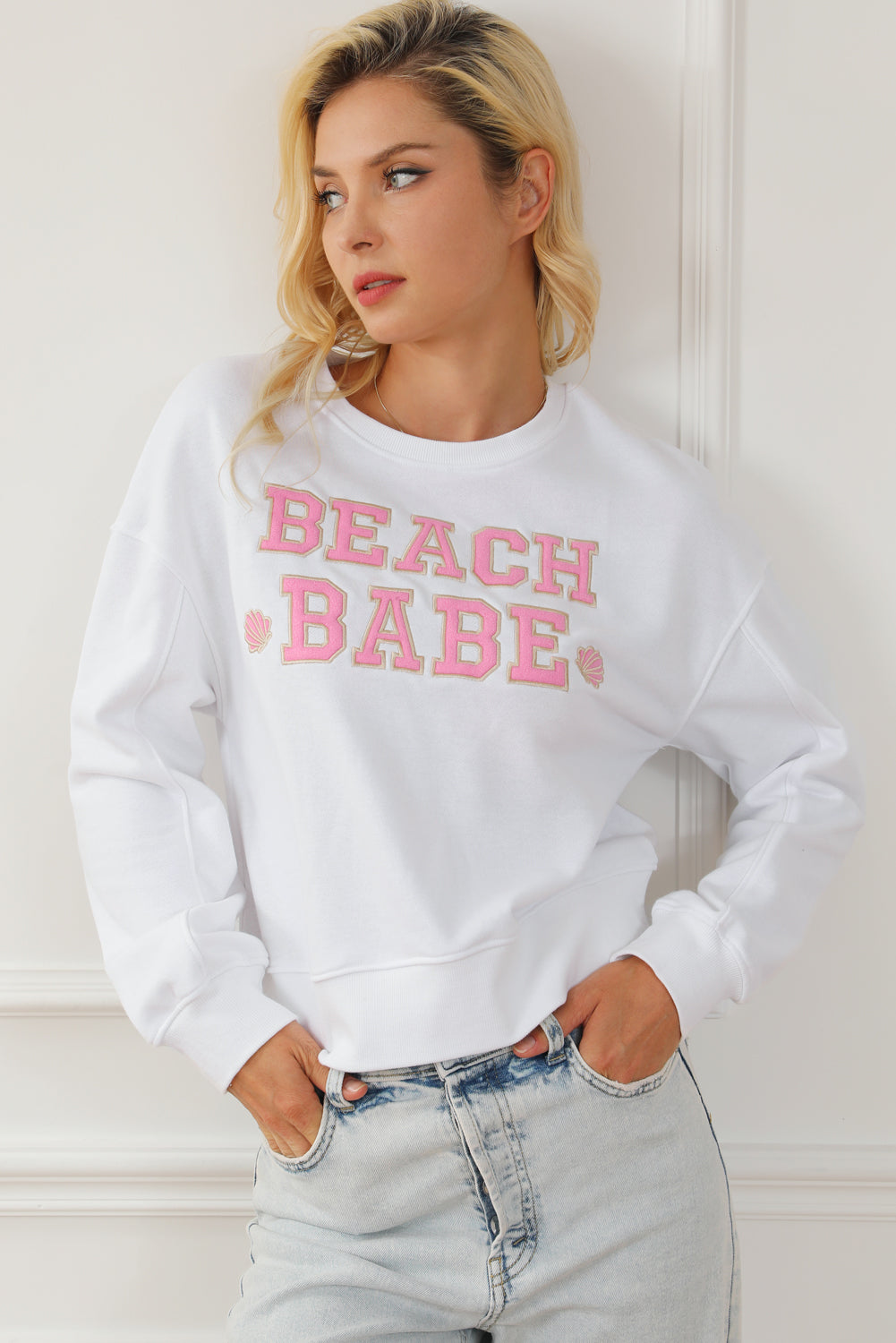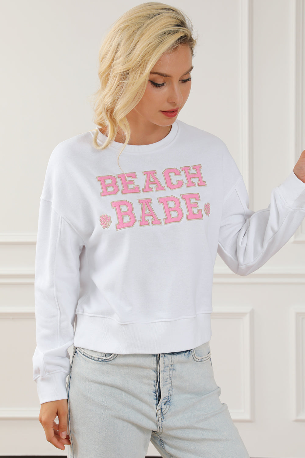 White BEACH BABE Slogan Graphic Casual Sweatshirt