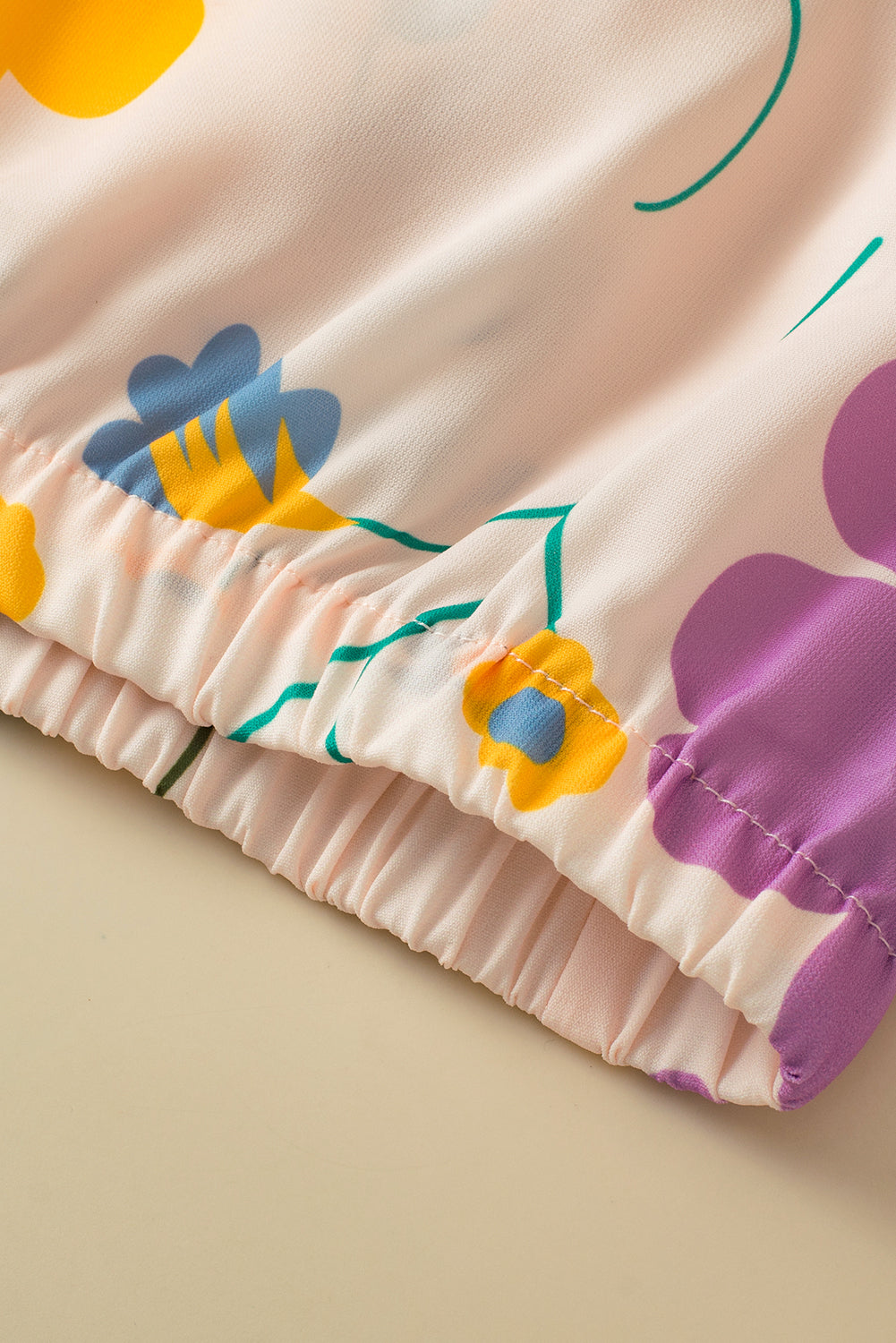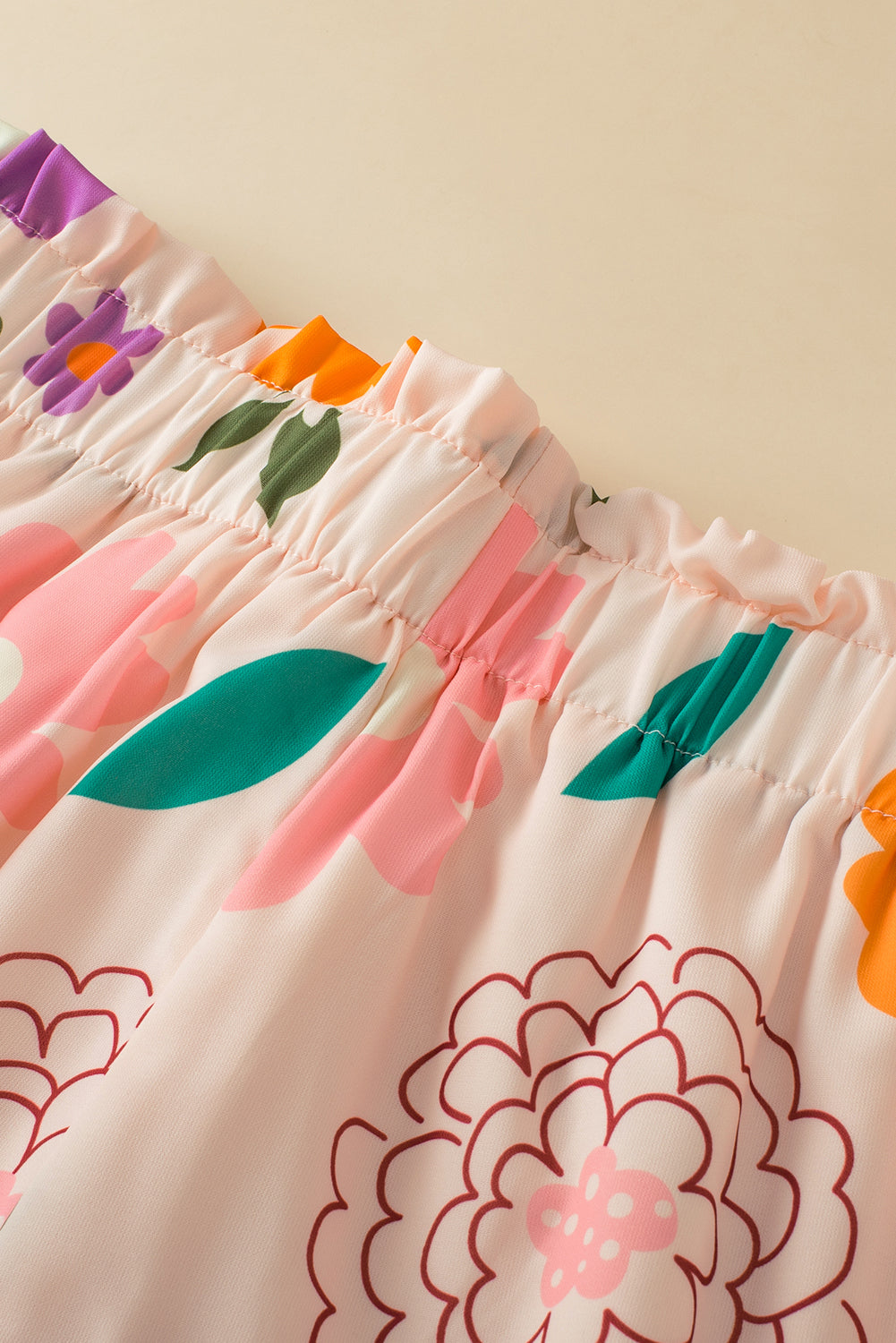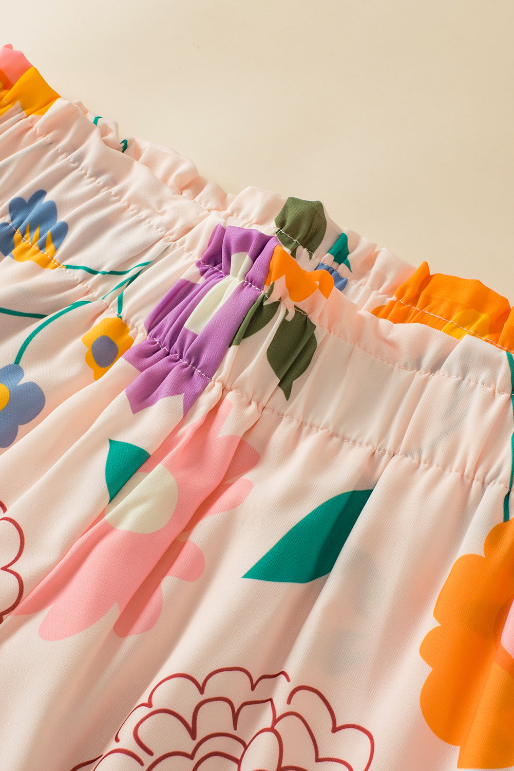 White Floral Cropped Tank and Frilly High Waist Shorts