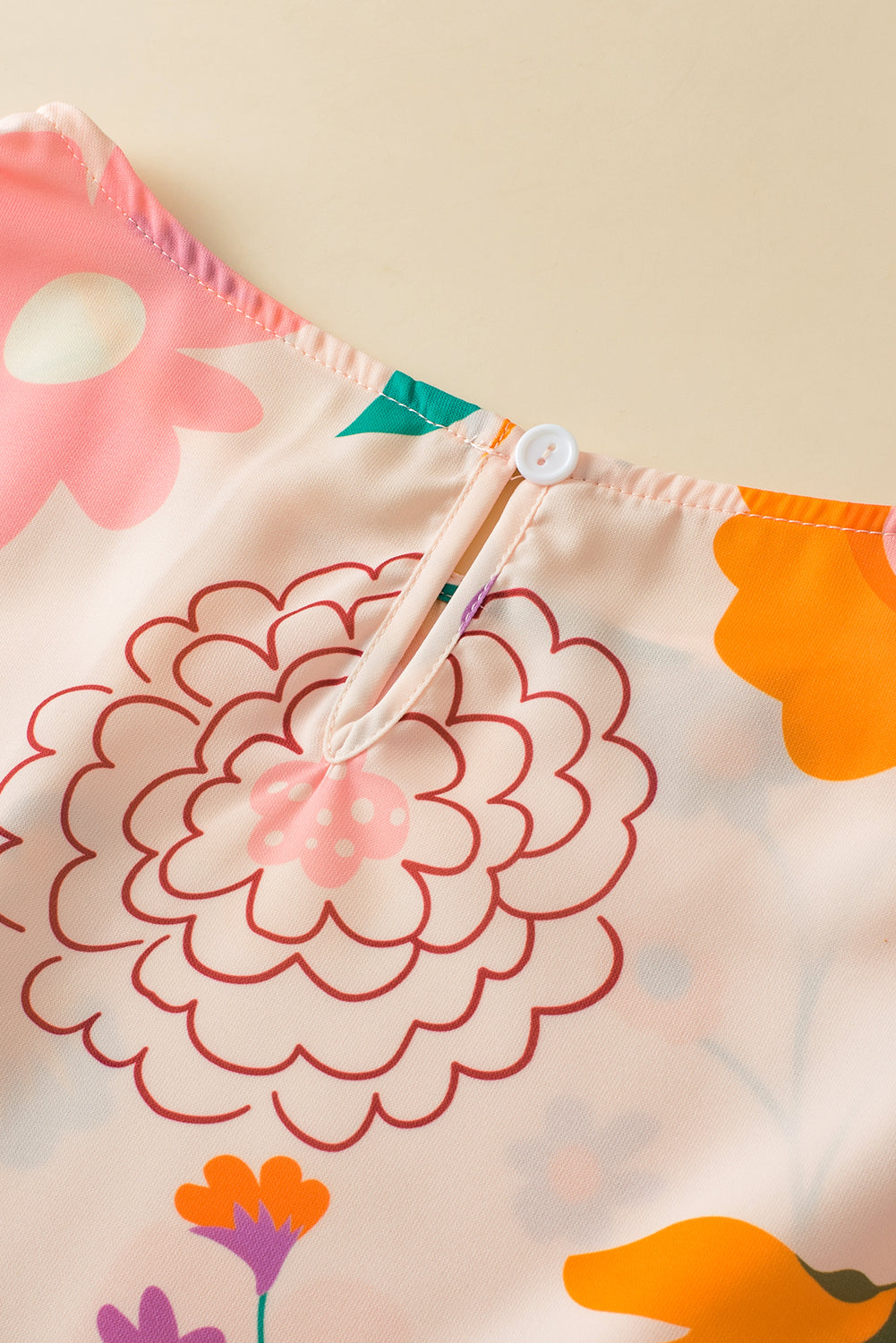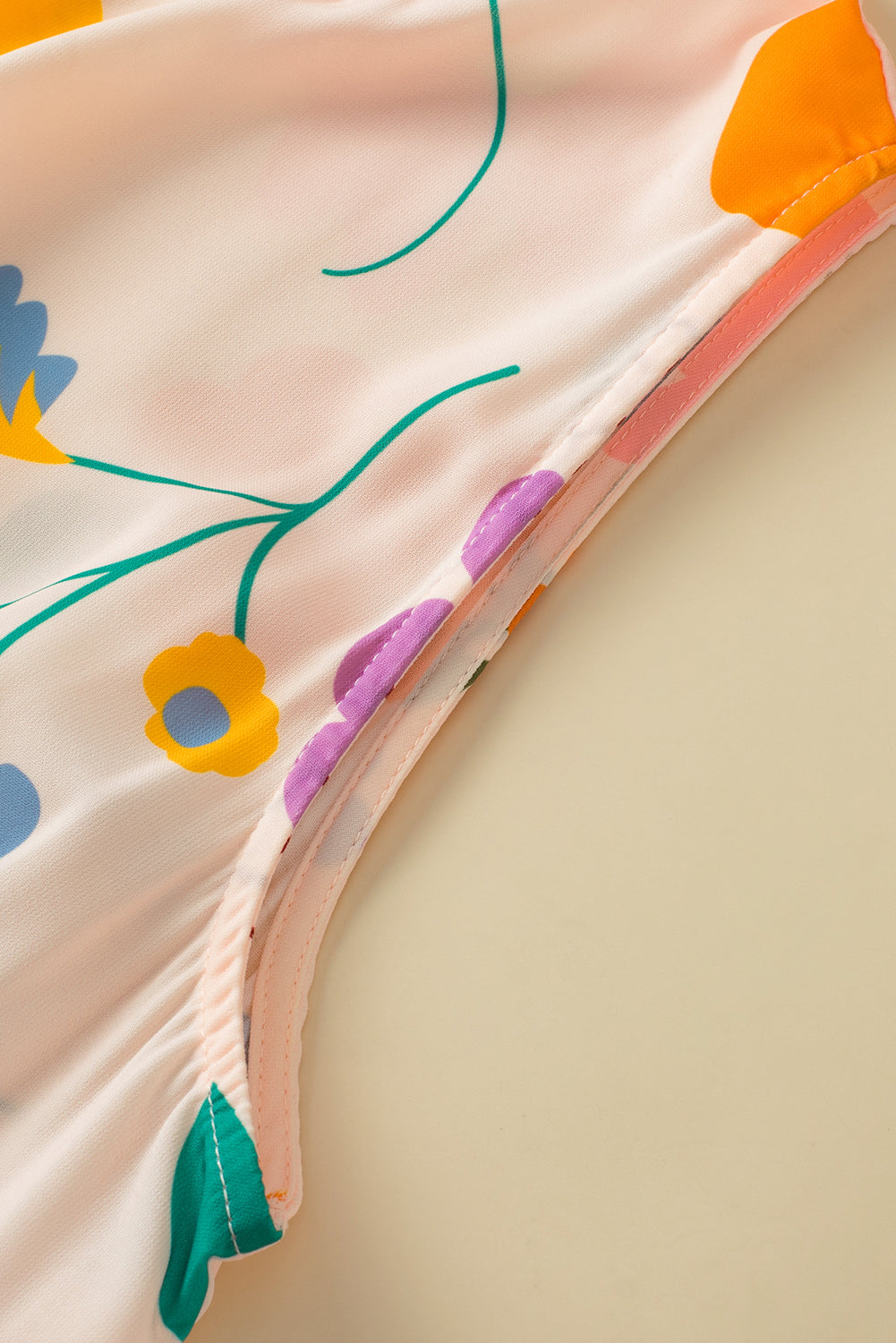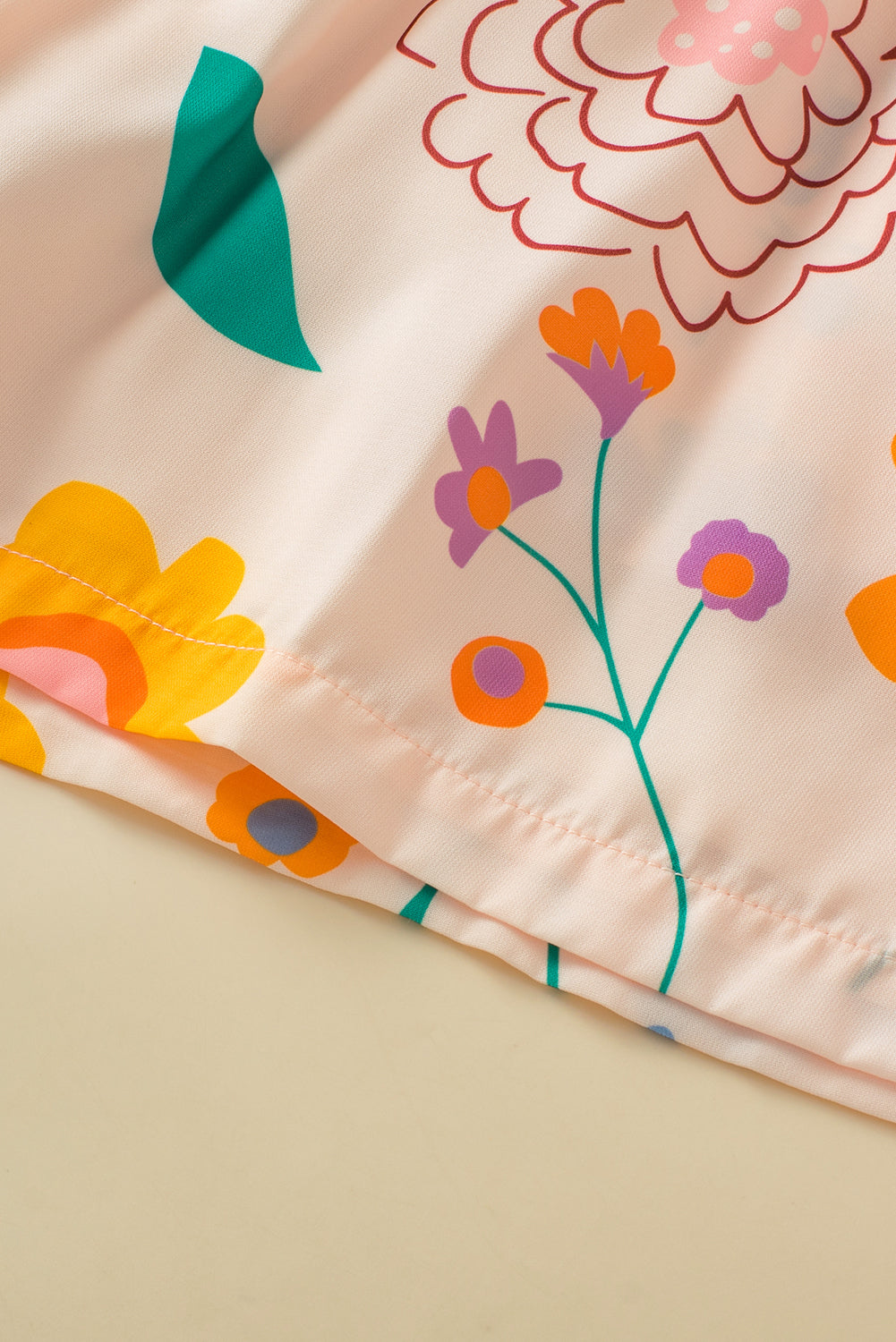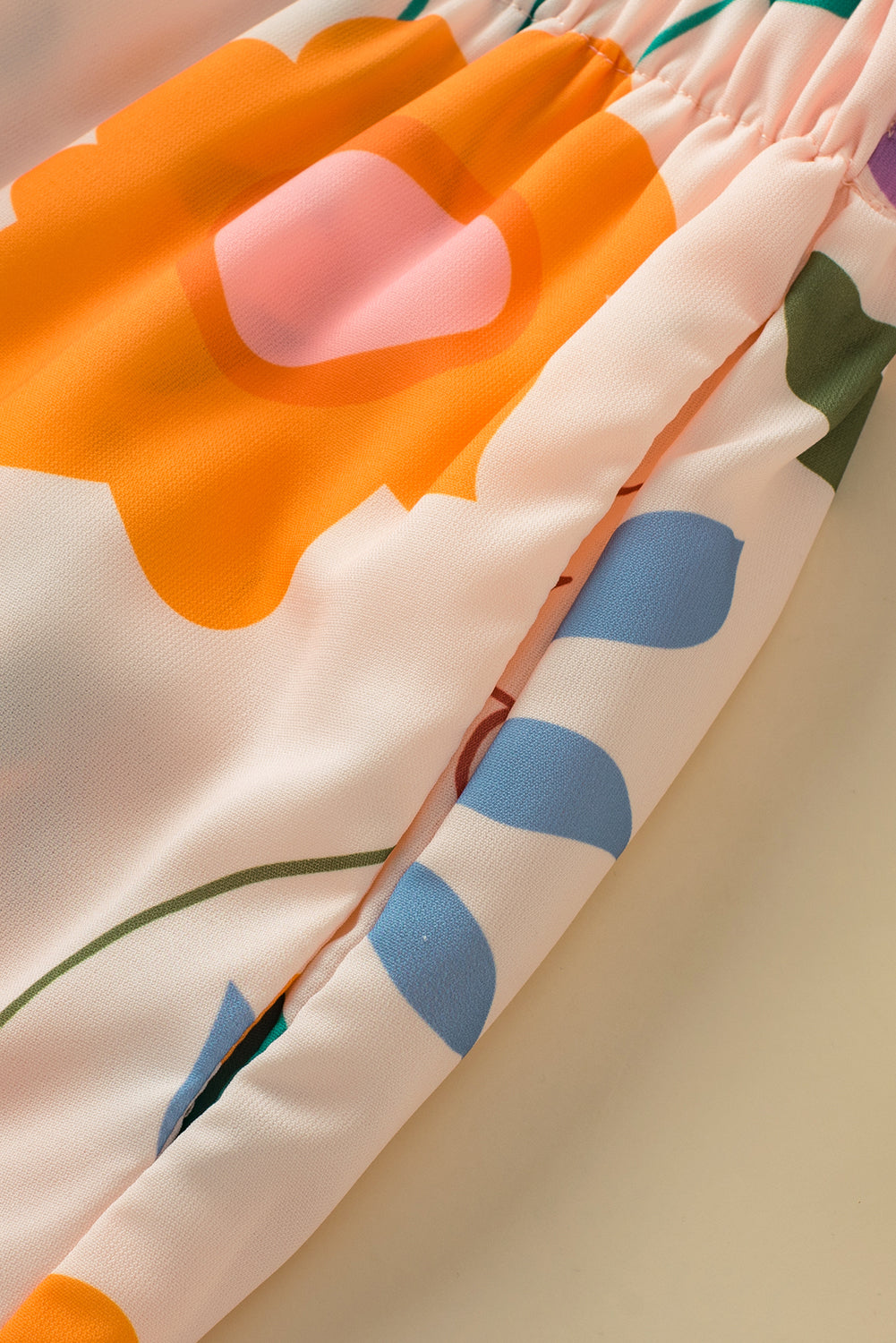 White Floral Cropped Tank and Frilly High Waist Shorts