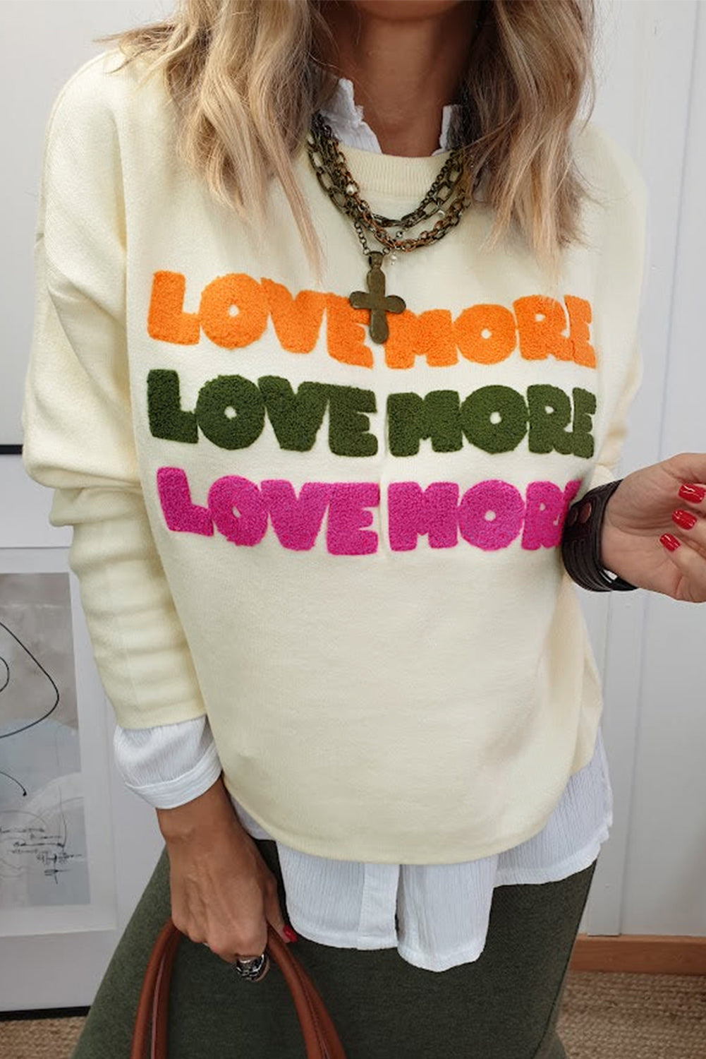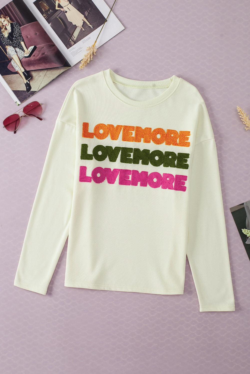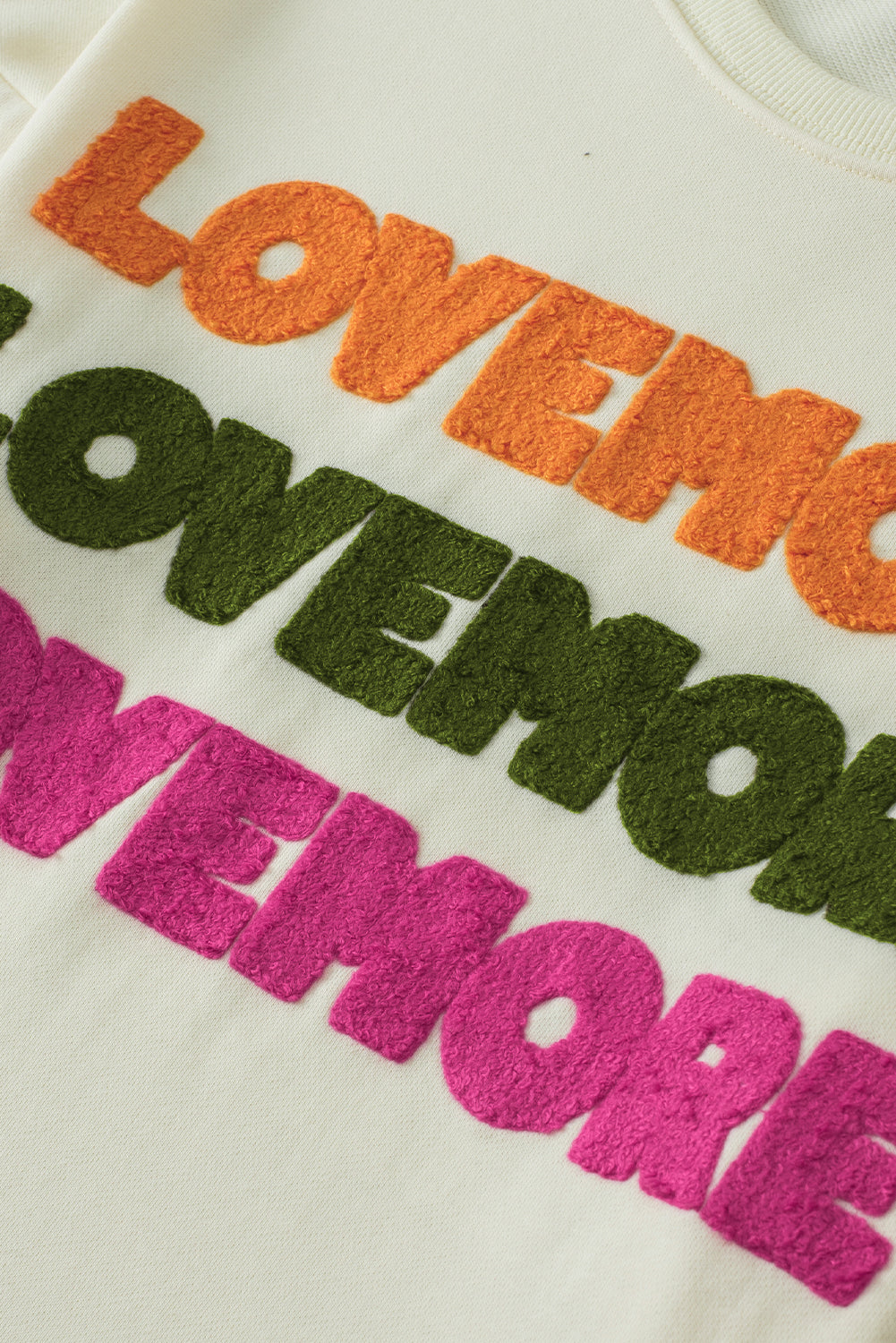 White LOVE MORE Chenille Graphic Long Sleeve Sweatshirt