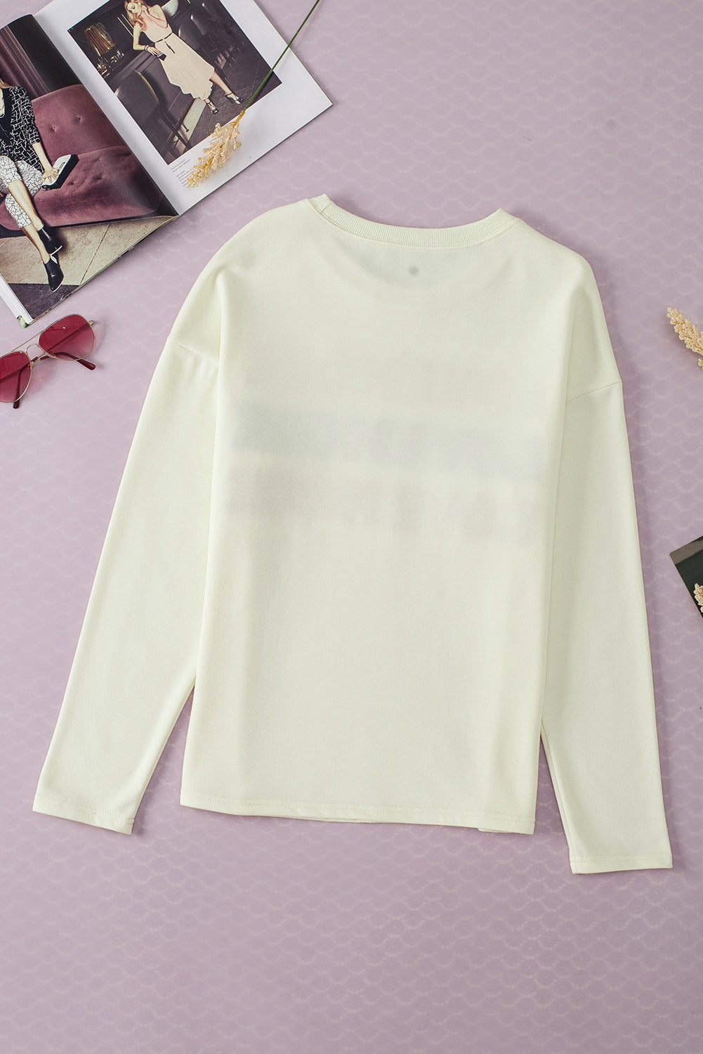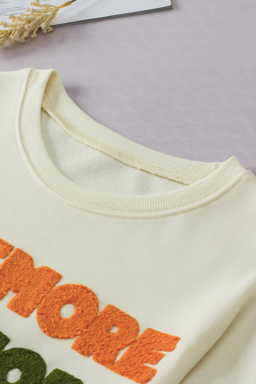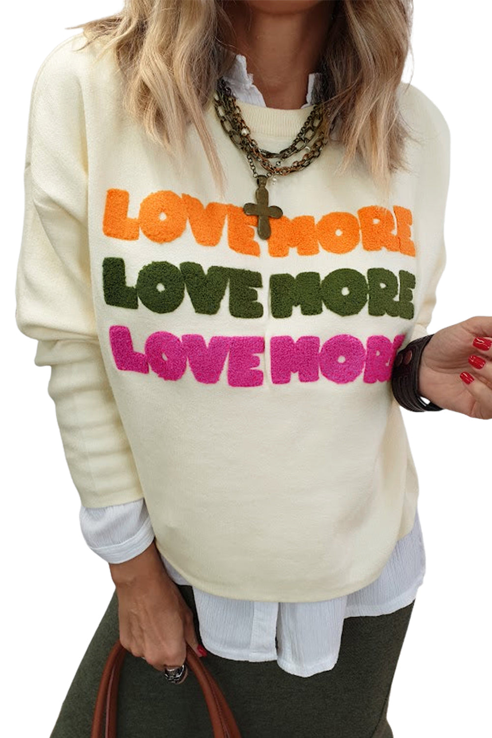 White LOVE MORE Chenille Graphic Long Sleeve Sweatshirt