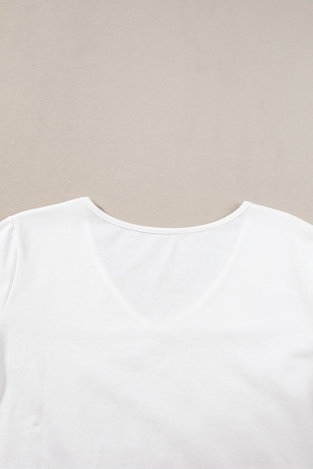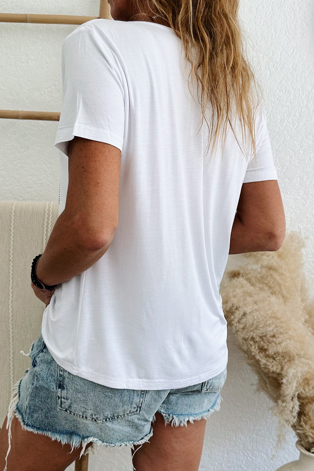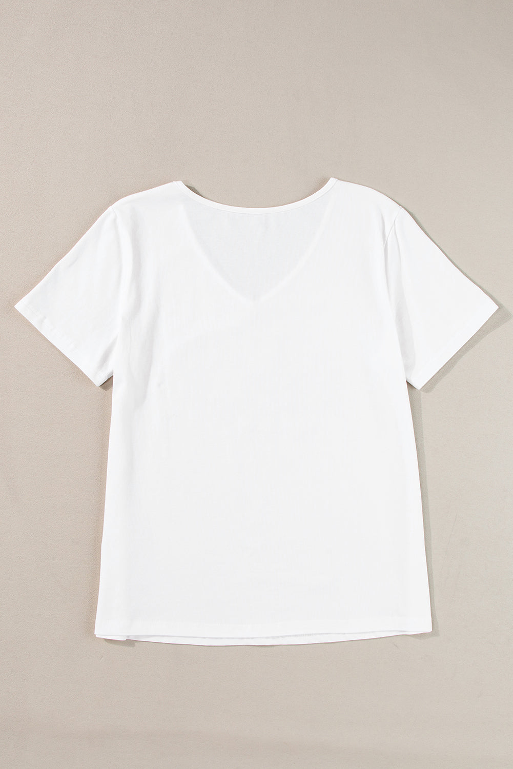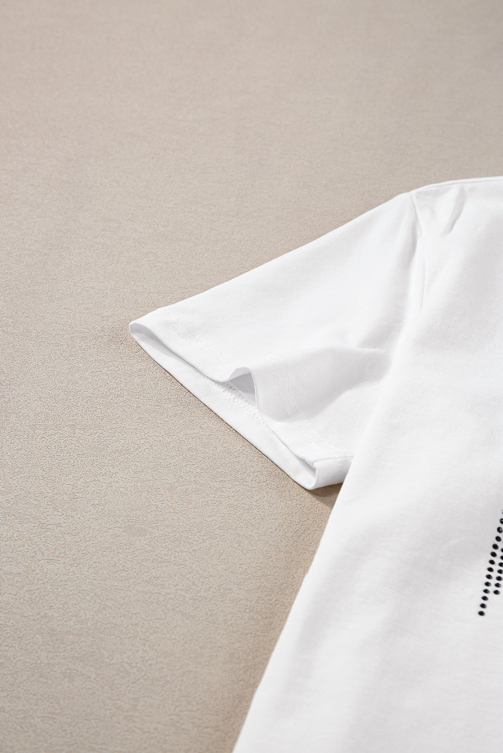 White Rhinestoned ROCK Star Graphic V Neck T Shirt