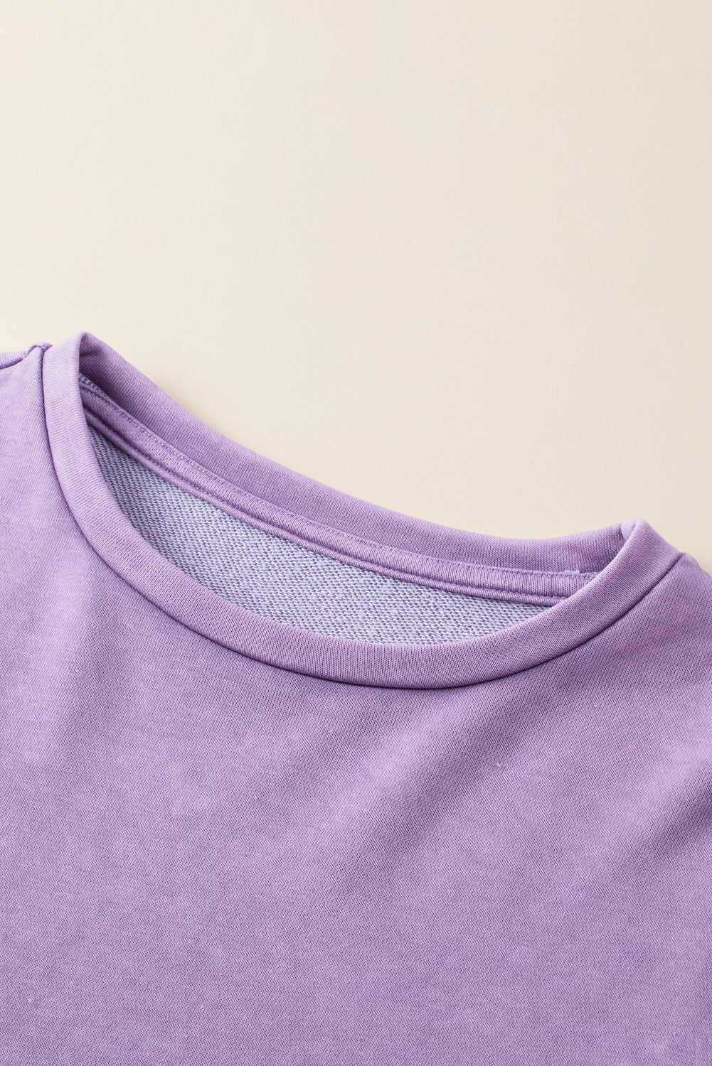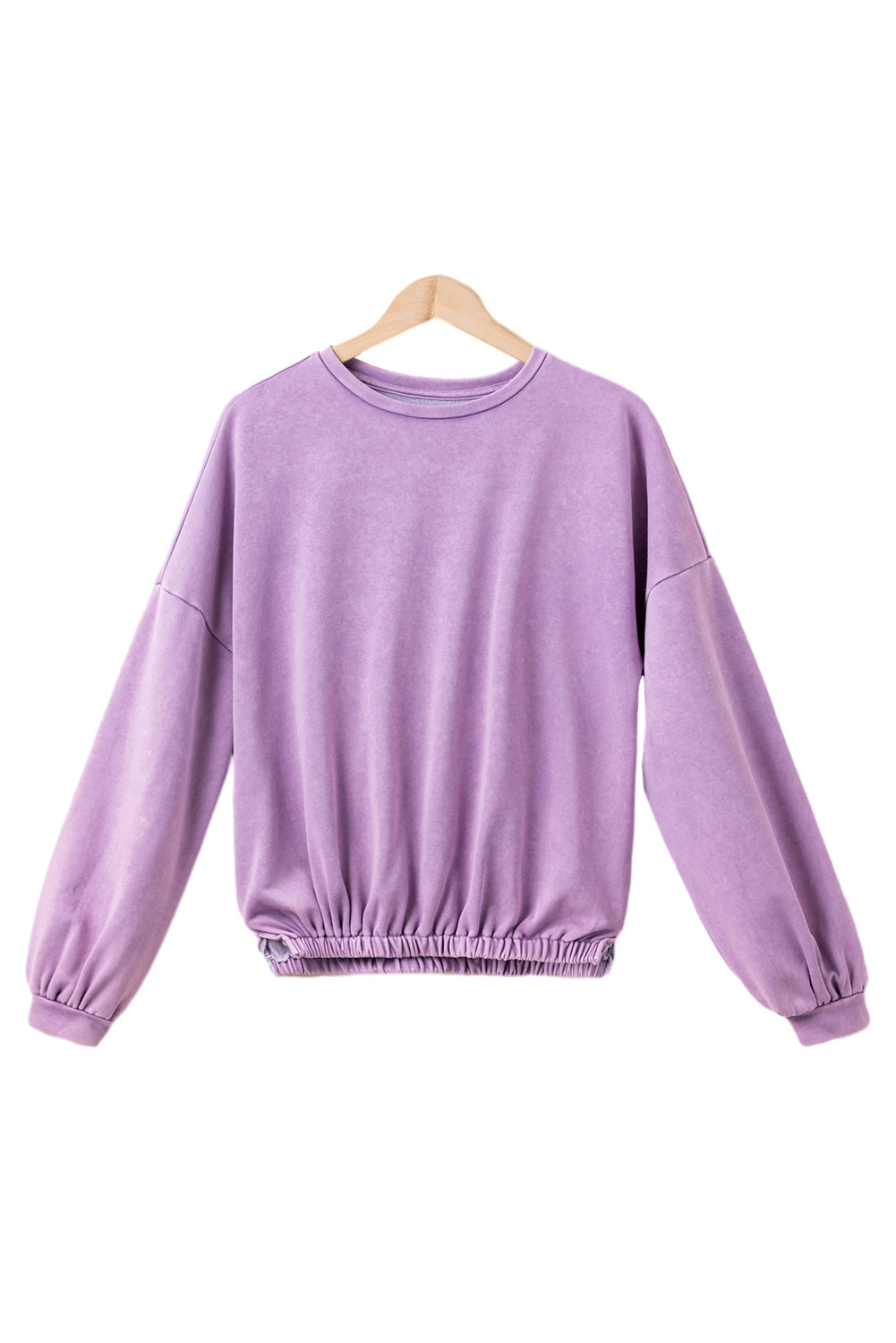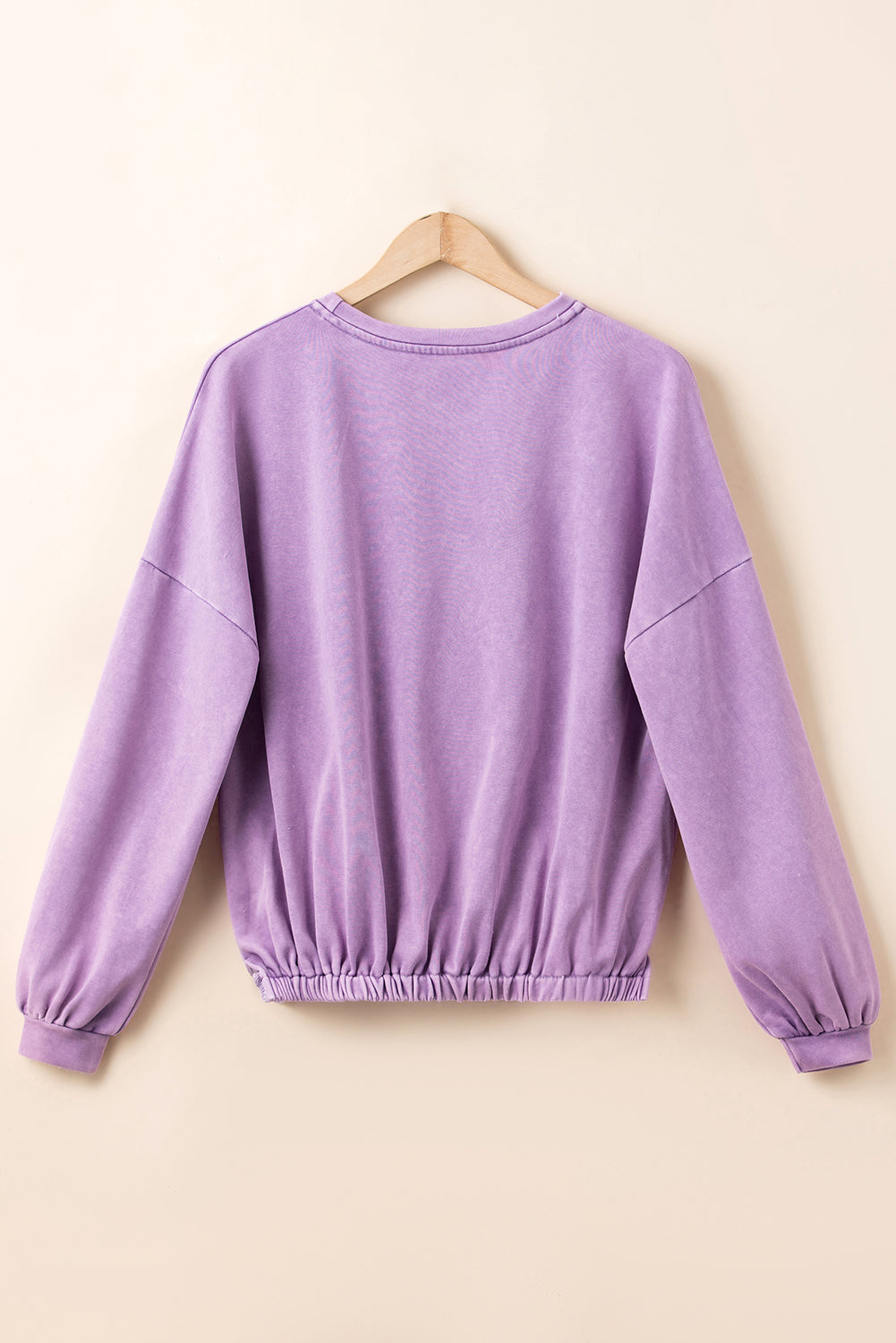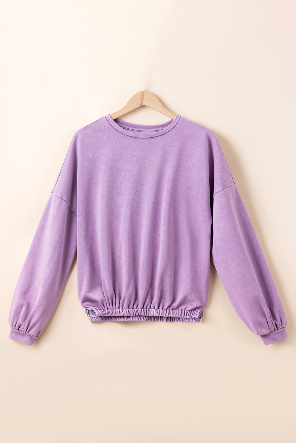 Wisteria Mineral Wash Drop Shoulder Casual Sweatshirt