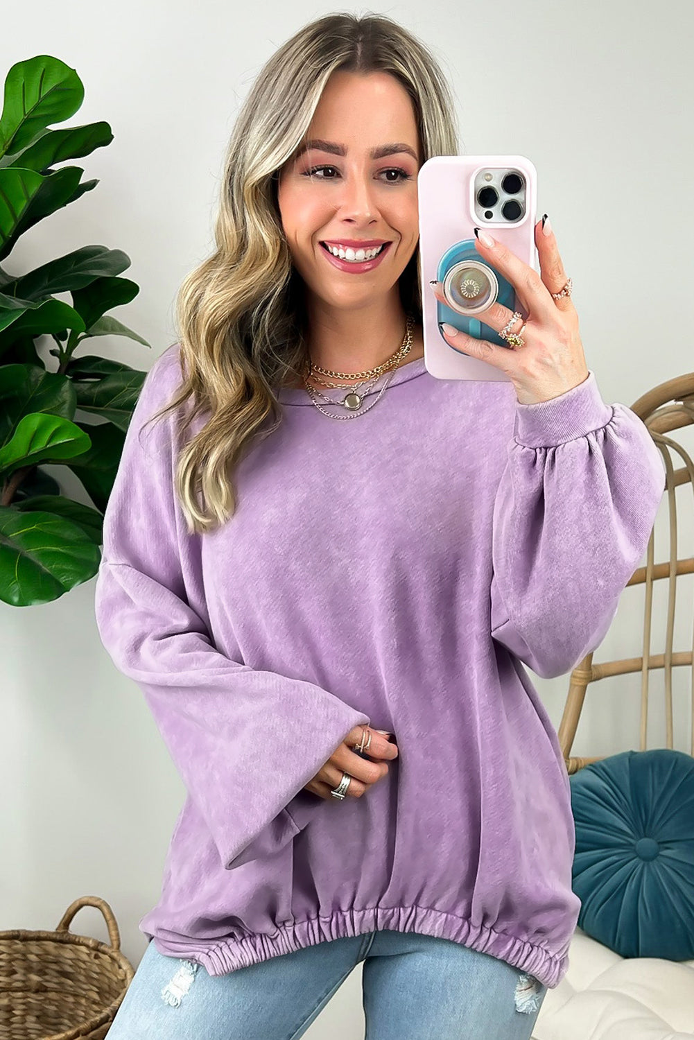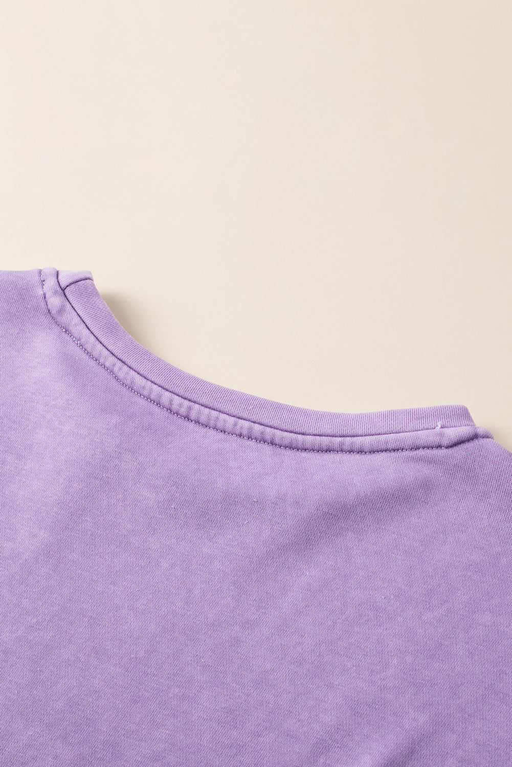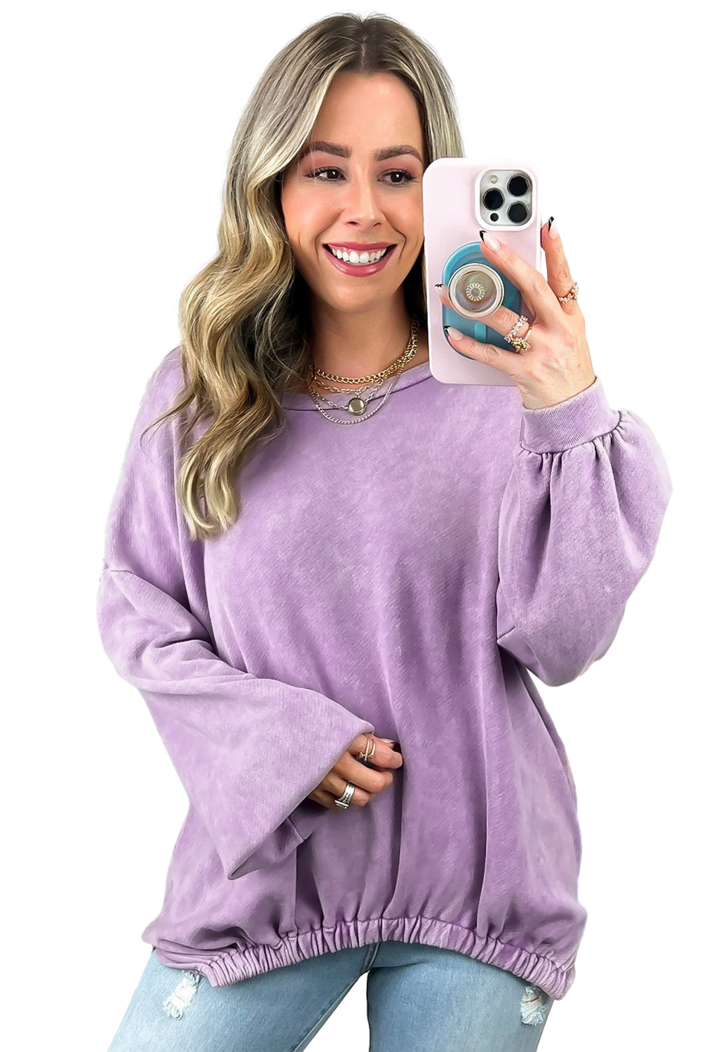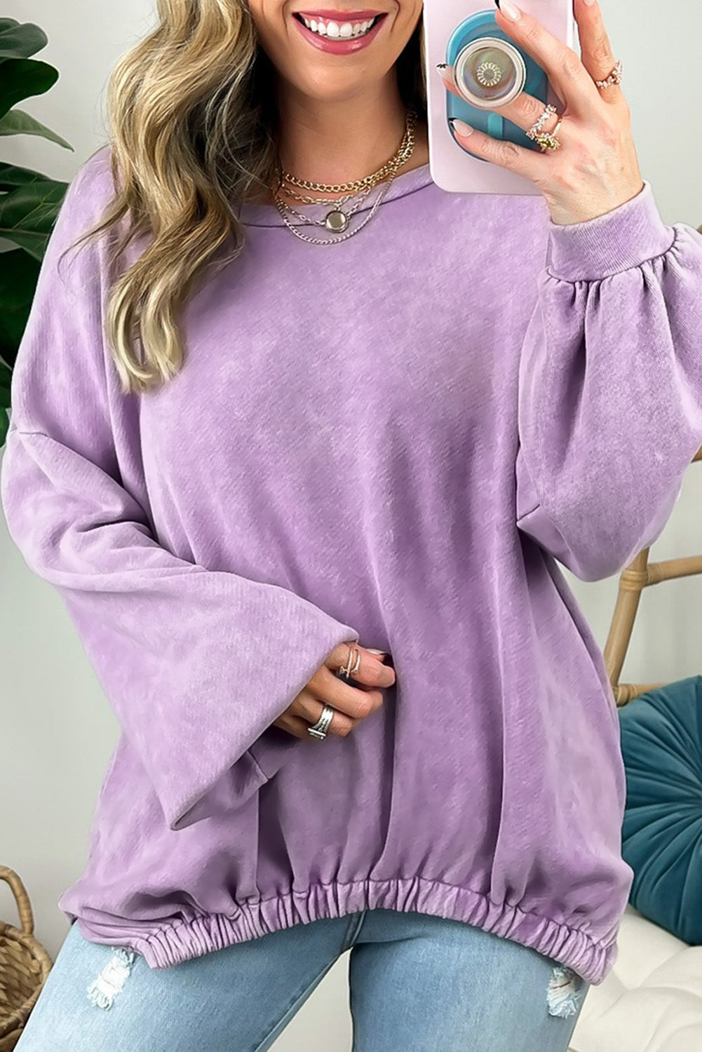 Wisteria Mineral Wash Drop Shoulder Casual Sweatshirt