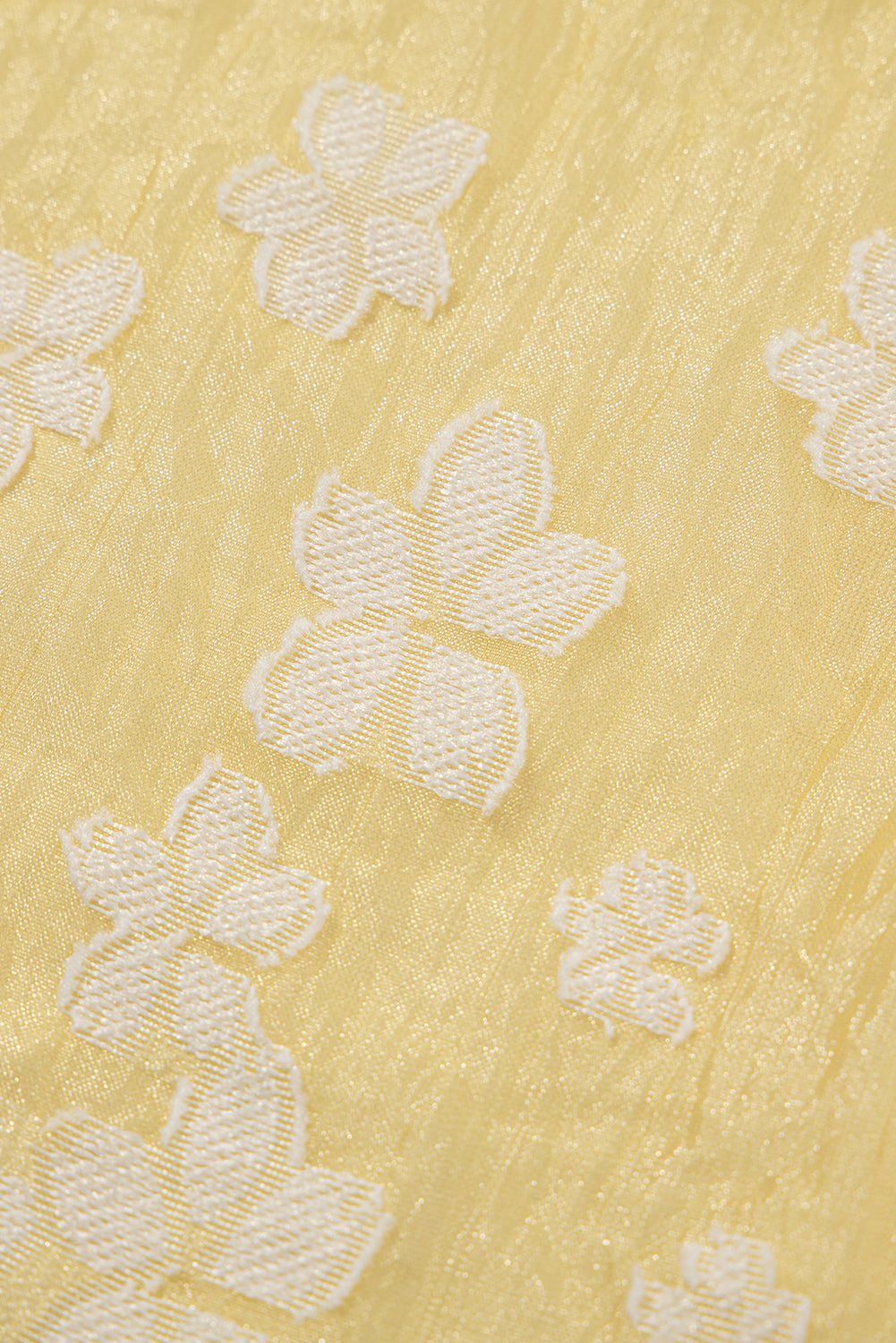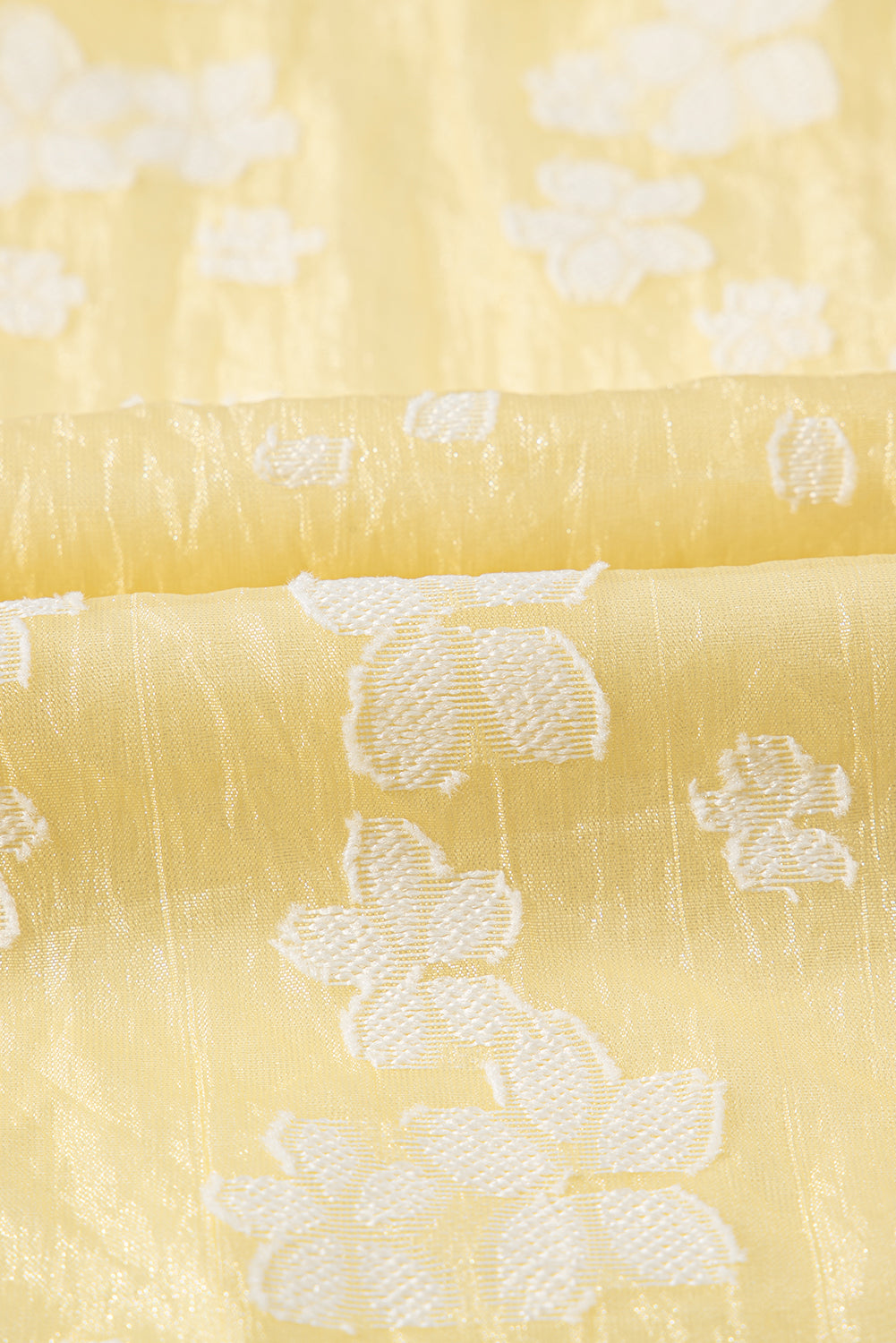 Yellow Boho Flower Jacquard Puff Sleeve Square Neck Mini Dress
