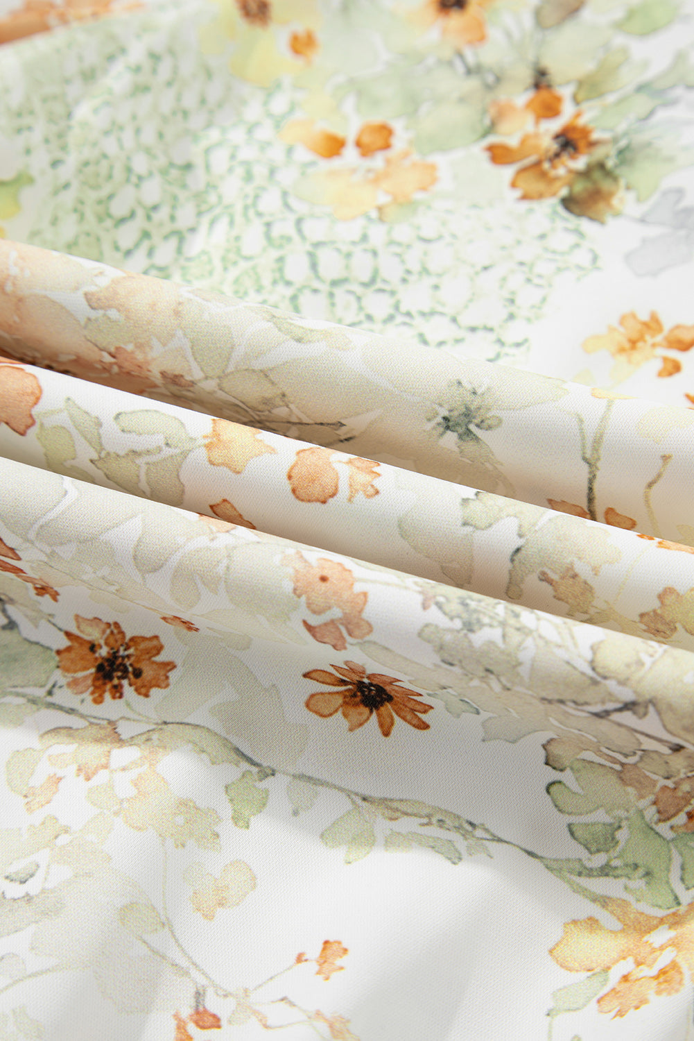 Yellow Floral Print Half Zip Hooded Long Sleeve Top